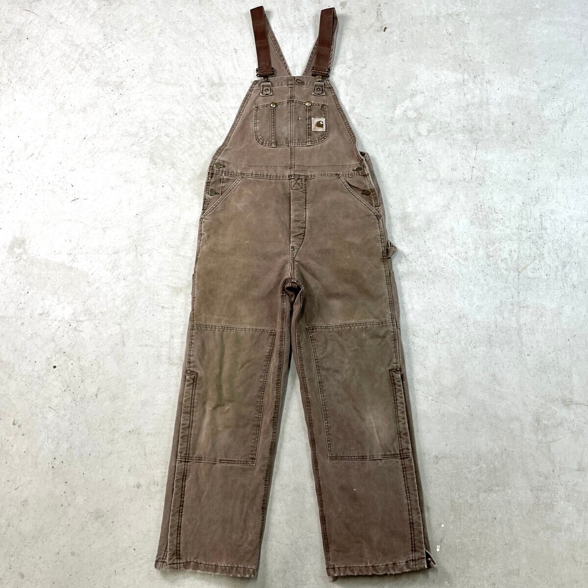 90年代- Carhartt カーハート ダック地 ダブルニー オーバーオール メンズW36相当 古着 90s VINTAGE ヴィンテージ キルティングライナー ボタンフライ ブラン【オーバーオール】/ブラウン