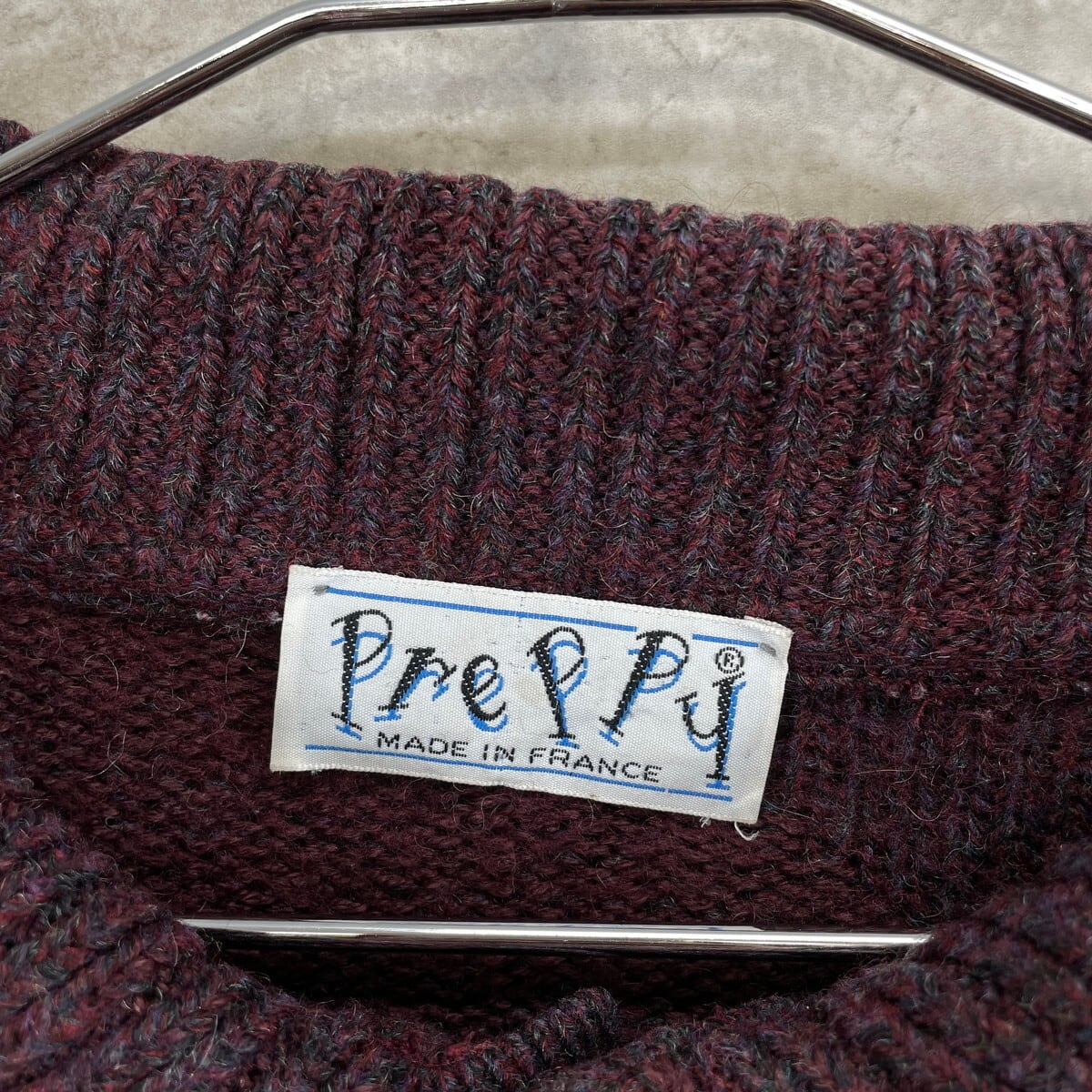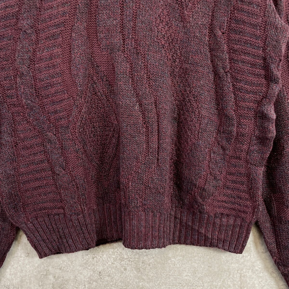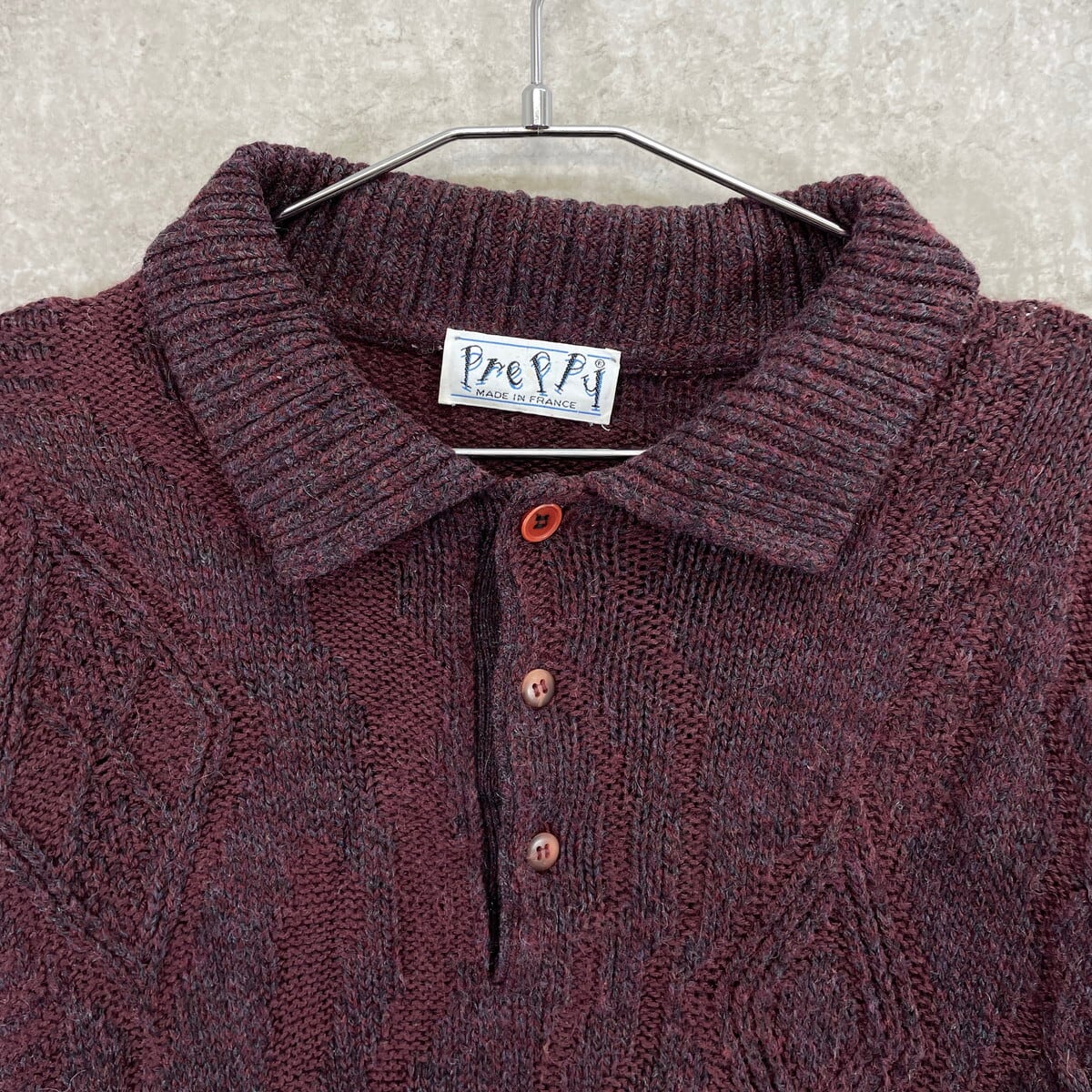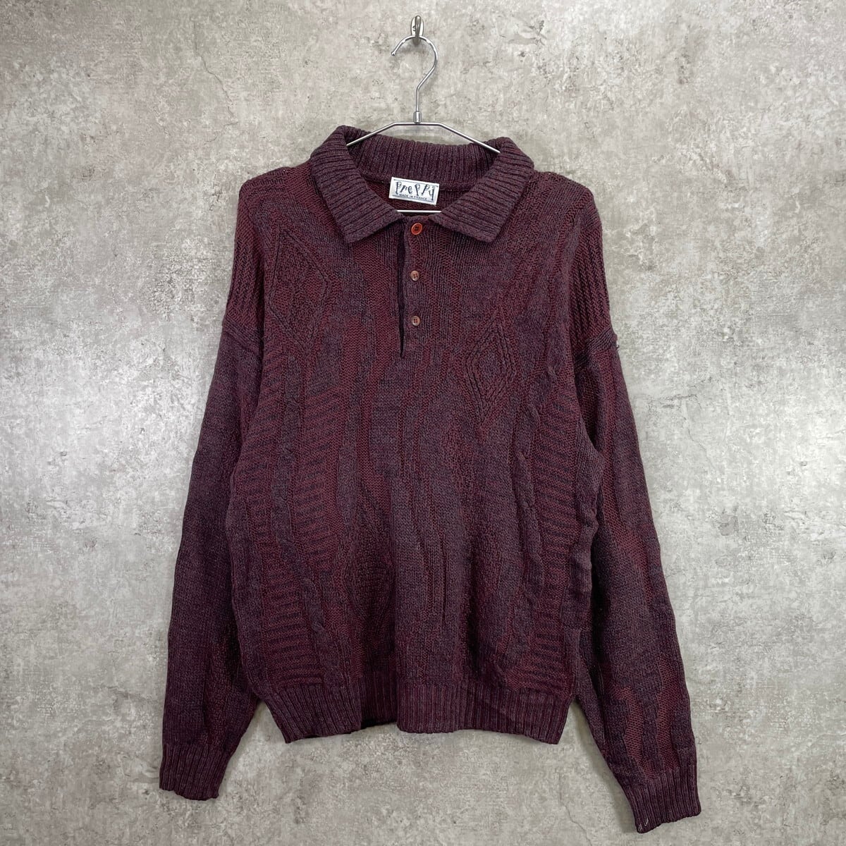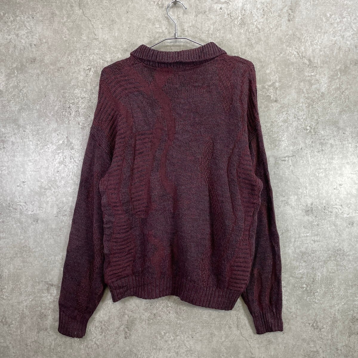 90年代 フランス製 Preppy 3D デザインニット アクリルニットポロシャツ メンズL相当 古着 90s ヴィンテージ VINTAGE ユーロ バーガンディー【ニットセーター】/ワインレッド