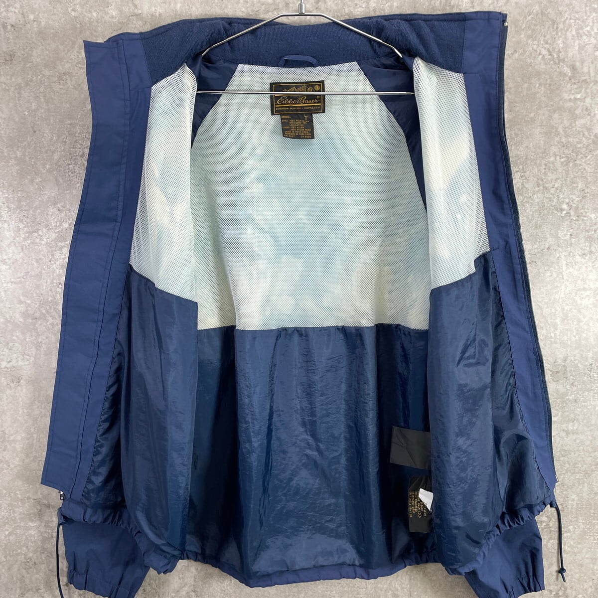80年代 Eddie Bauer エディーバウアー GORE-TEX マウンテンパーカー メンズL 古着 80s VINTAGE ヴィンテージ 黒タグ ゴアテックス フード収納型 裾ドローコード付き メッシュライナー 紺色【ナイロンジャケット】/ネイビー