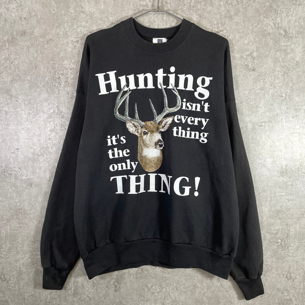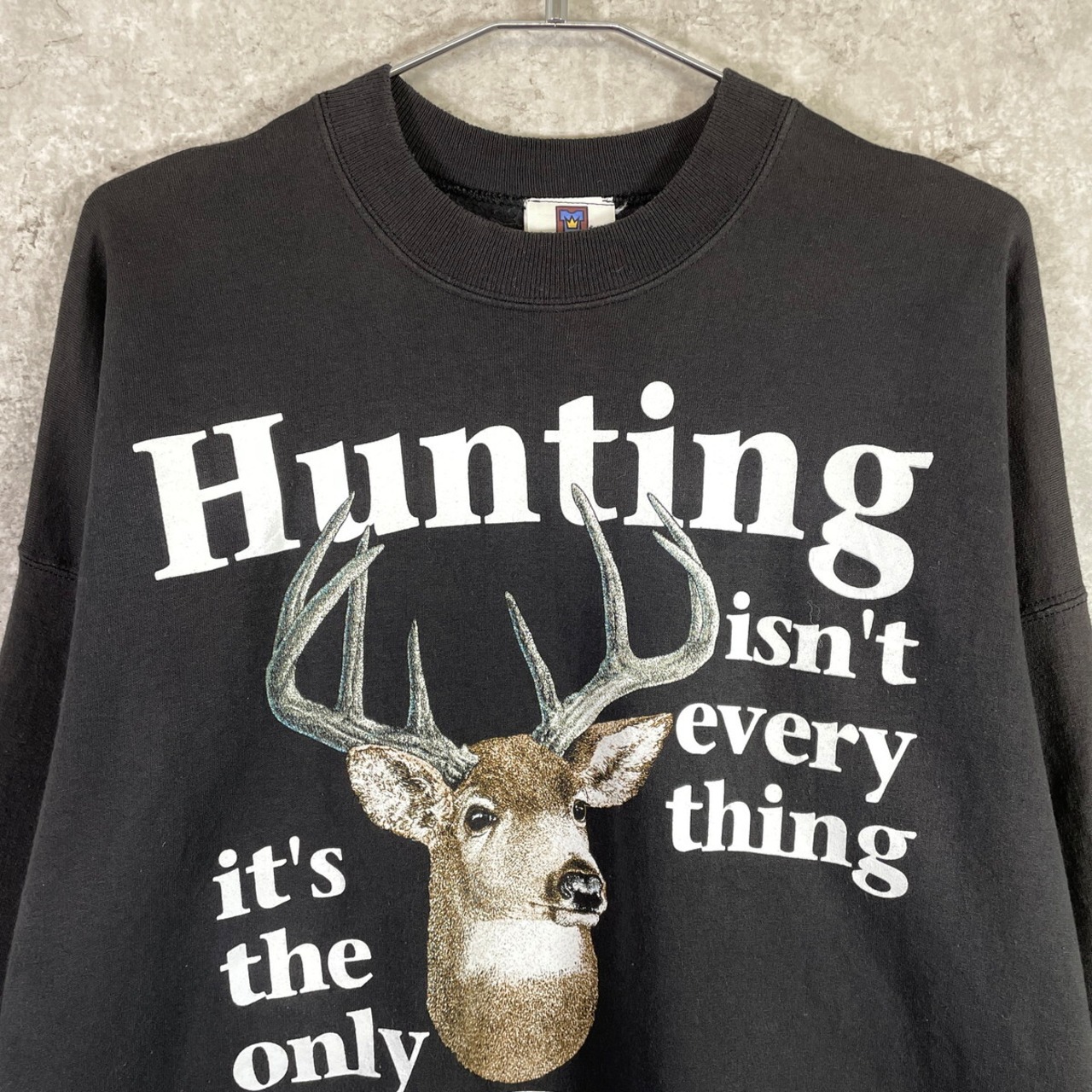 00年代 アニマルプリント スウェットシャツ メンズXL 古着 00s ヴィンテージ VINTAGE アメカジ トレーナー メッセージ シカ 黒【スウェット】/ブラック