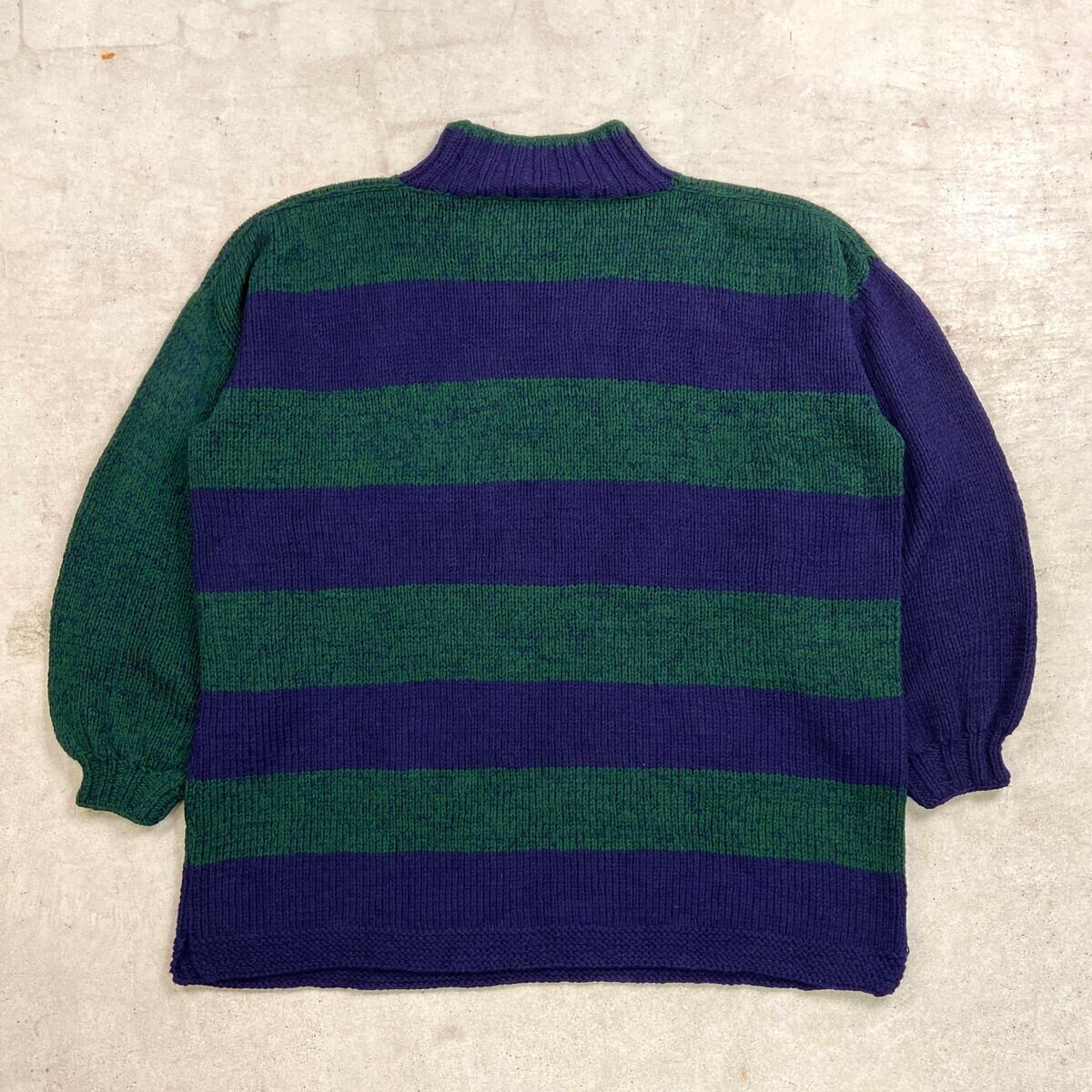 ■ビッグサイズ UNKNOWN モックネック ボーダー ニットセーター メンズ4XL相当 古着 スーパービッグサイズ 大きいサイズ ネイビー グリーン【ニットセーター】/マルチカラー