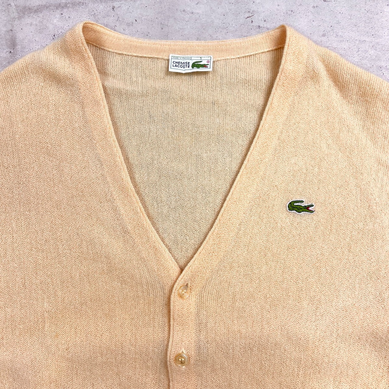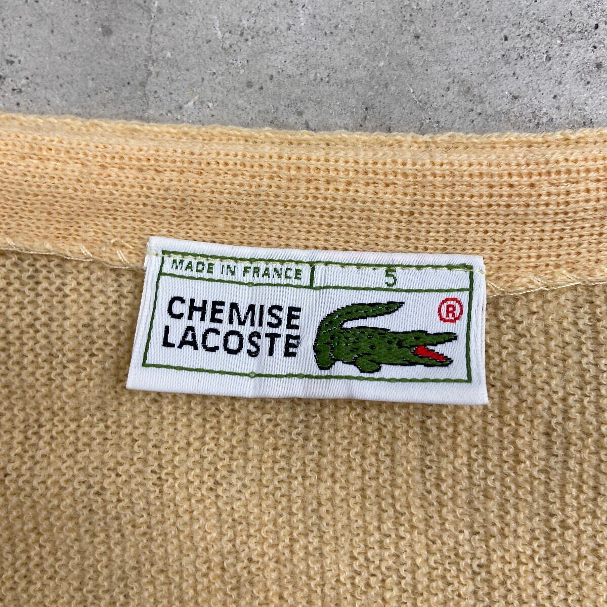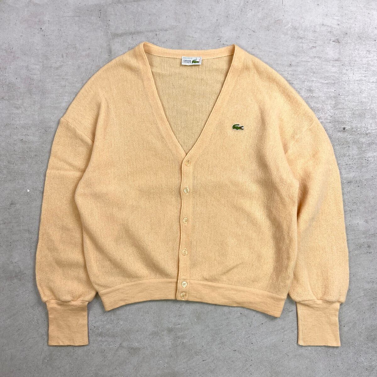 80年代 フランス製 LACOSTE ラコステ ウールニットカーディガン メンズL相当 古着 80s ヴィンテージ VINTAGE ライトベージュ【ニットセーター】/ベージュ