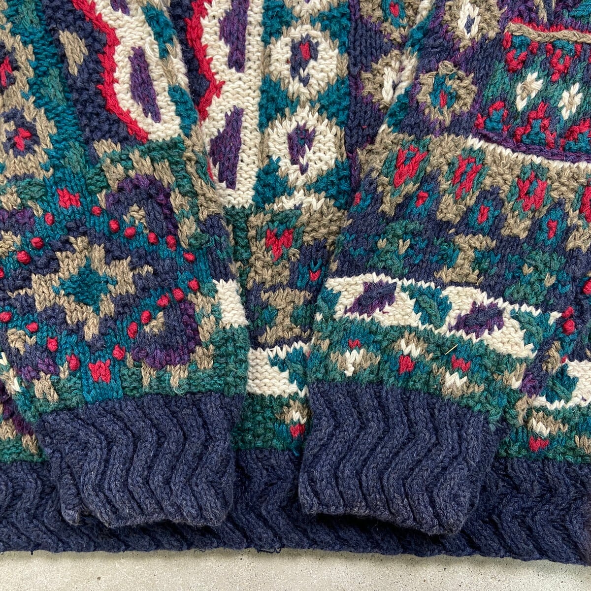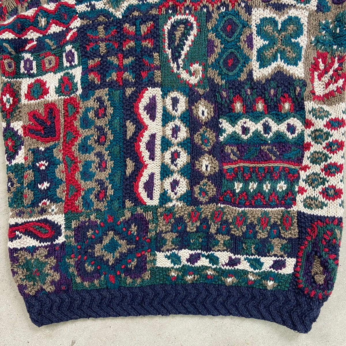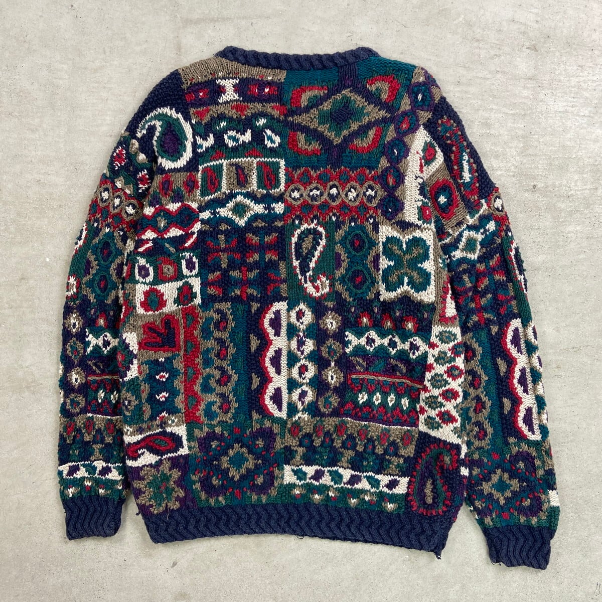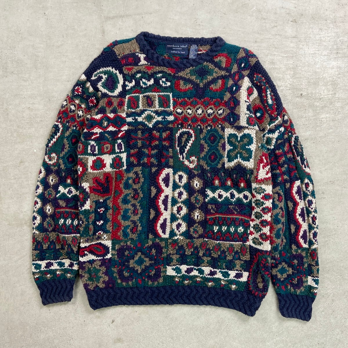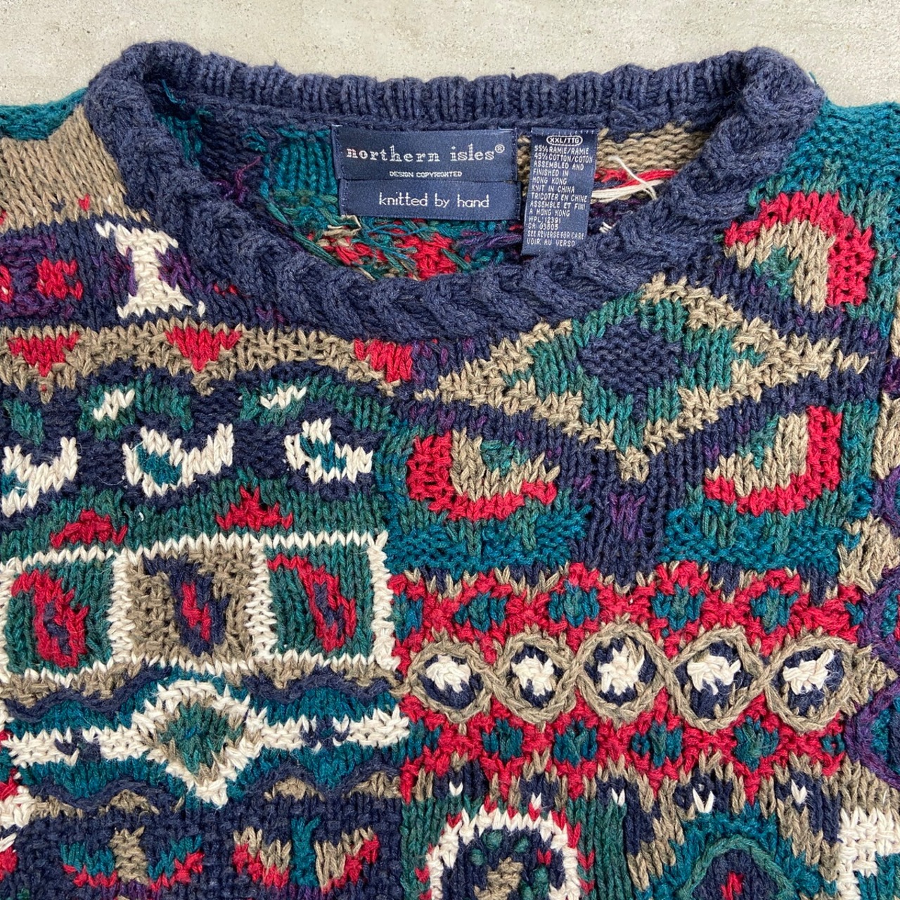 90年代 northern isles ハンドニット ネイティブ柄 ラミー混 コットンニットセーター メンズ2XL 古着 デザインニット 総柄 ビッグサイズ 大きいサイズ【ニットセーター】/マルチカラー