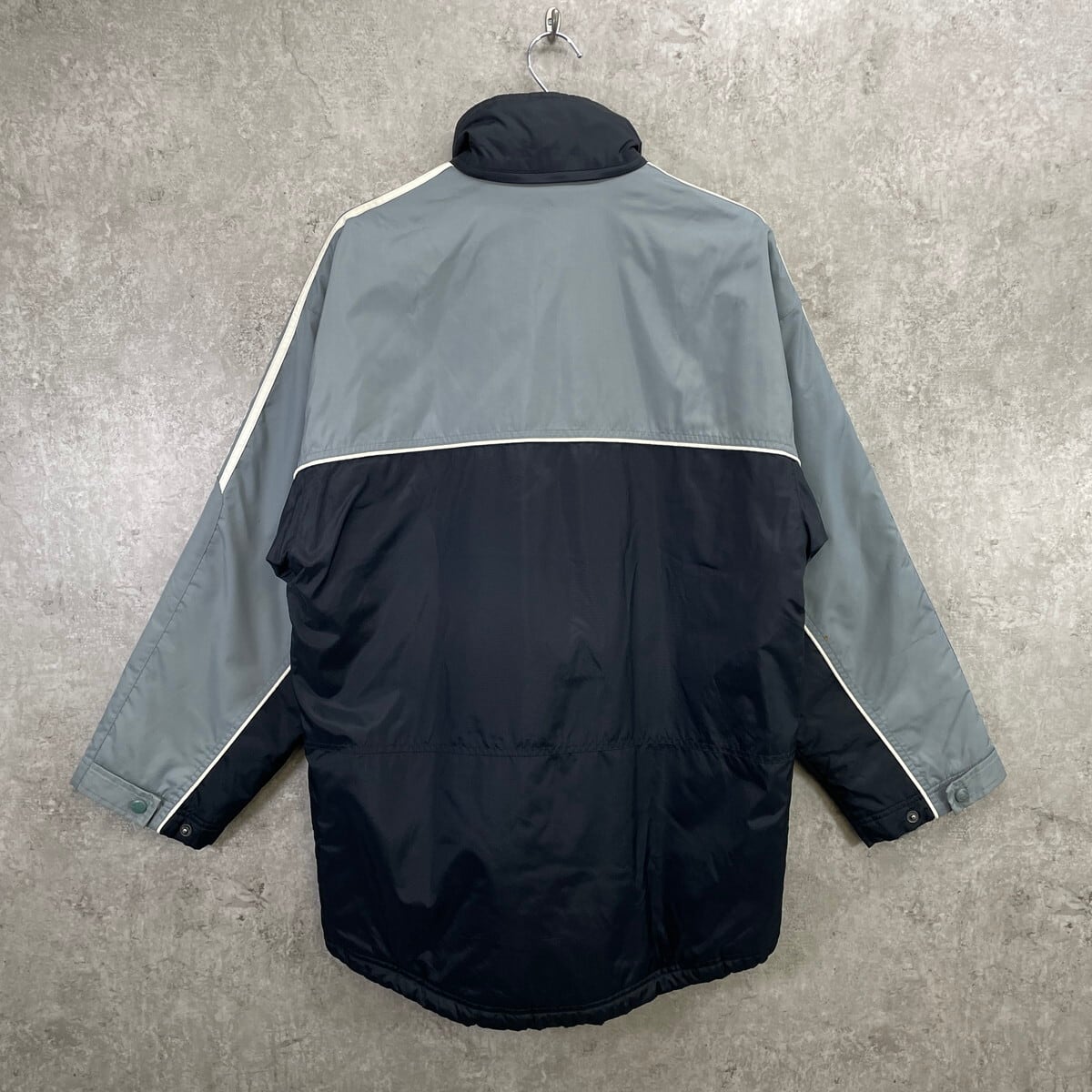 00年代 adidas アディダス ナイロンジャケット 中綿入り メンズL相当 古着 00s VINTAGE ヴィンテージ Y2K フード収納式 サイドライン グレー ブラック【ナイロンジャケット】/マルチカラー