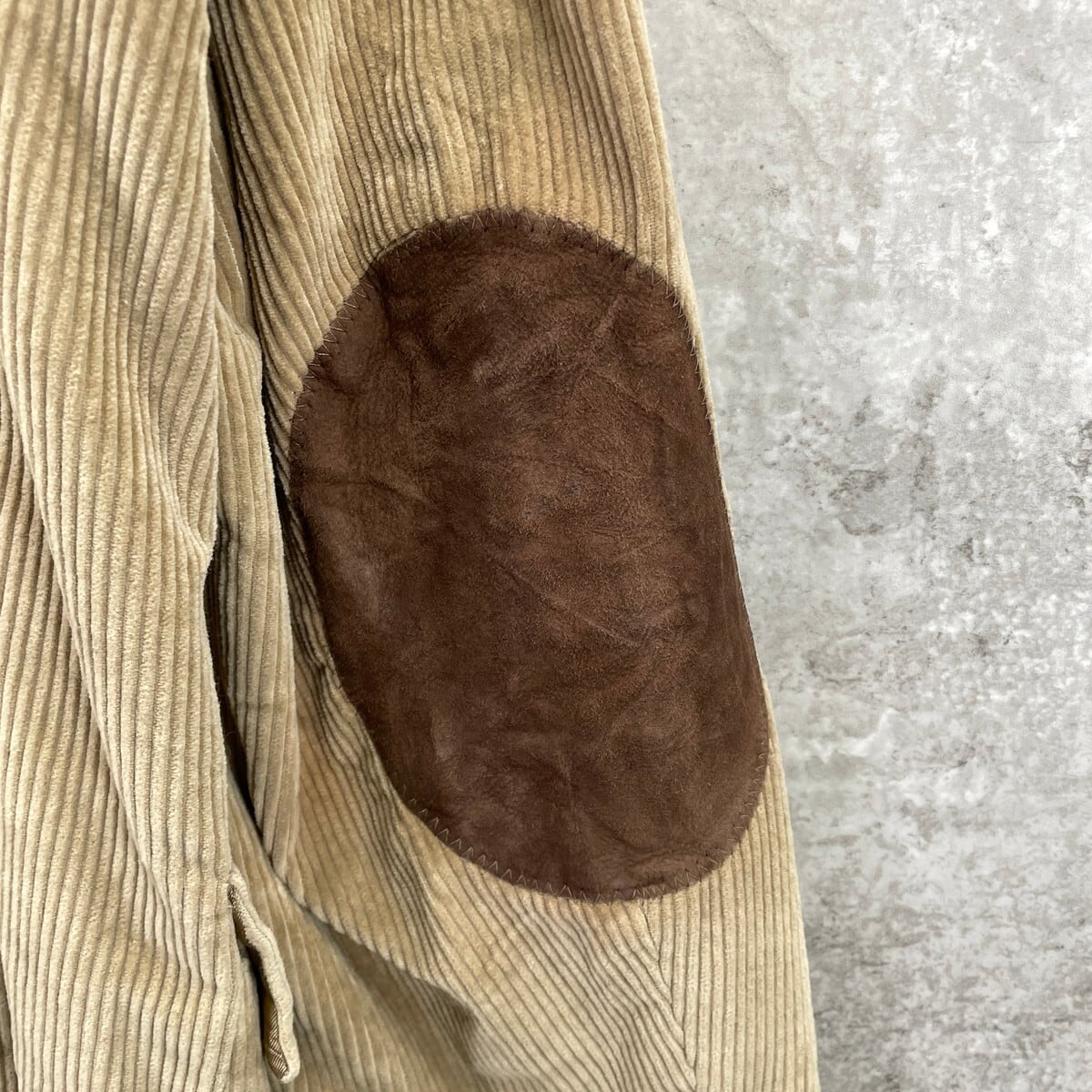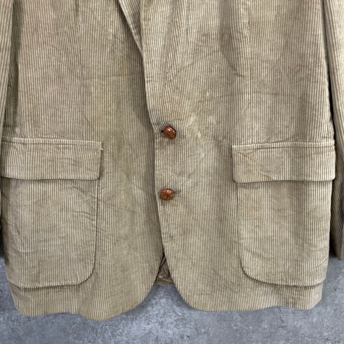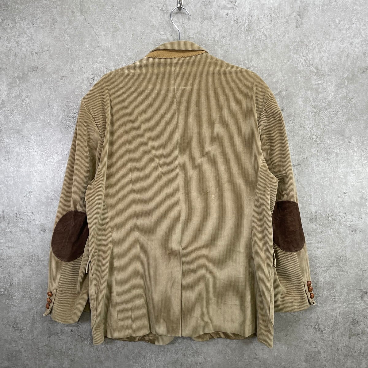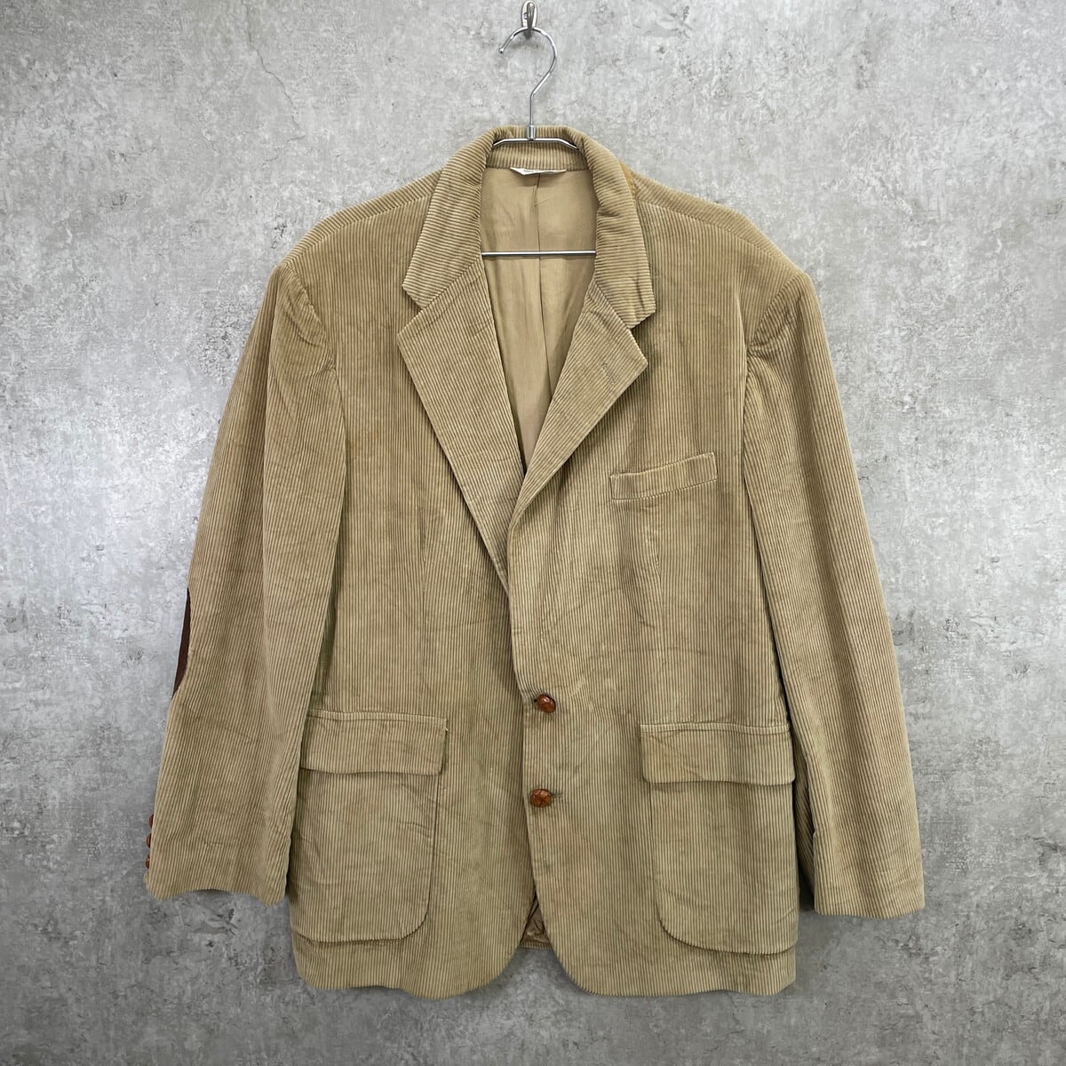 80年代 USA製 HUNT VALLEY コーデュロイ テーラードジャケット メンズXL相当 古着 80s VINTAGE ヴィンテージ チンストラップ レザーエルボーパッチ 茶色【ブルゾン・ジャケット】/ベージュ