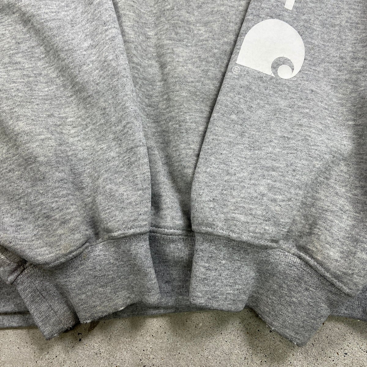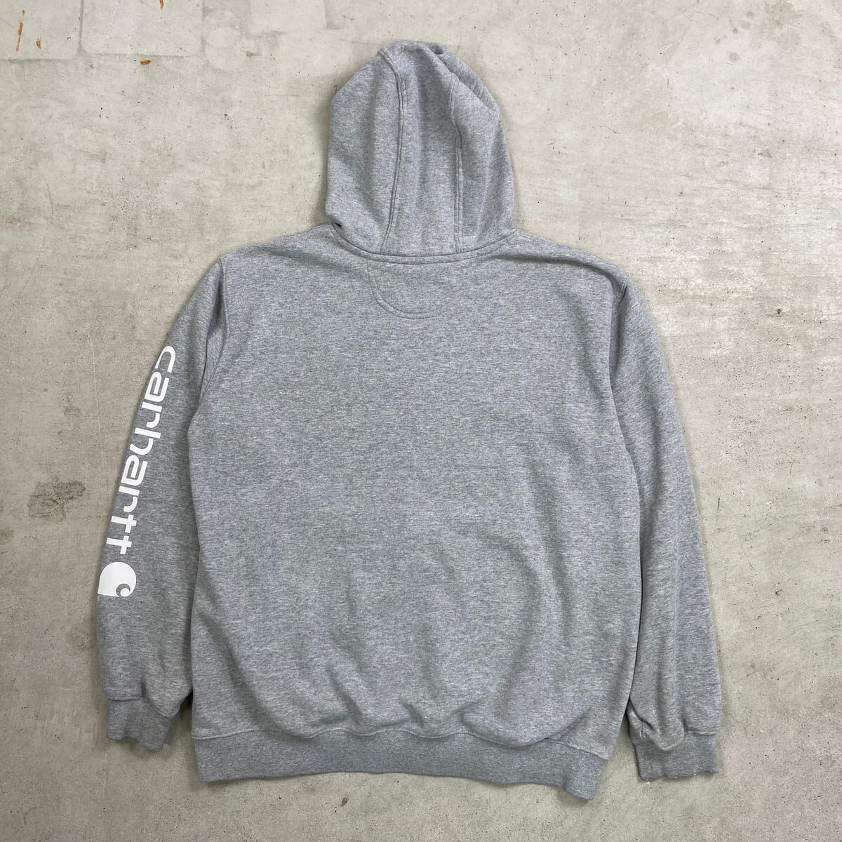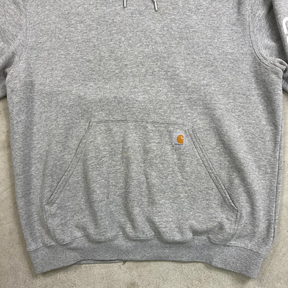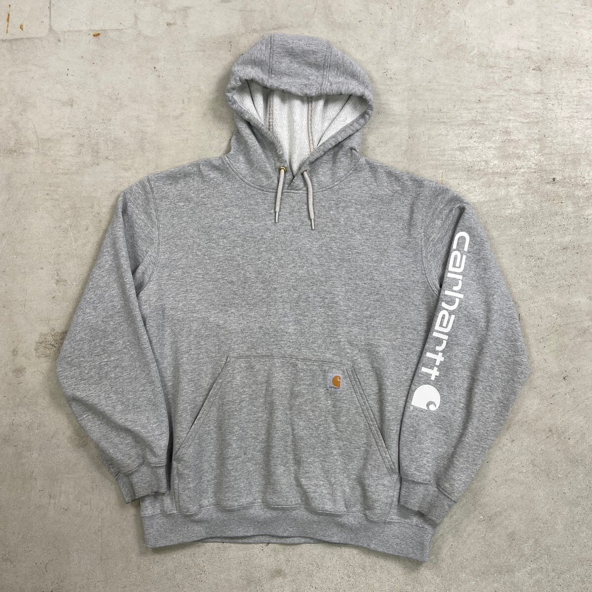 Carhartt カーハート ワンポイントロゴ スウェットパーカー メンズXL相当 古着 ORIGINAL FIT プルオーバーパーカー フーディー 袖ロゴプリント ライトグレー 灰色 【パーカー】グレー