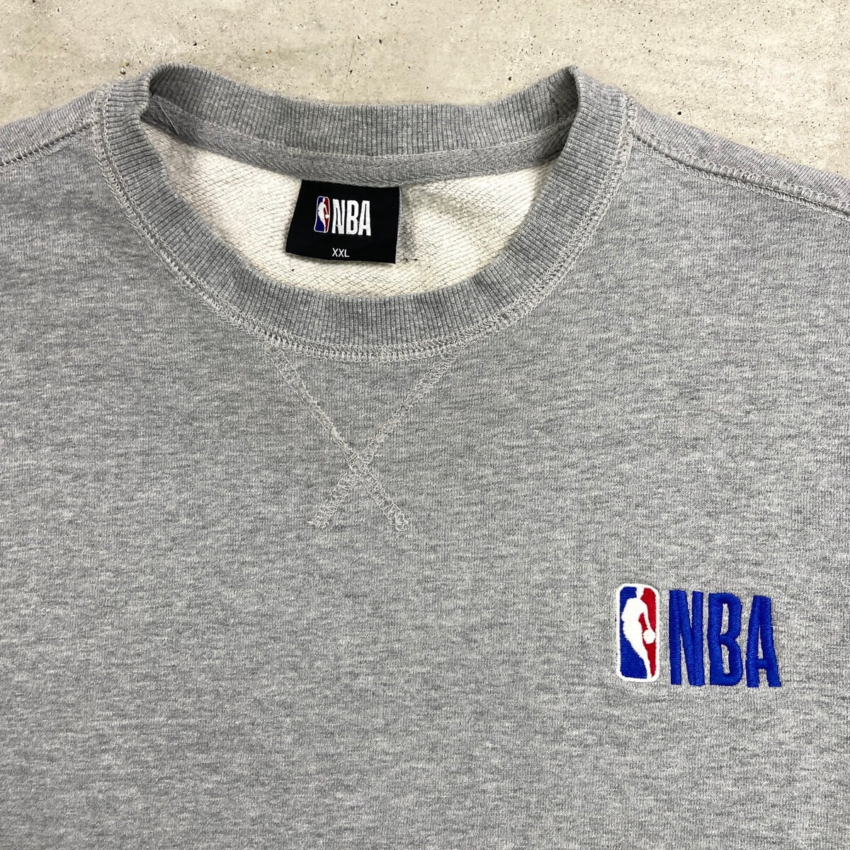 NBA ワンポイントロゴ刺繍 リバースタイプ スウェットシャツ メンズ2XL 古着 バスケットボール 前Vガゼット トレーナー ビッグサイズ 大きいサイズ 灰色【スウェット】/グレー