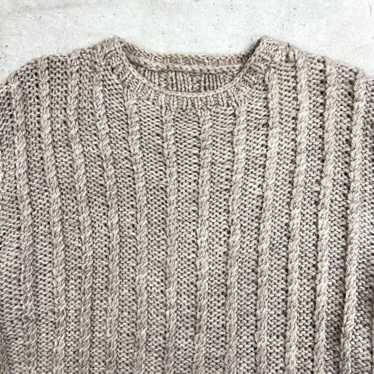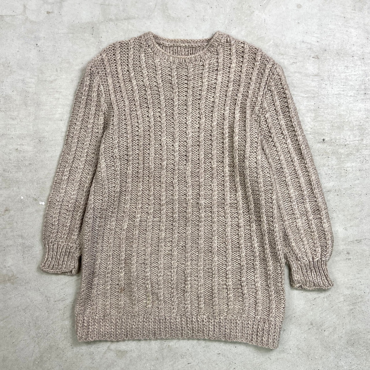 ■ローゲージ ニットセーター レディースXL相当 古着 3D ニットワンピース ライトグレー【ニットセーター】/グレー
