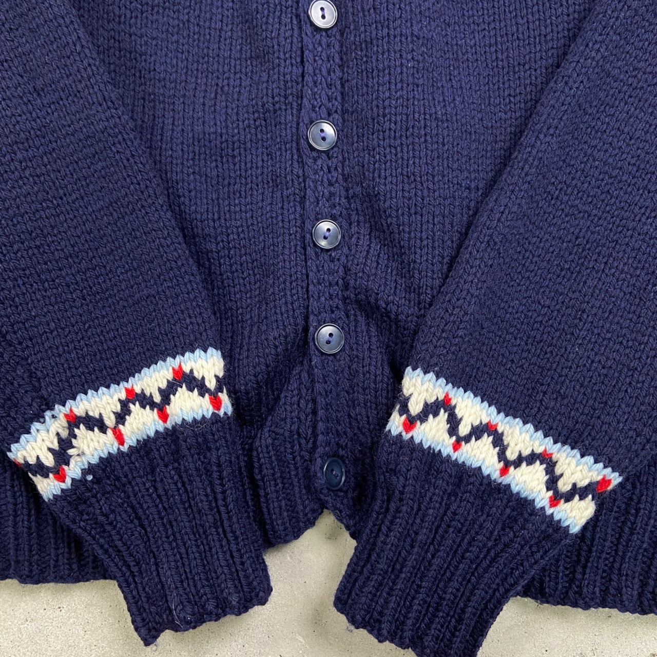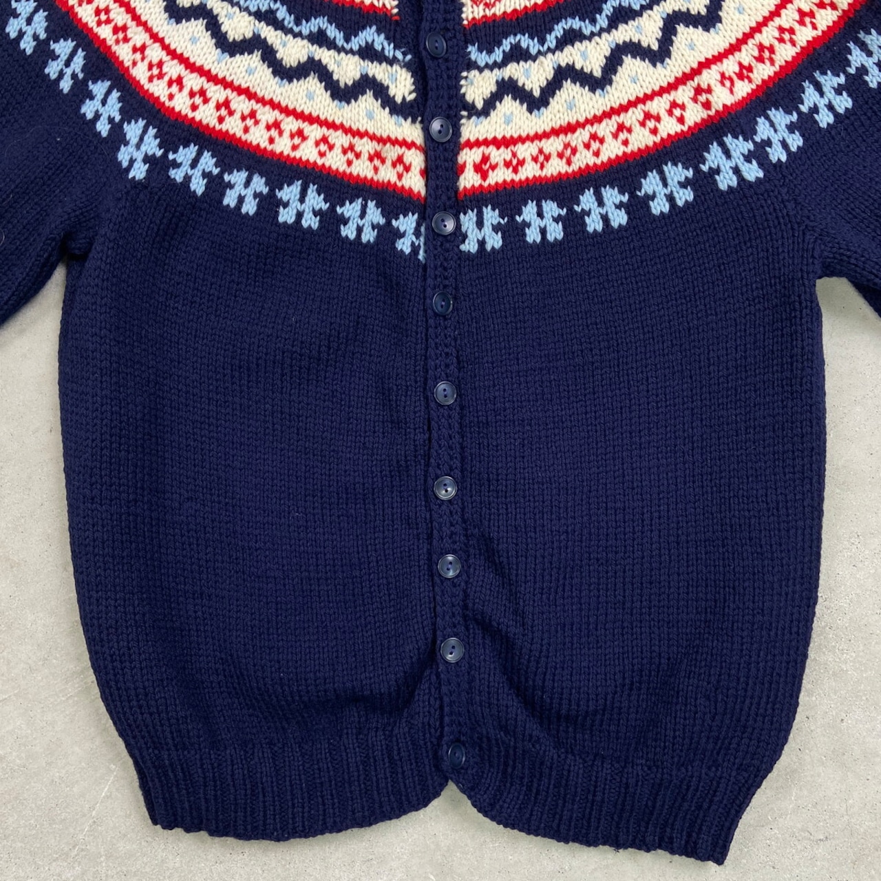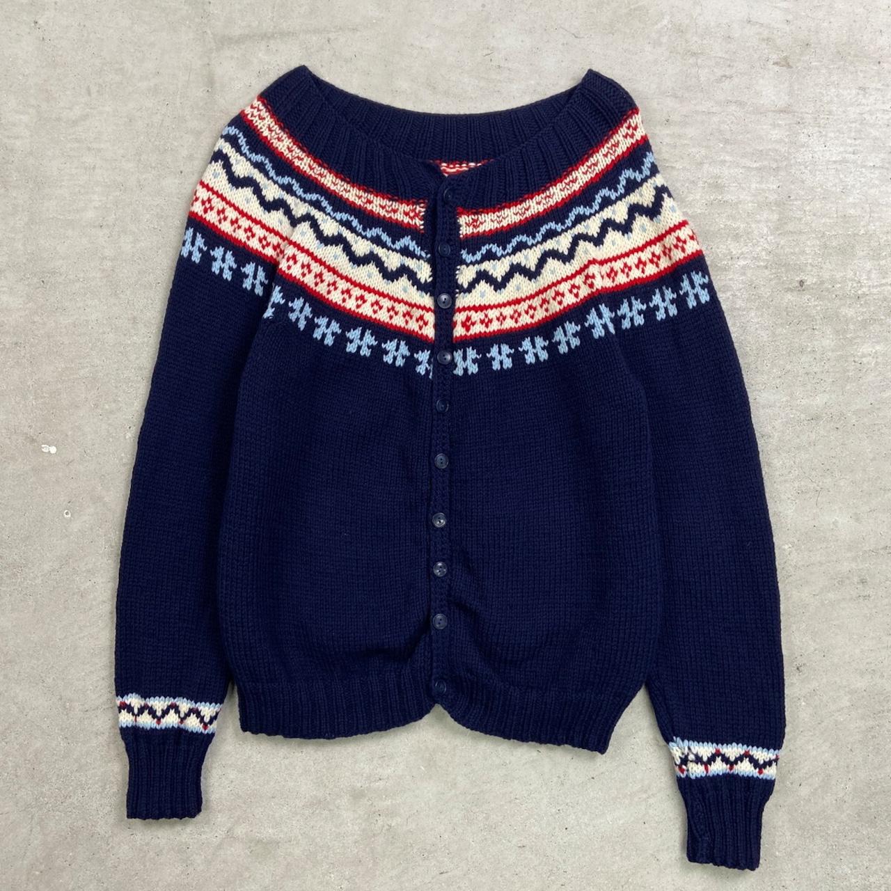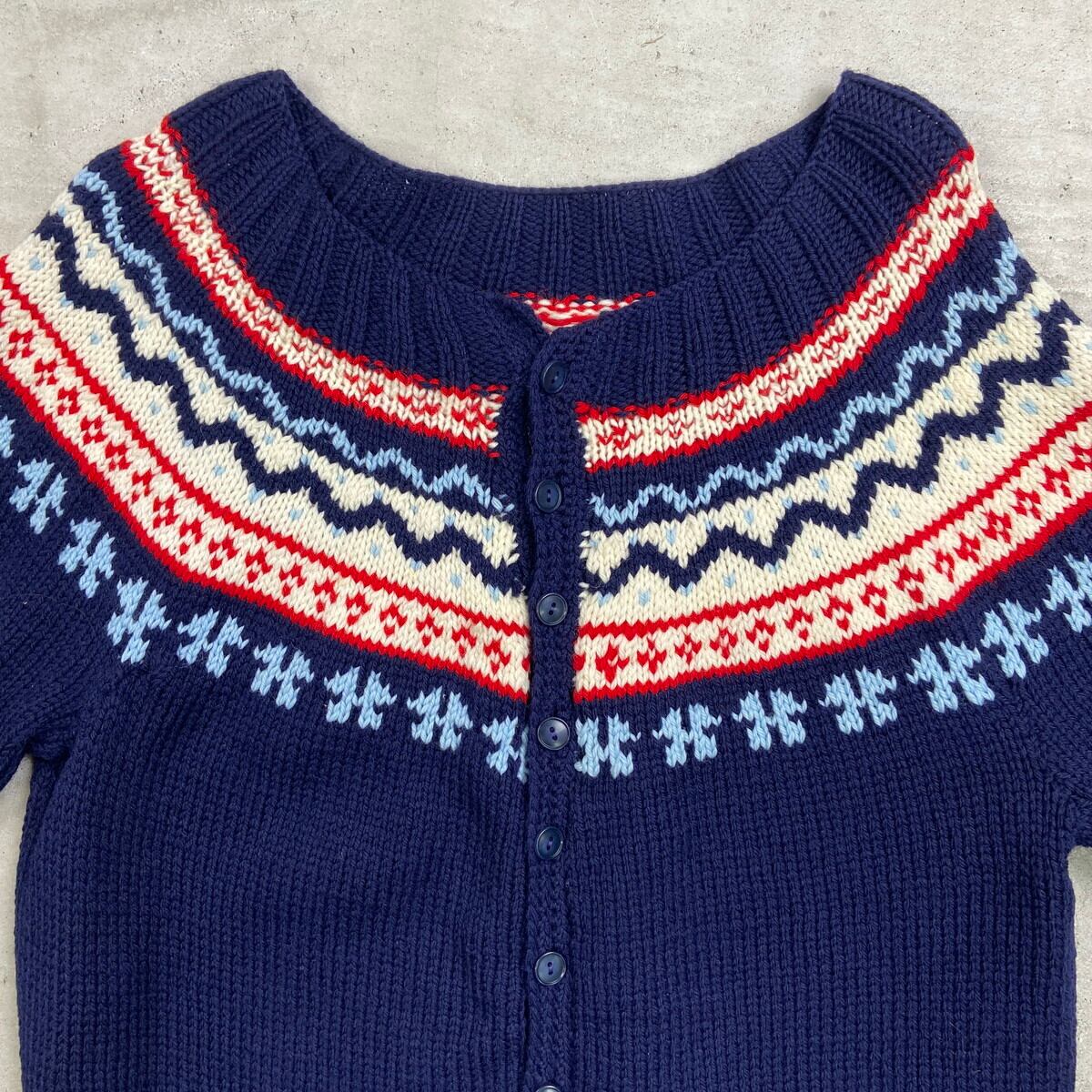 UNKNOWN フェアアイル柄 ニットカーディガン レディースS相当 古着 VINTAGE ヴィンテージ ネイビー レッド ホワイト【ニットセーター】/マルチカラー