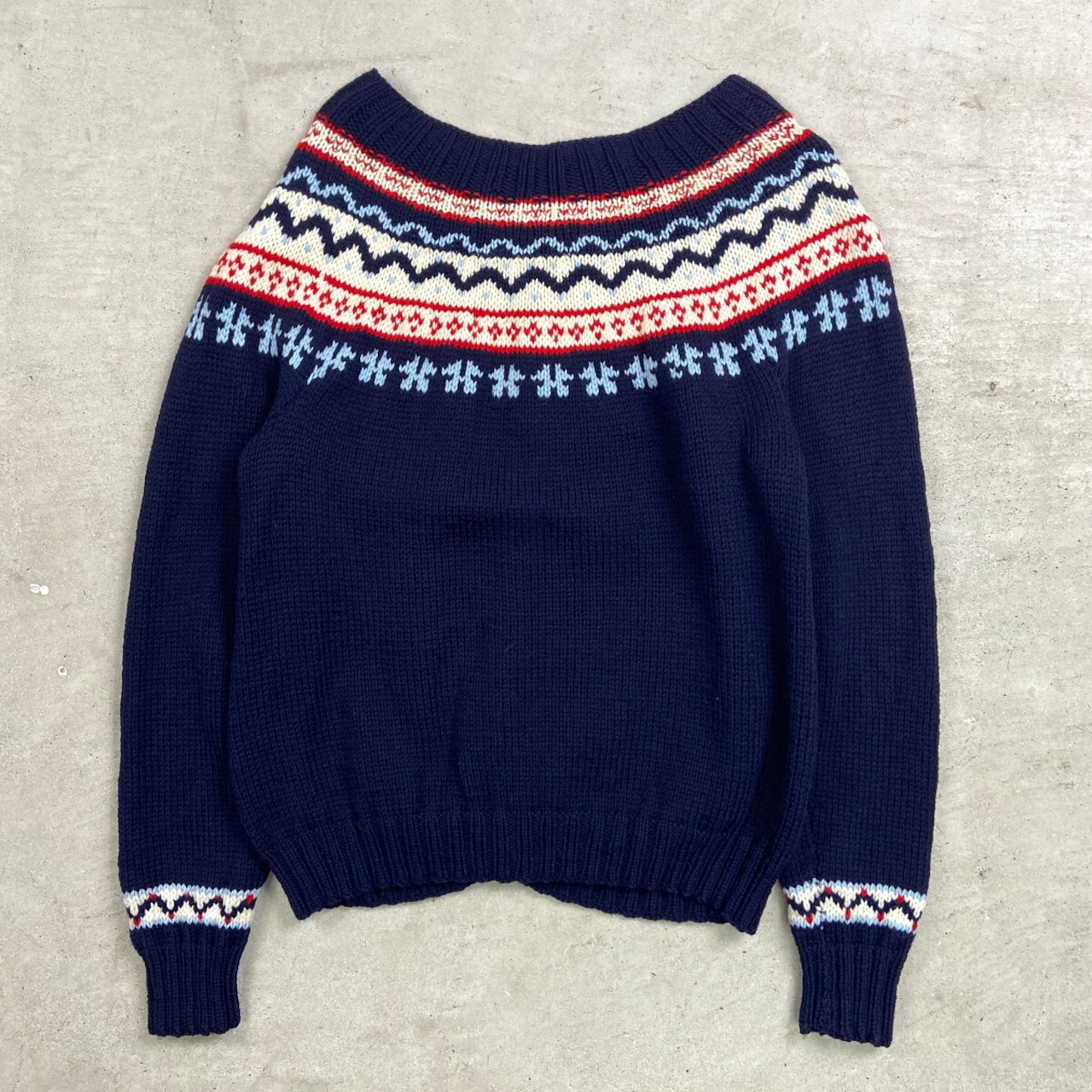 ■UNKNOWN フェアアイル柄 ニットカーディガン レディースS相当 古着 VINTAGE ヴィンテージ ネイビー レッド ホワイト【ニットセーター】/マルチカラー