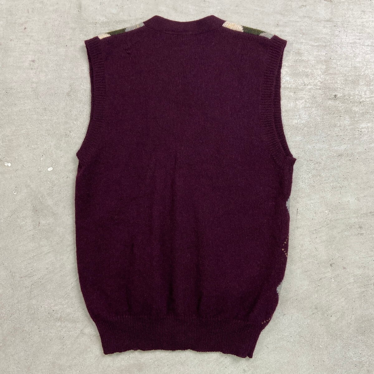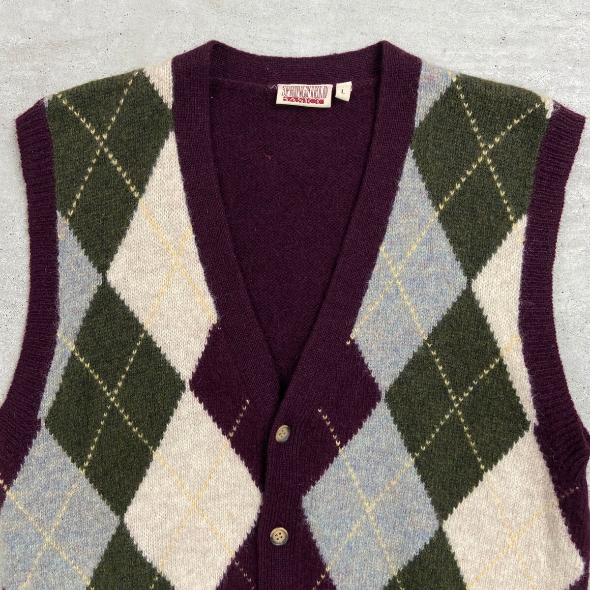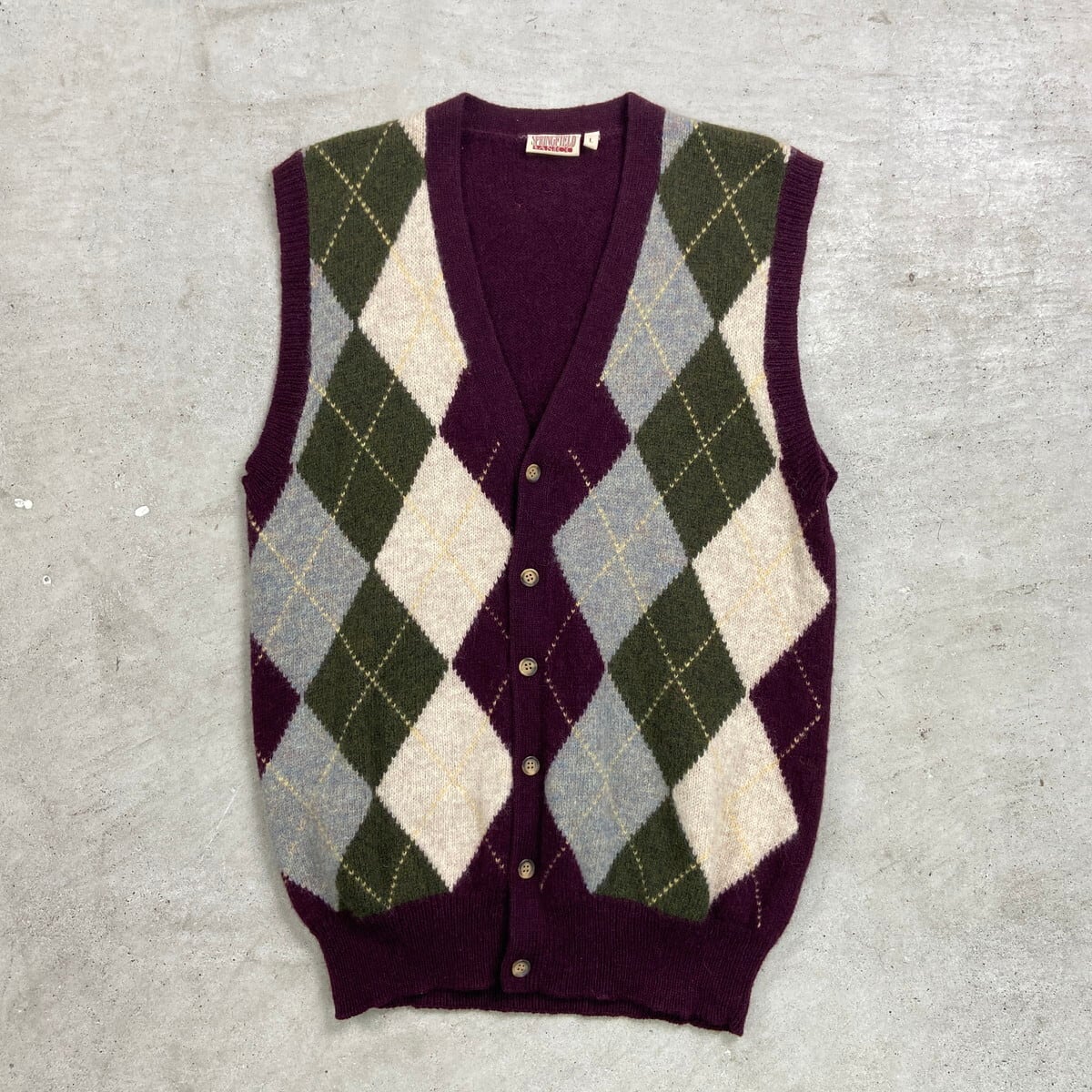 SPRINGFIELD BASIC アーガイルチェック ウールニットベスト メンズS~M相当 レディースM相当 古着 VINTAGE ヴィンテージ グリーン ライトブルー ベージュ【ニットセーター】/ワインレッド