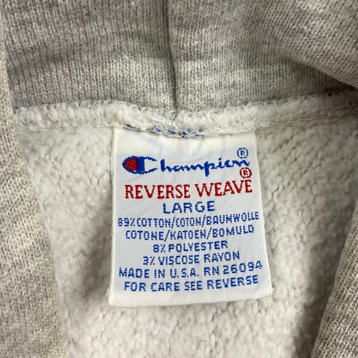 90年代 USA製 刺繍タグ Champion チャンピオン REVERSE WEAVE リバースウィーブ ワンポイントロゴ刺繍 スウェットパーカー メンズM~L相当 古着 90s VINTAGE ヴィンテージ アメカジ トレーナー ライトグレー【スウェット】/グレー