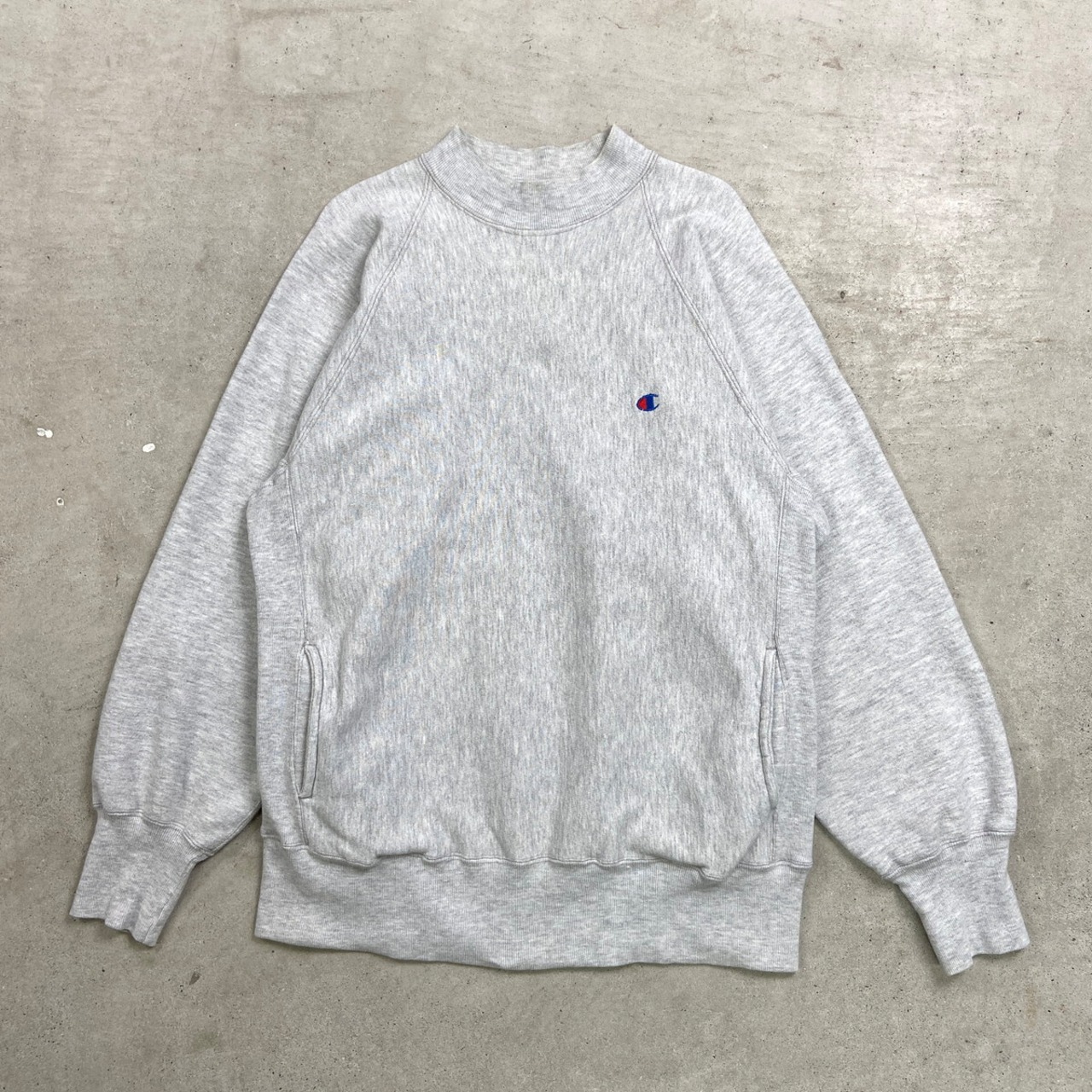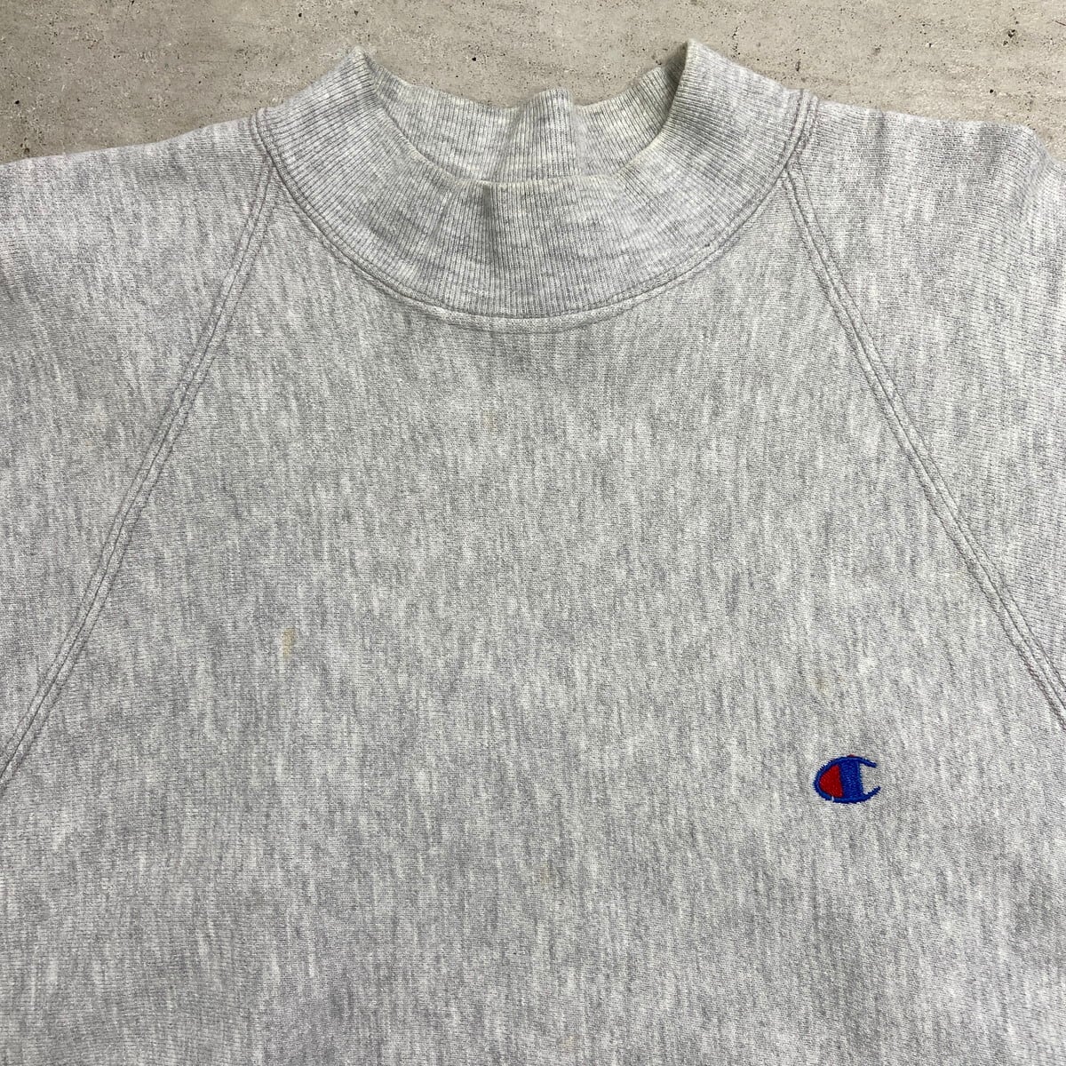 90年代 USA製 刺繍タグ Champion チャンピオン REVERSE WEAVE リバースウィーブ モックネック スウェットシャツ メンズXL 古着 90s VINTAGE ヴィンテージ ワンポイントロゴ刺繡 アメカジ トレーナー ライトグレー【スウェット】/グレー