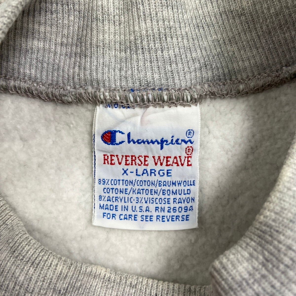 ■90年代 USA製 刺繍タグ Champion チャンピオン REVERSE WEAVE リバースウィーブ モックネック スウェットシャツ メンズXL 古着 90s VINTAGE ヴィンテージ ワンポイントロゴ刺繡 アメカジ トレーナー ライトグレー【スウェット】/グレー