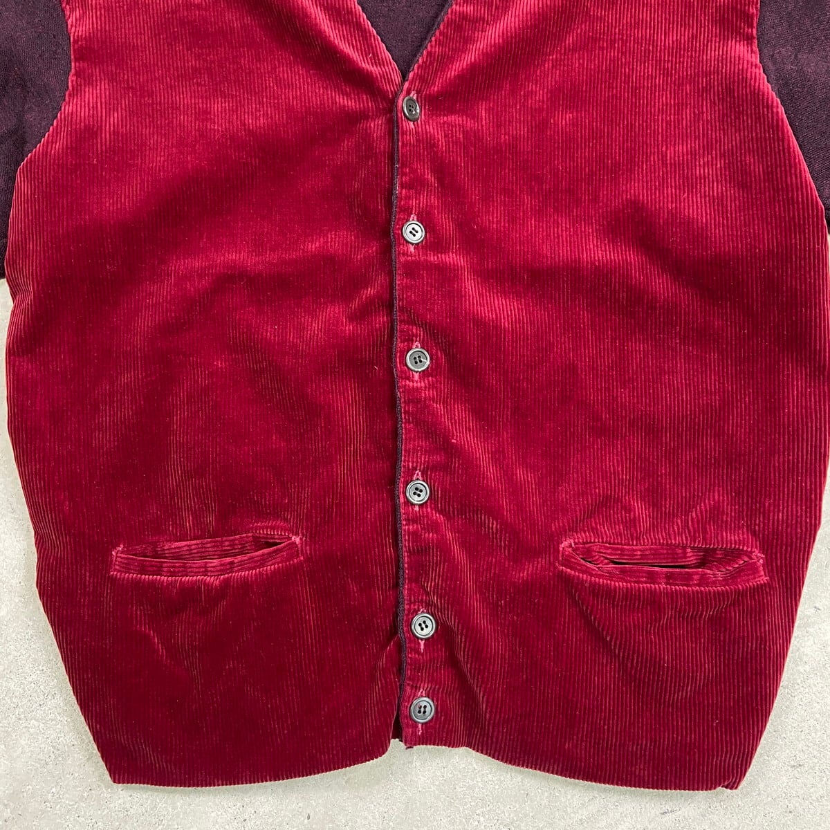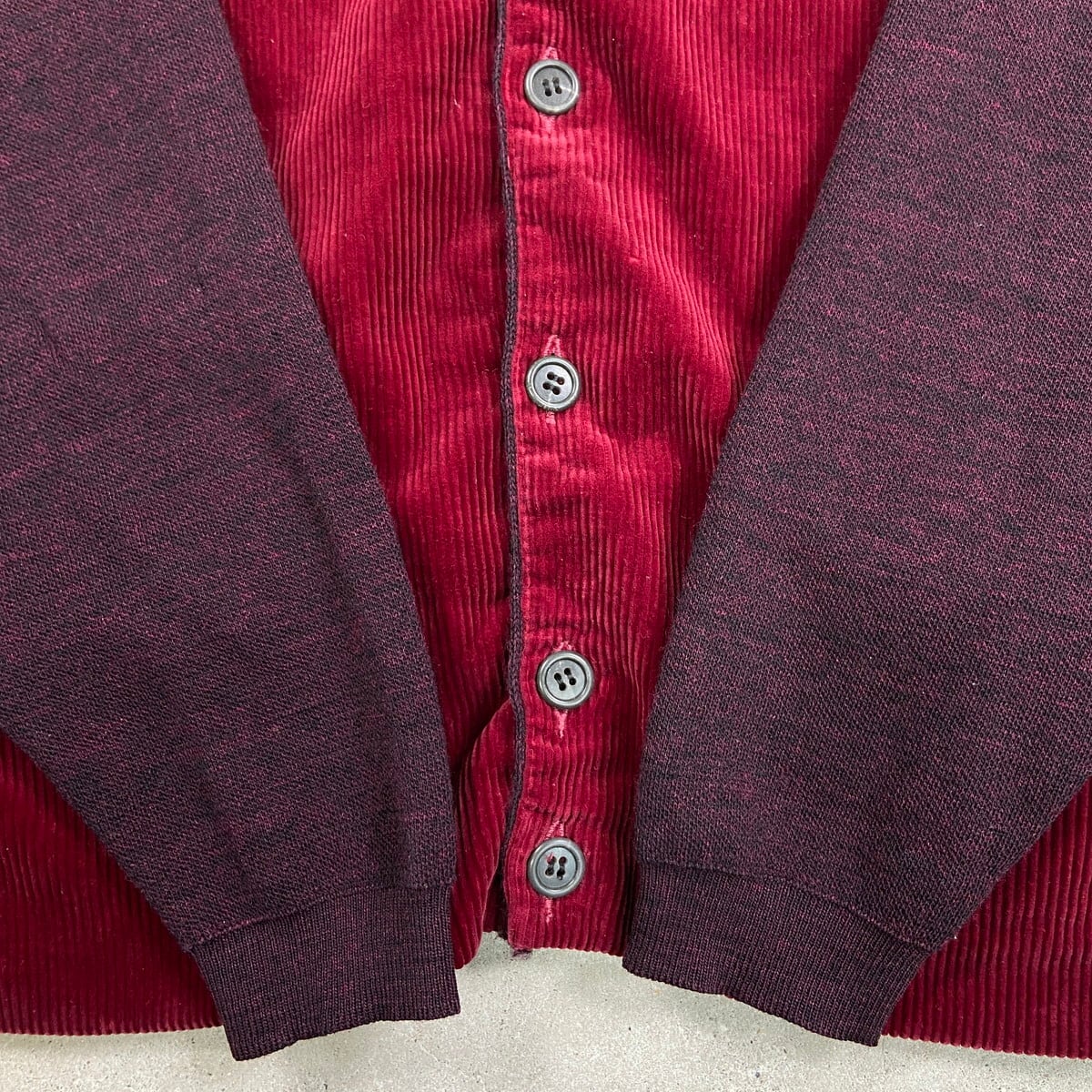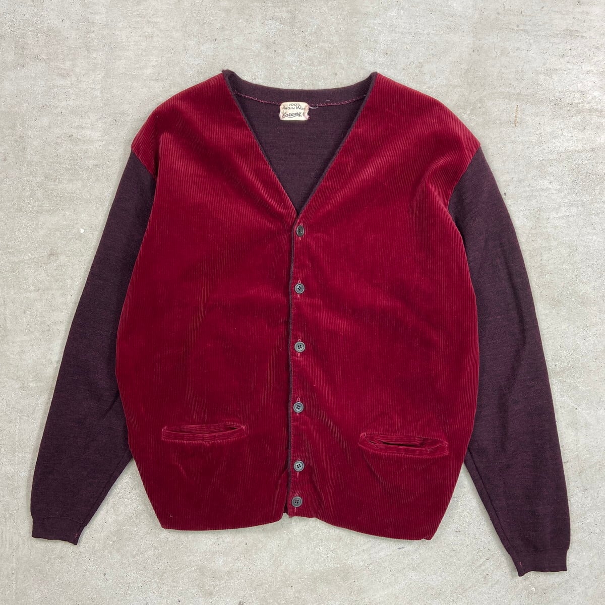 ■60年代 コーデュロイ×ウールニットカーディガン メンズM 古着 60s ヴィンテージ VINTAGE ボルドー バーガンディ【ニットセーター】/ワインレッド