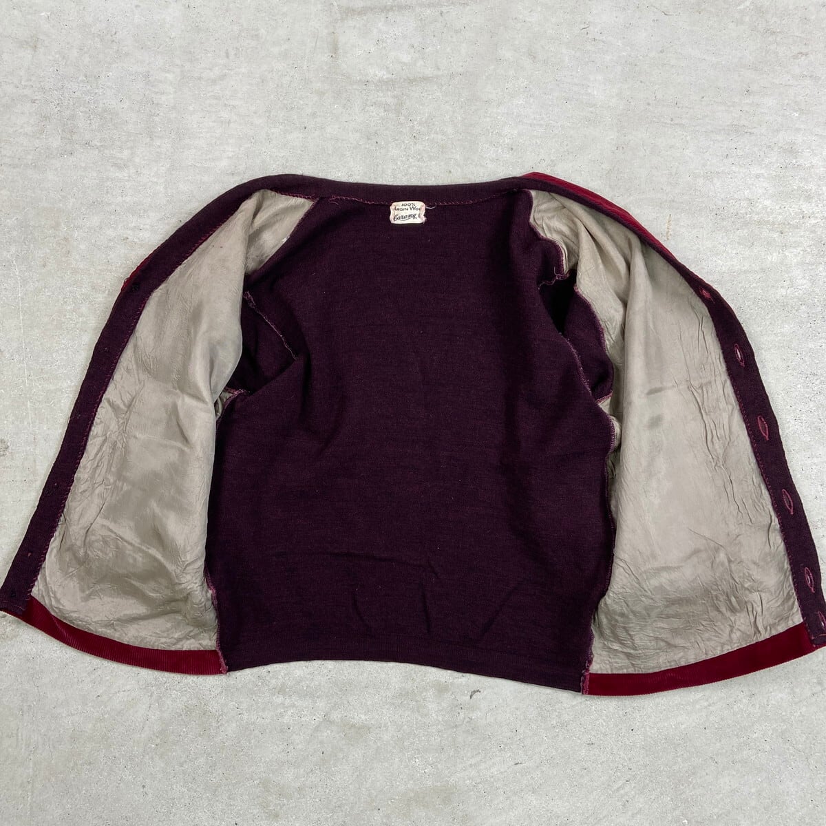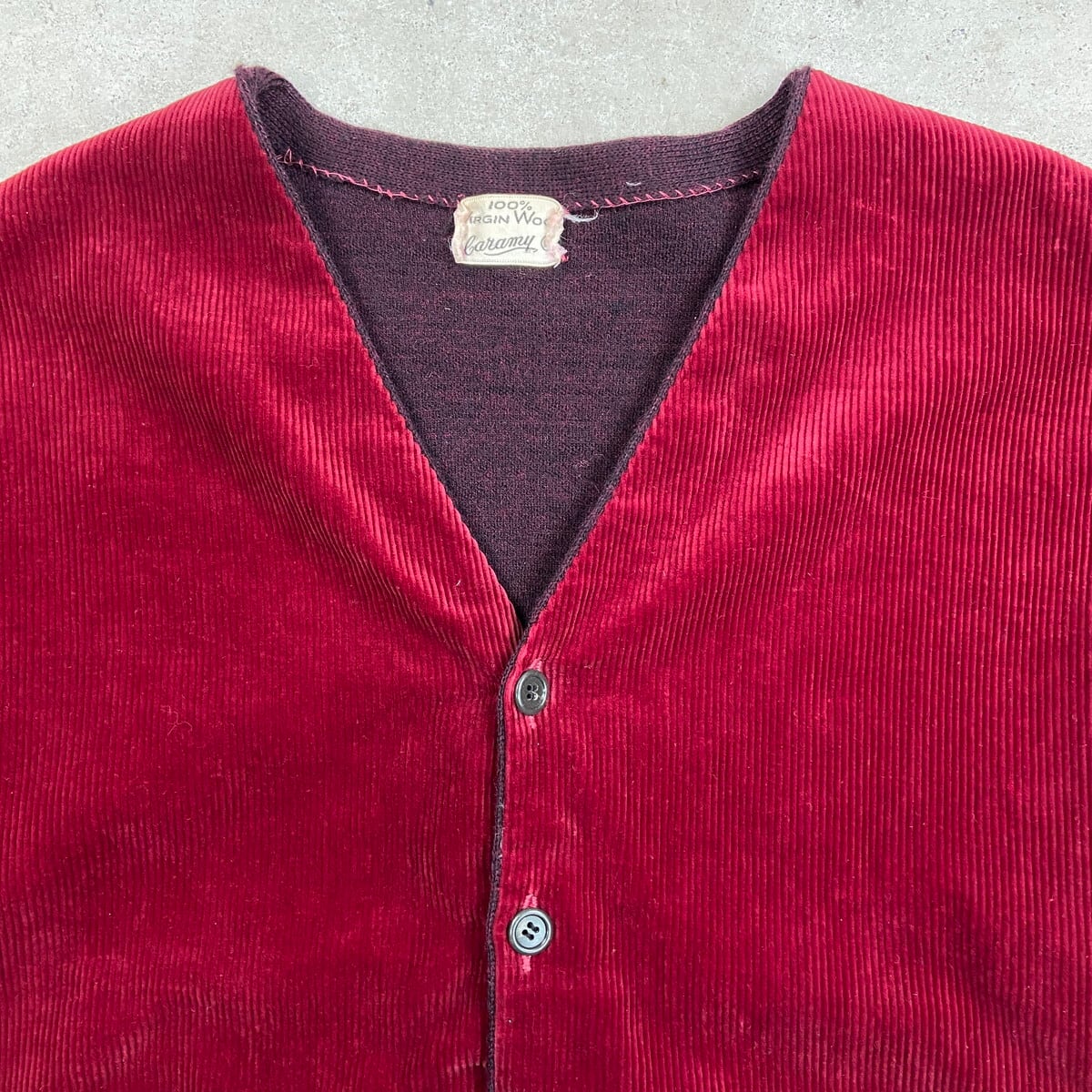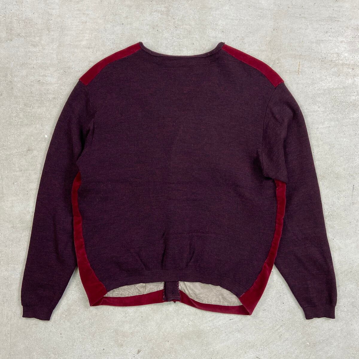 60年代 コーデュロイ×ウールニットカーディガン メンズM 古着 60s ヴィンテージ VINTAGE ボルドー バーガンディ【ニットセーター】/ワインレッド