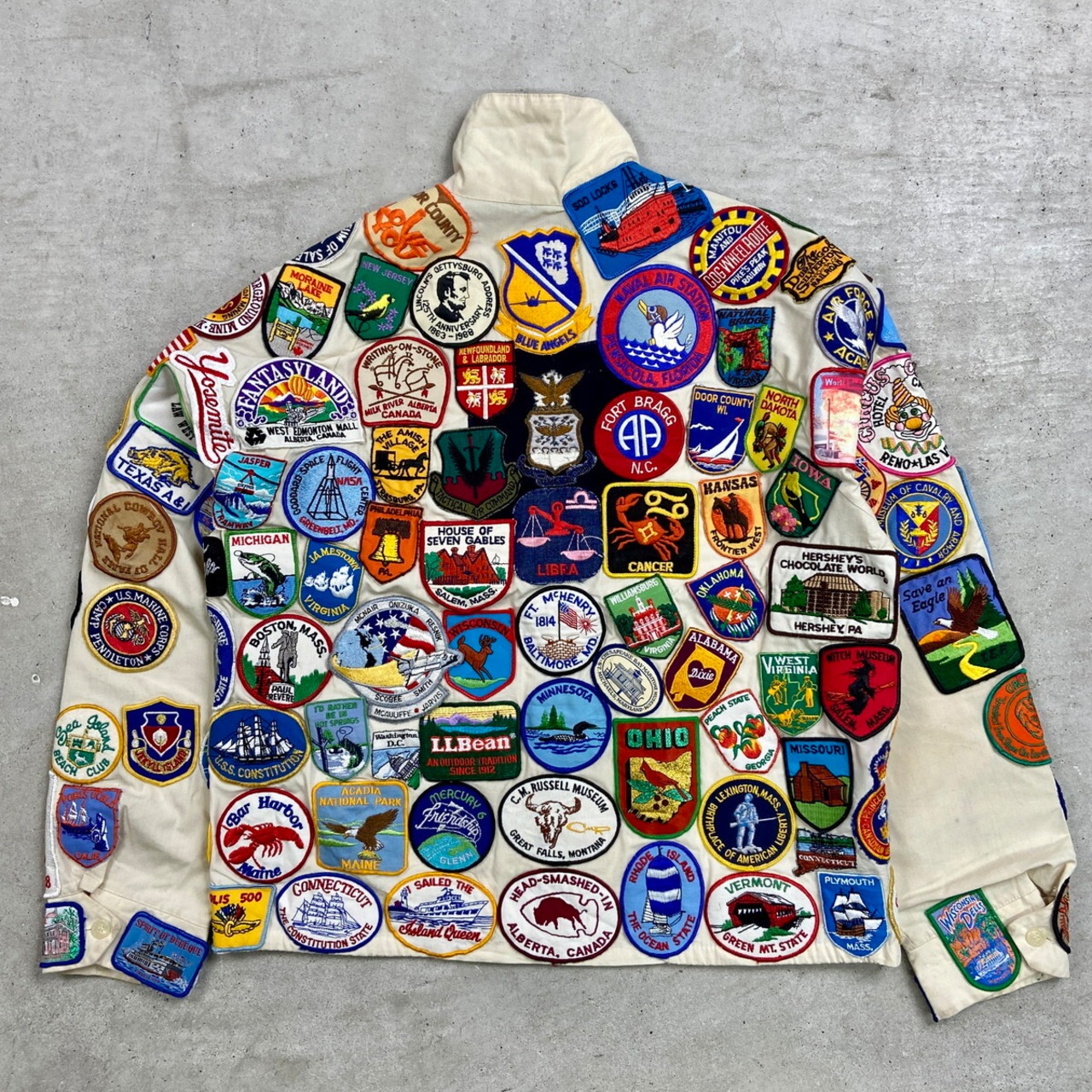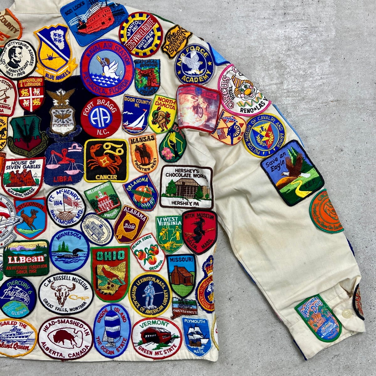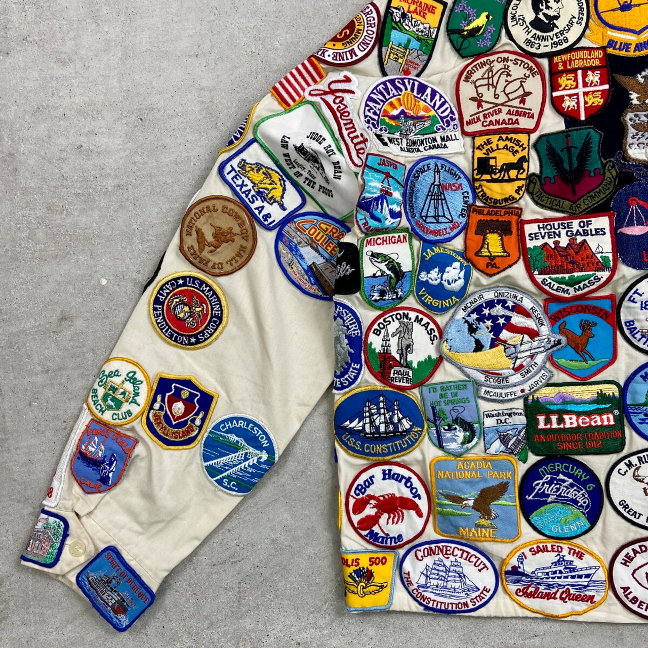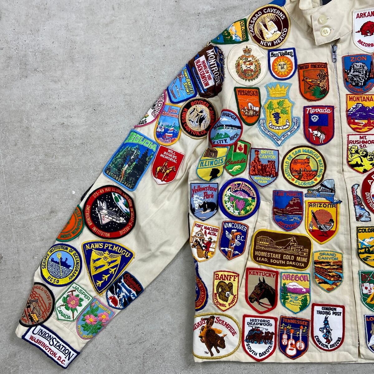 ■70年代 USA製 SPORTS MASTER ワッペンカスタム スポーツジャケット メンズM 古着 70s VINTAGE ヴィンテージ アメカジ スイングトップ チンスト付き PRIDEジッパー オフホワイトカラー【ナイロンジャケット】/ベージュ