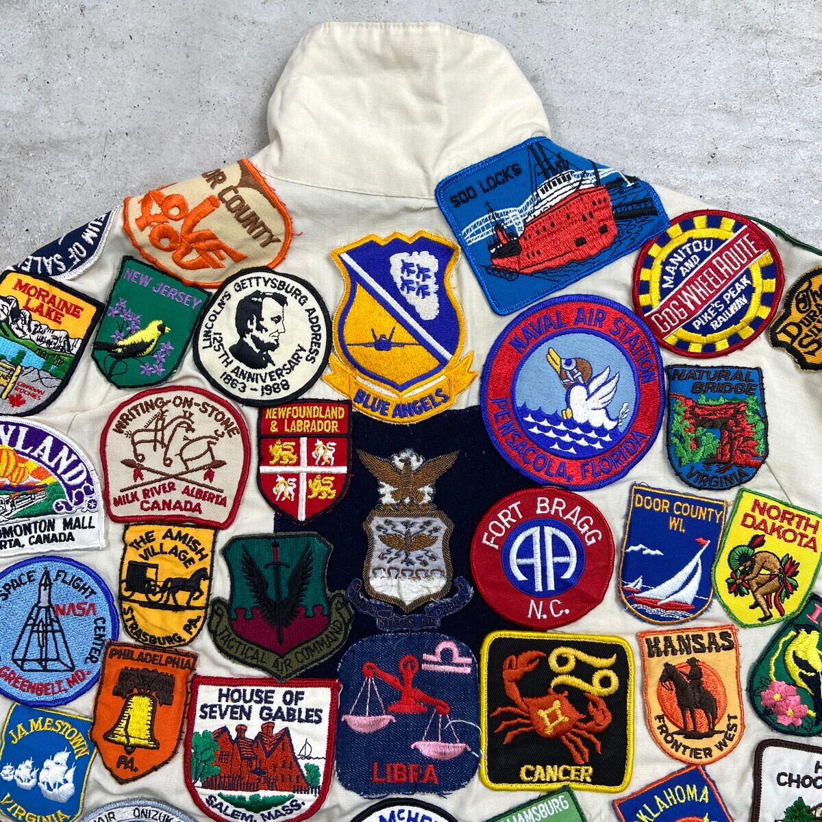 70年代 USA製 SPORTS MASTER ワッペンカスタム スポーツジャケット メンズM 古着 70s VINTAGE ヴィンテージ アメカジ スイングトップ チンスト付き PRIDEジッパー オフホワイトカラー【ナイロンジャケット】/ベージュ