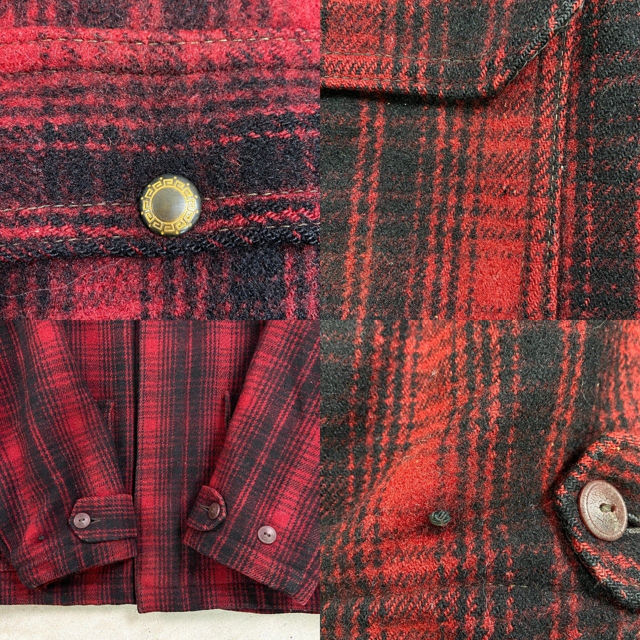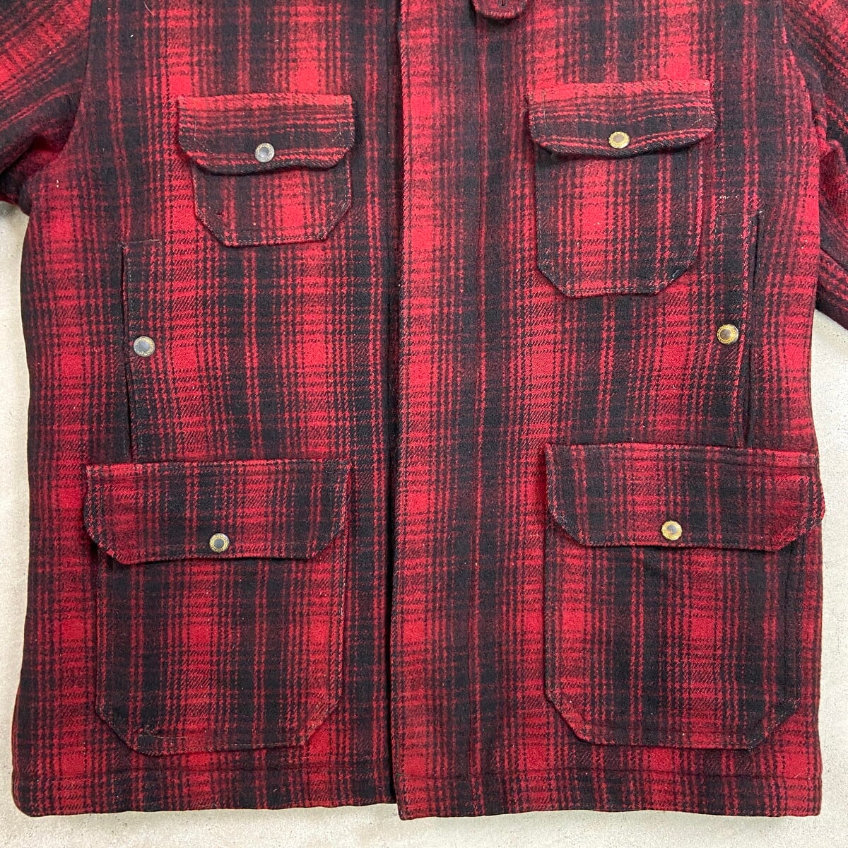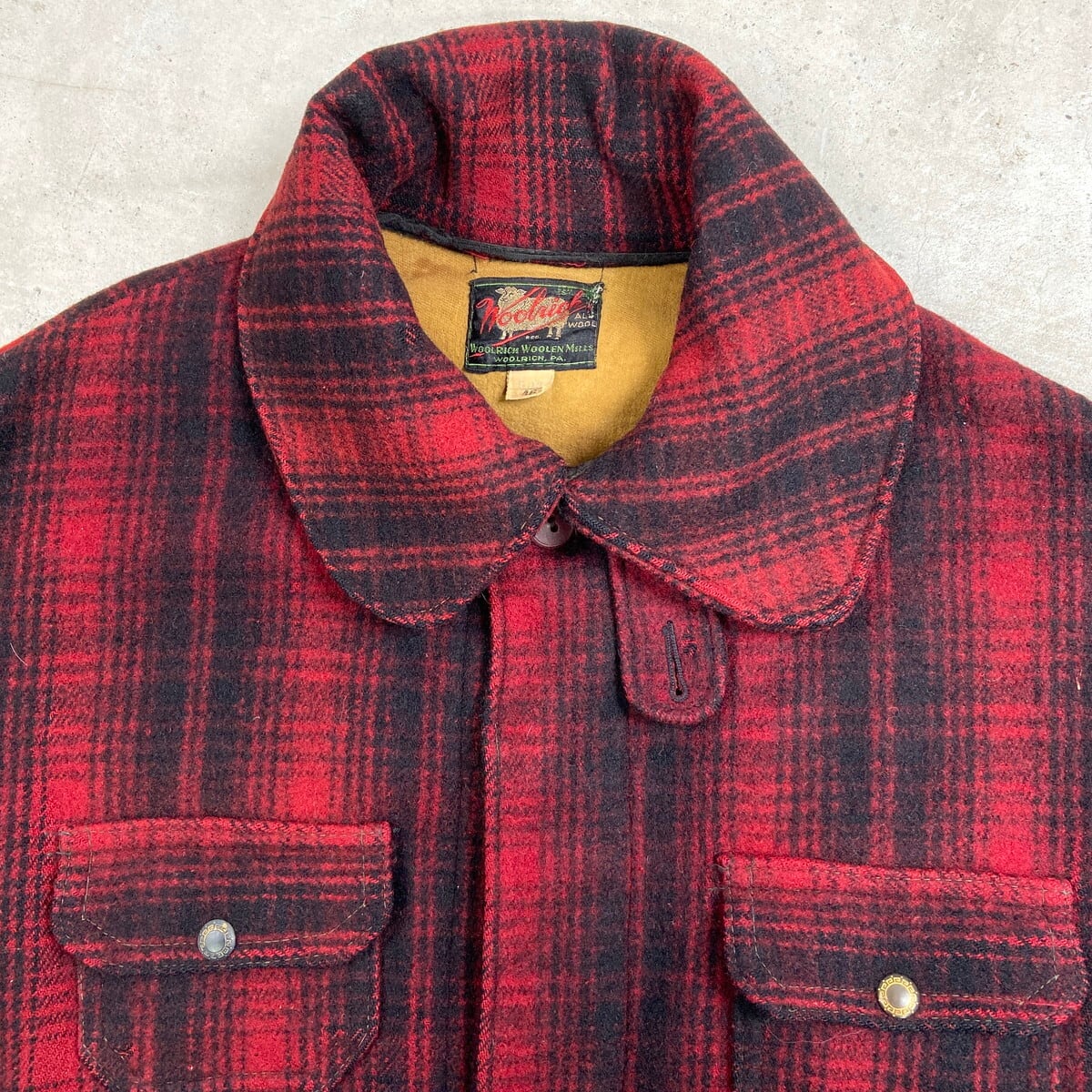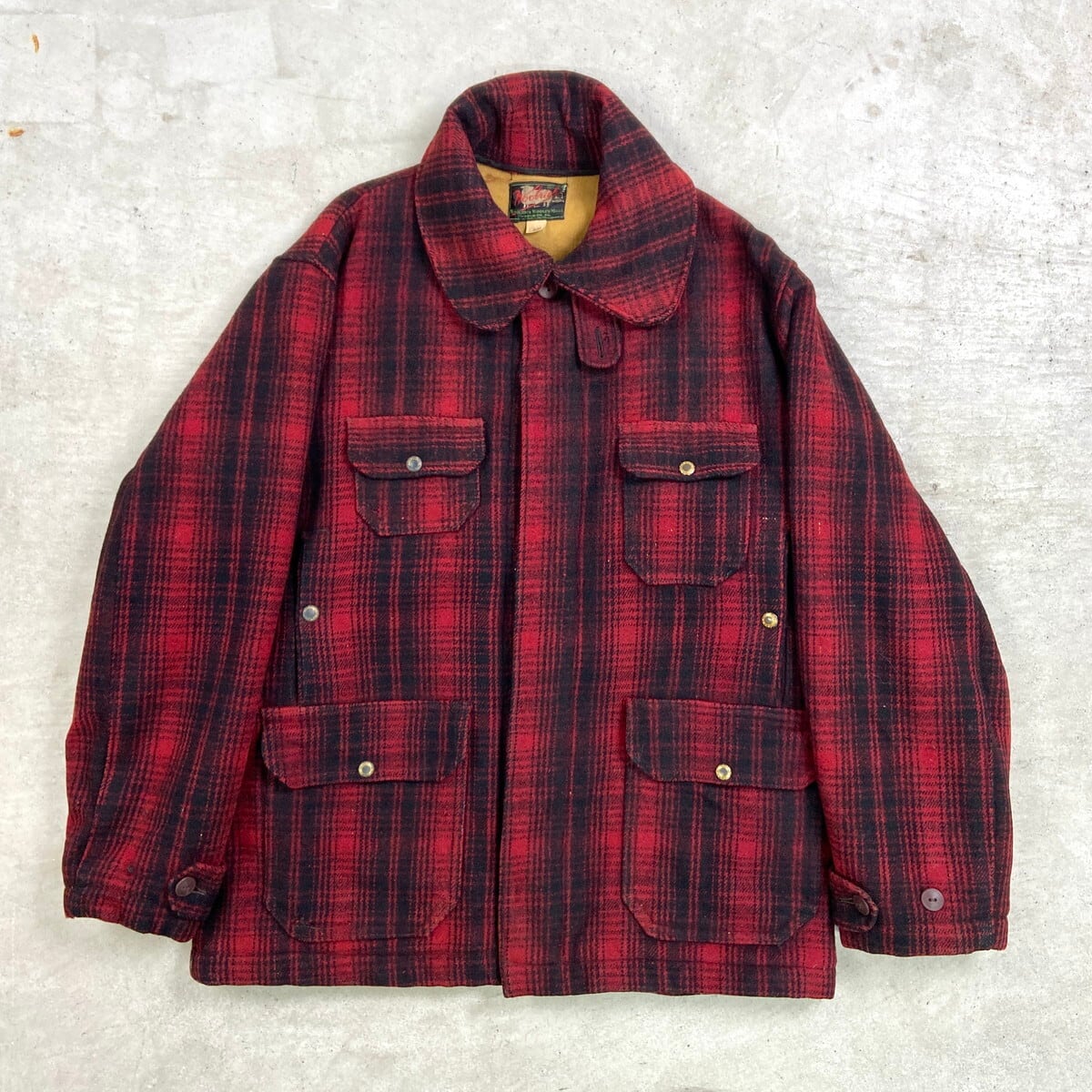■30年代 黒タグ WOOLRICH ウールリッチ バッファローチェック柄 ウールハンティングジャケット メンズXL相当 古着 30s VINTAGE ヴィンテージ アメカジ チンスト付き レッド×ブラック【アウトドアジャケット】/マルチカラー