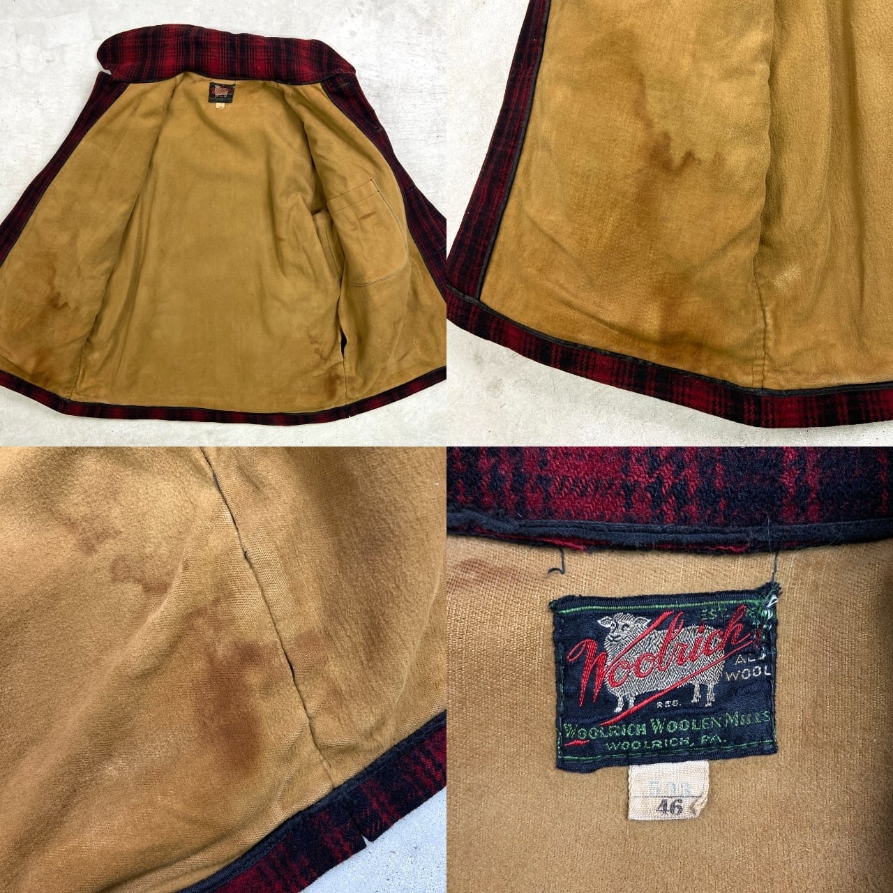30年代 黒タグ WOOLRICH ウールリッチ バッファローチェック柄 ウールハンティングジャケット メンズXL相当 古着 30s VINTAGE ヴィンテージ アメカジ チンスト付き レッド×ブラック【アウトドアジャケット】/マルチカラー