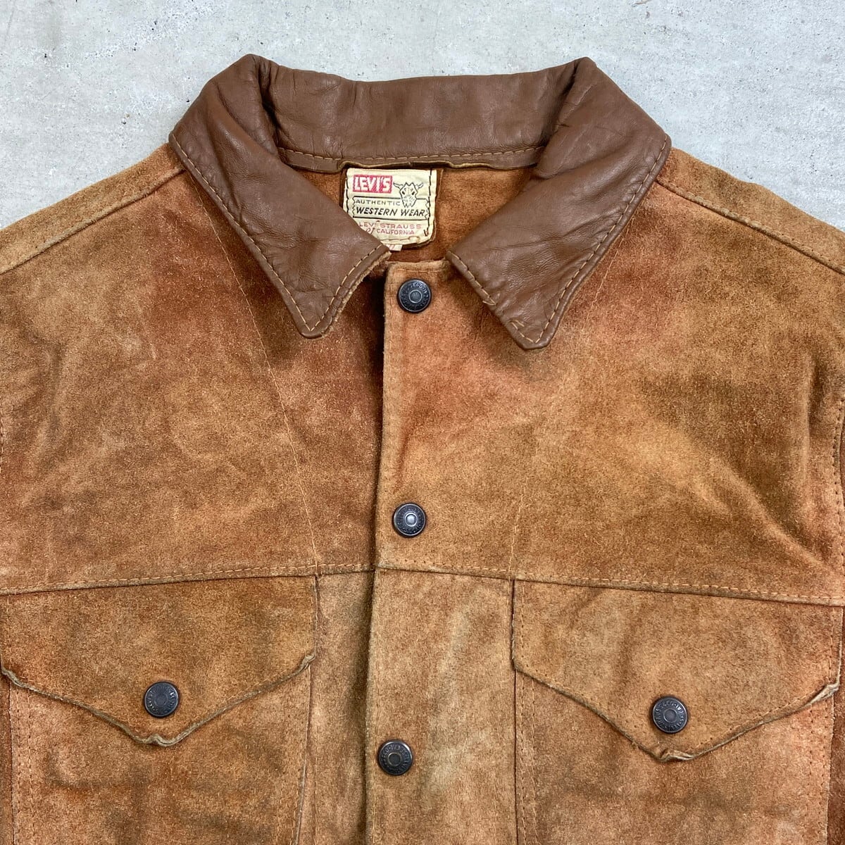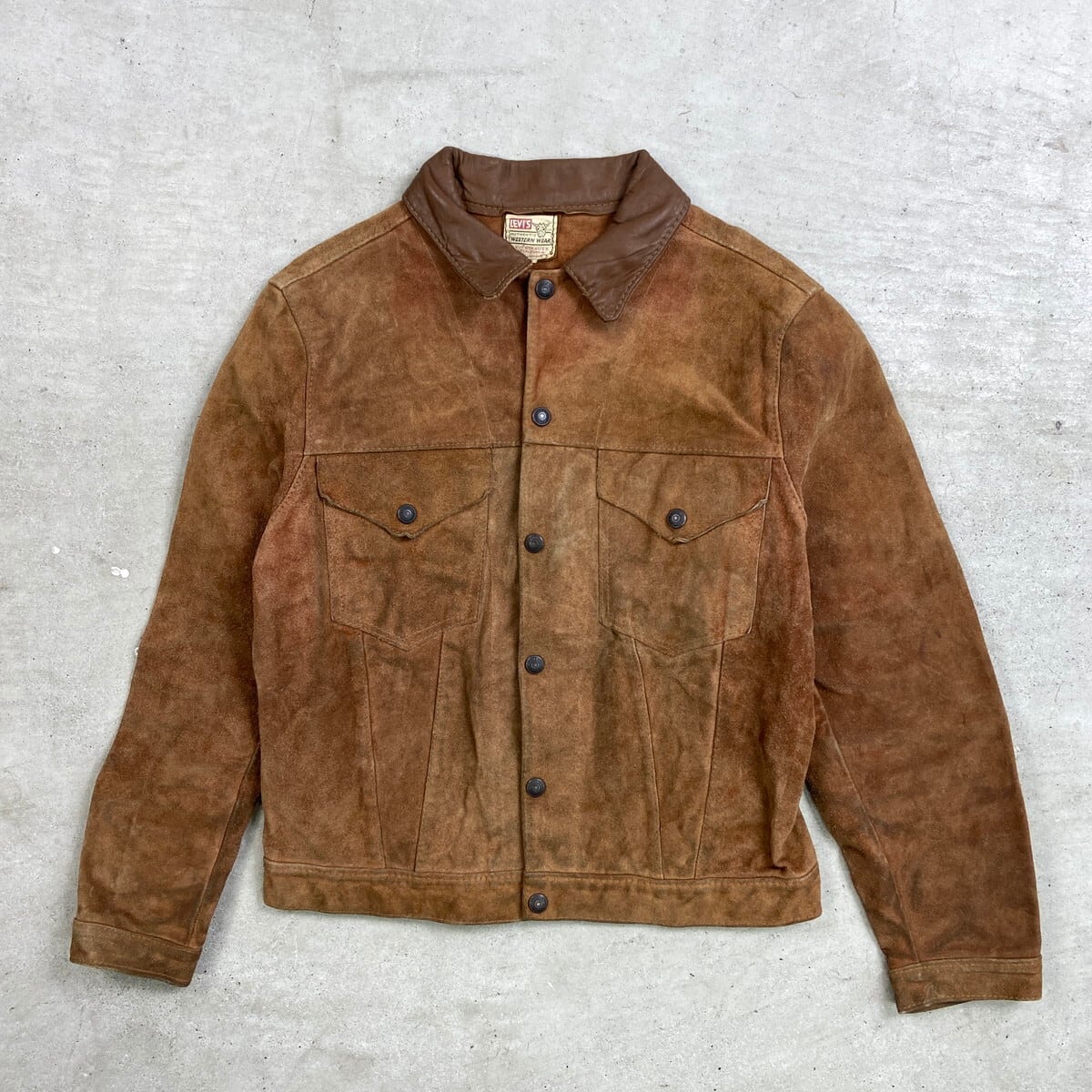 50年代 ショートホーンタグ Levi’s リーバイス 3rdタイプ スエードレザージャケット メンズM相当 古着 50s ヴィンテージ VINTAGE アメカジ スナップボタン キャメルブラウン【ジャケット】/ブラウン
