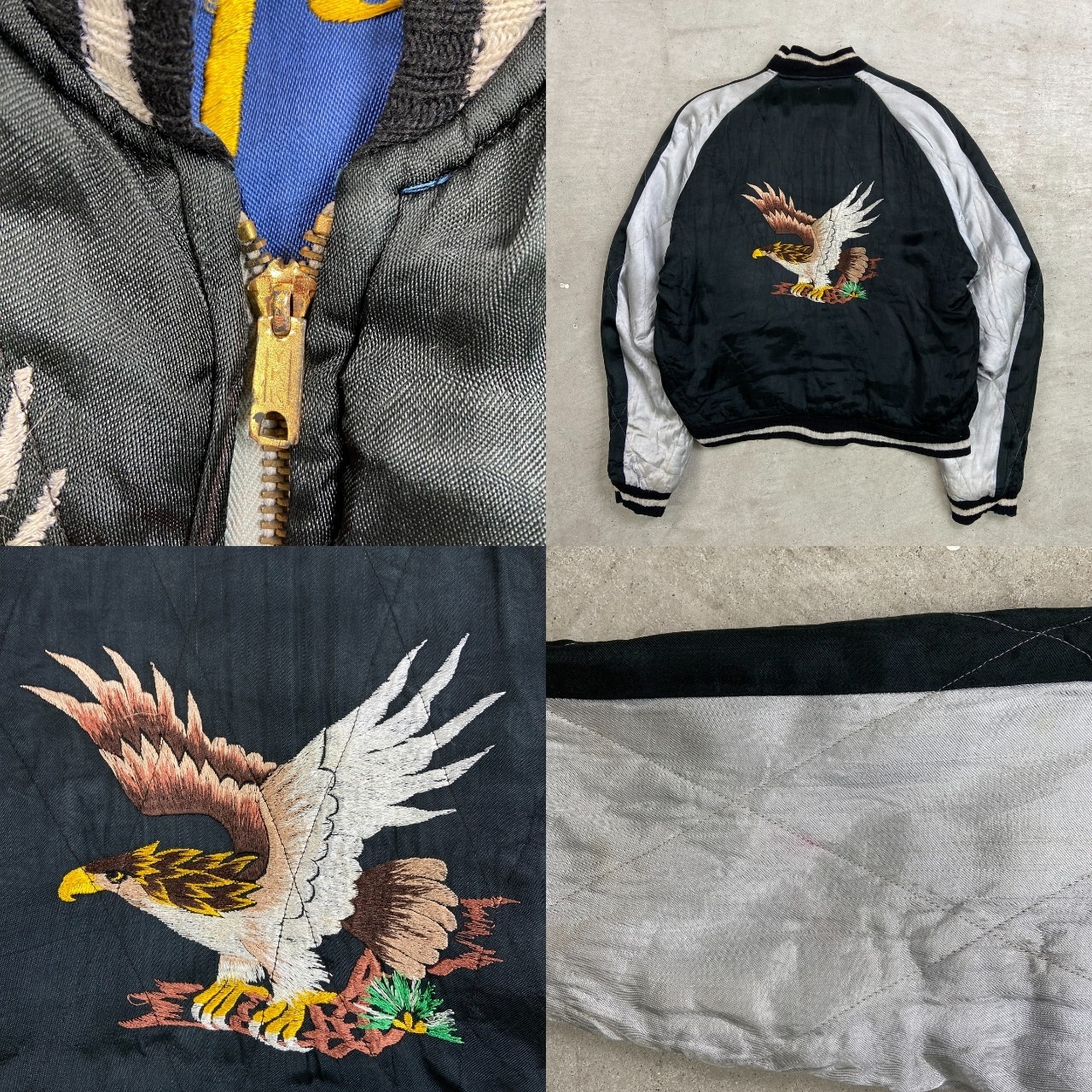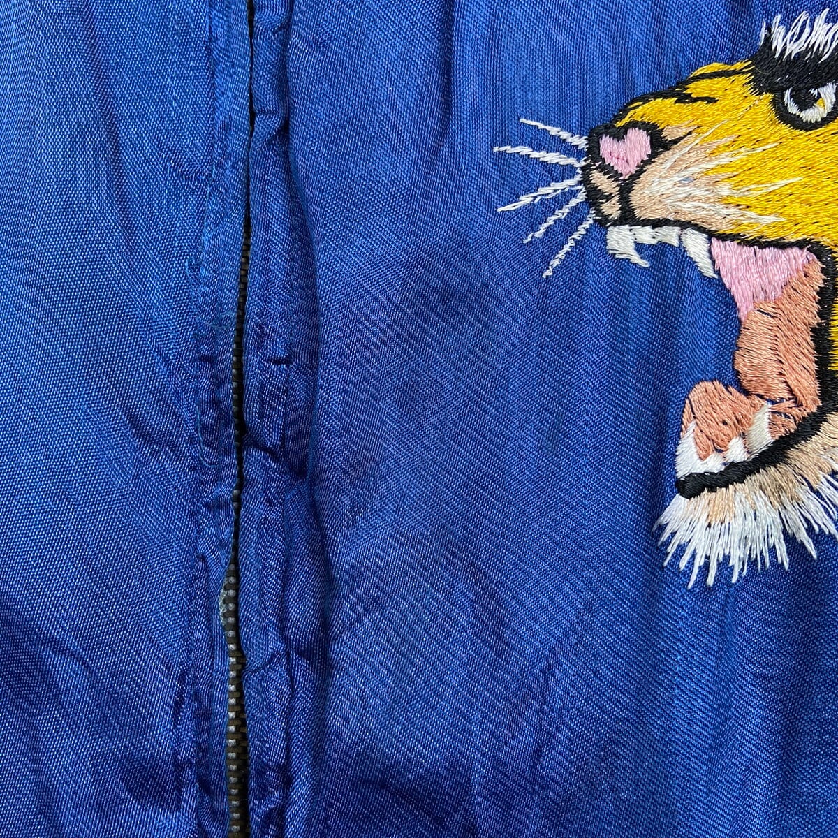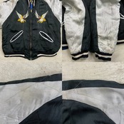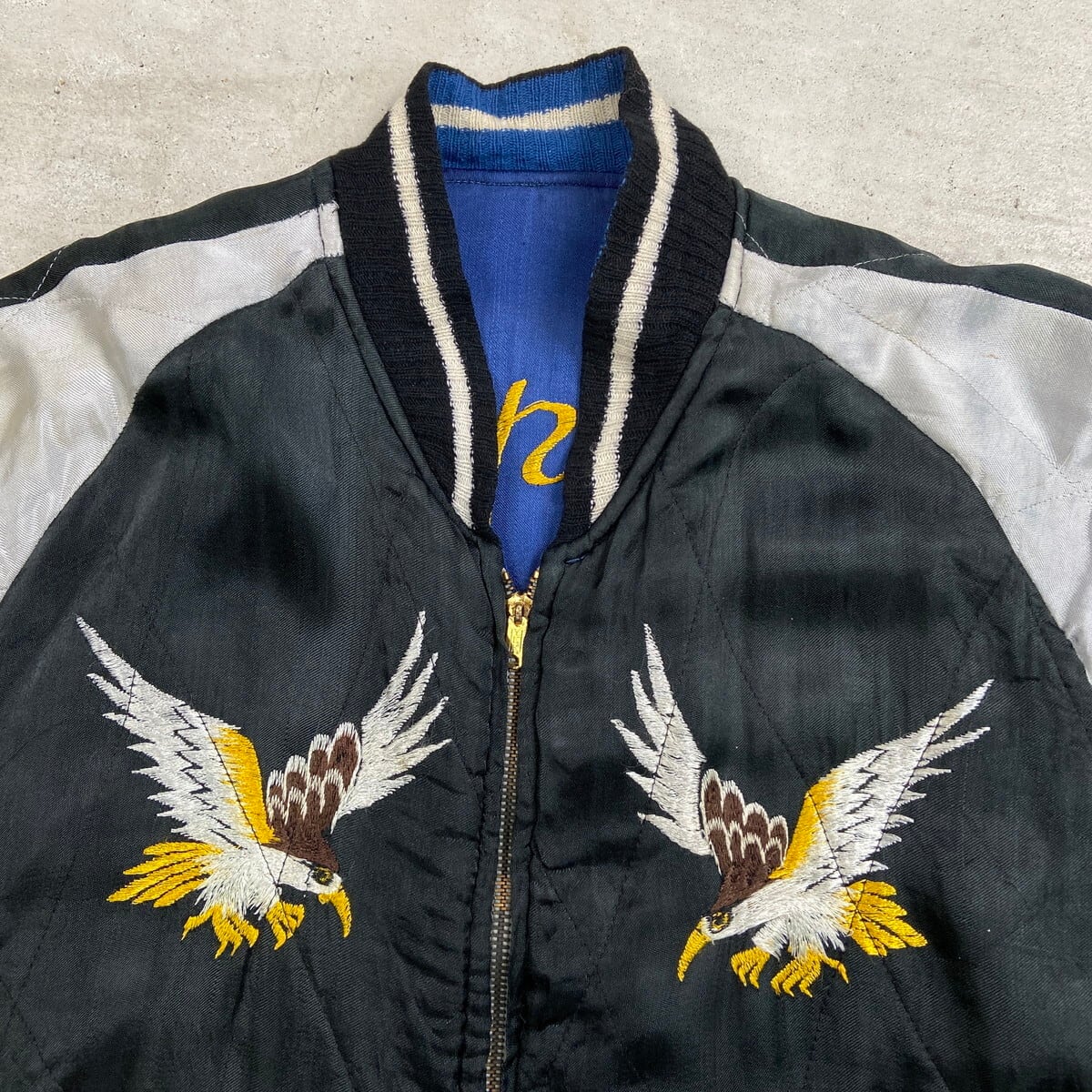 ■50年代 JAPAN スーベニアジャケット リバーシブル キルティング スカジャン メンズS~M相当 古着 50s VINTAGE ヴィンテージ 虎 鷹 富士山 刺繍 サテン ブルー×ブラック【ブルゾン・ジャケット】/ブルー