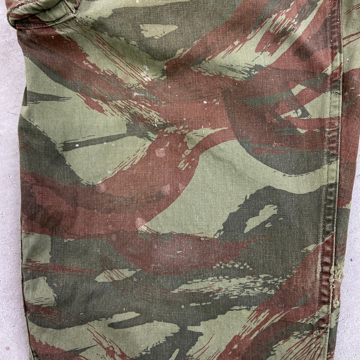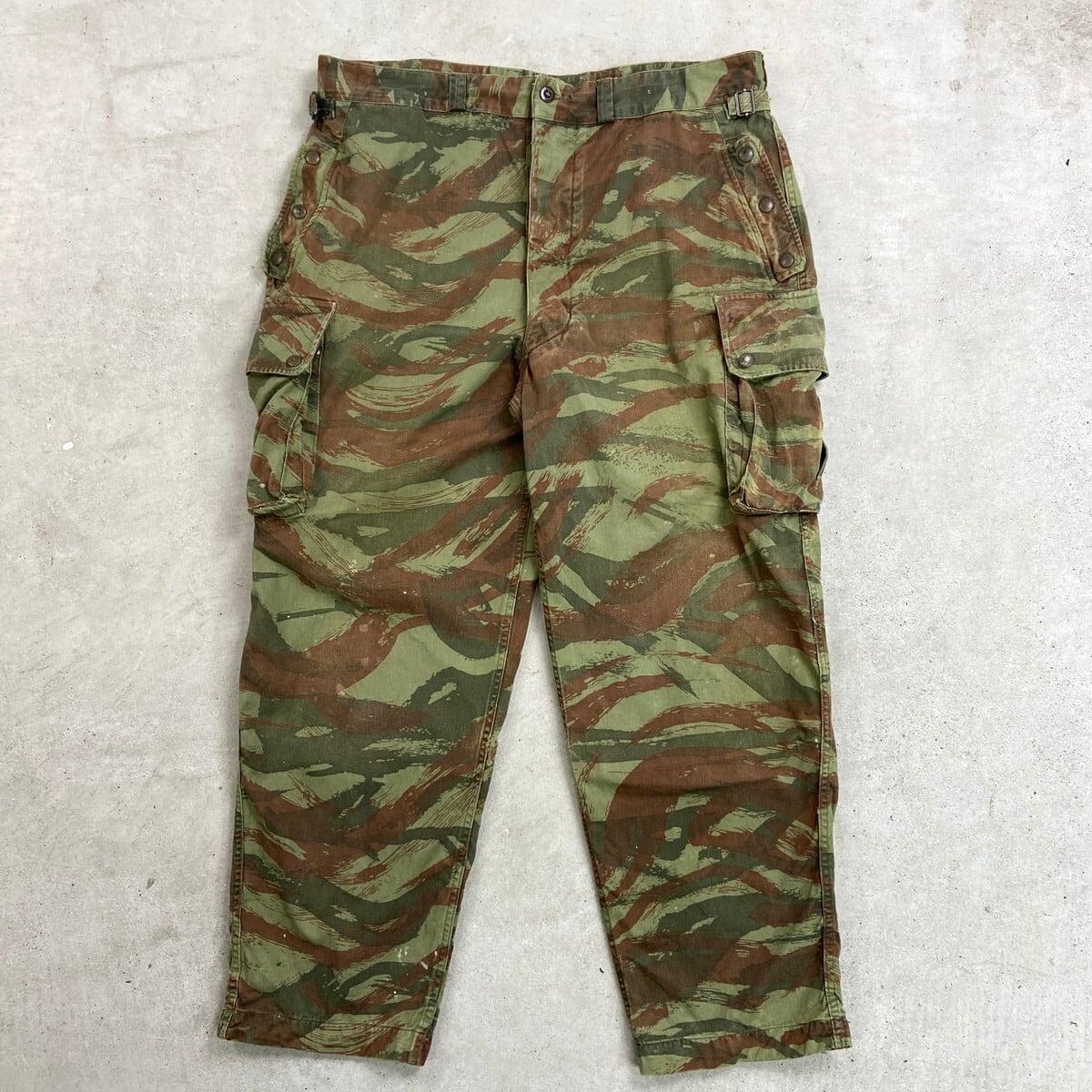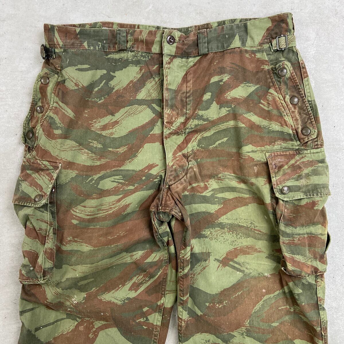 ■50年代 フランス軍 リザードカモ M-47 TAP47/56 パラトルーパーパンツ メンズW38相当 古着 50s VINTAGE ヴィンテージ ユーロミリタリー カーゴパンツ HBT ヘリンボーンツイル パラシュートパンツ 迷彩柄 総柄 カモフラ【ミリタリーパンツ】/マルチカラー
