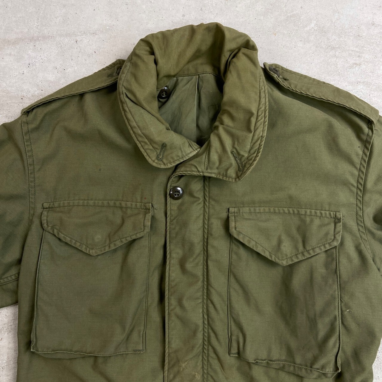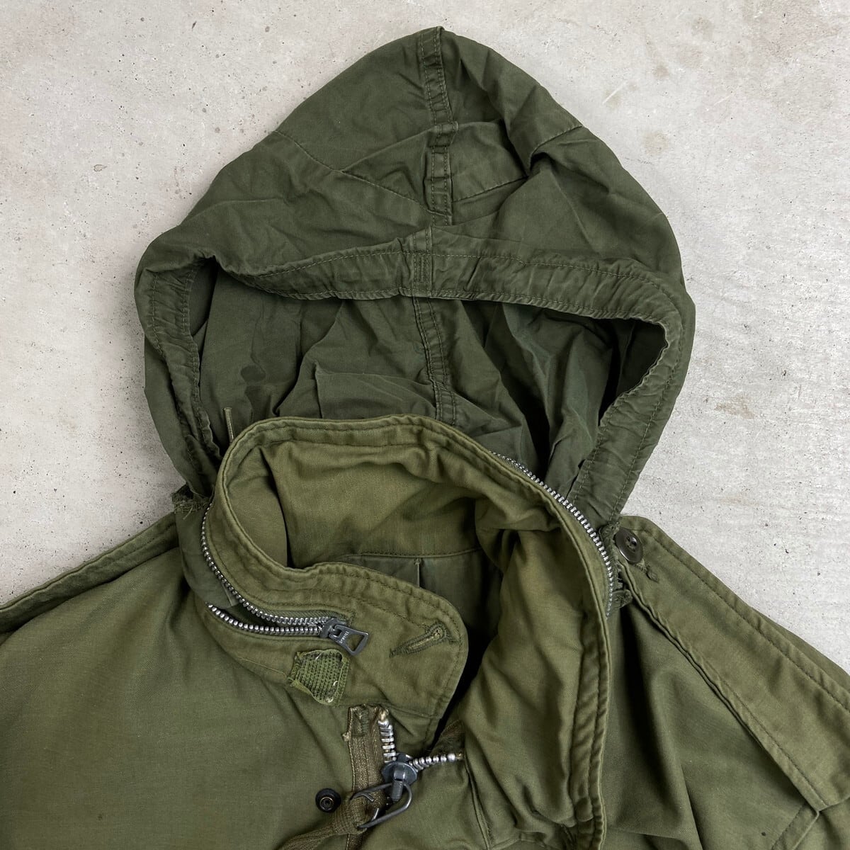 ■60~70年代 U.S.ARMY 米軍実品 M-65 2nd フィールドジャケット メンズM相当 古着 60s 70s ヴィンテージ VINTAGE アルミジップ SCOVILLジッパー フード収納型 オリーブグリーン【ミリタリージャケット】/カーキグリーン