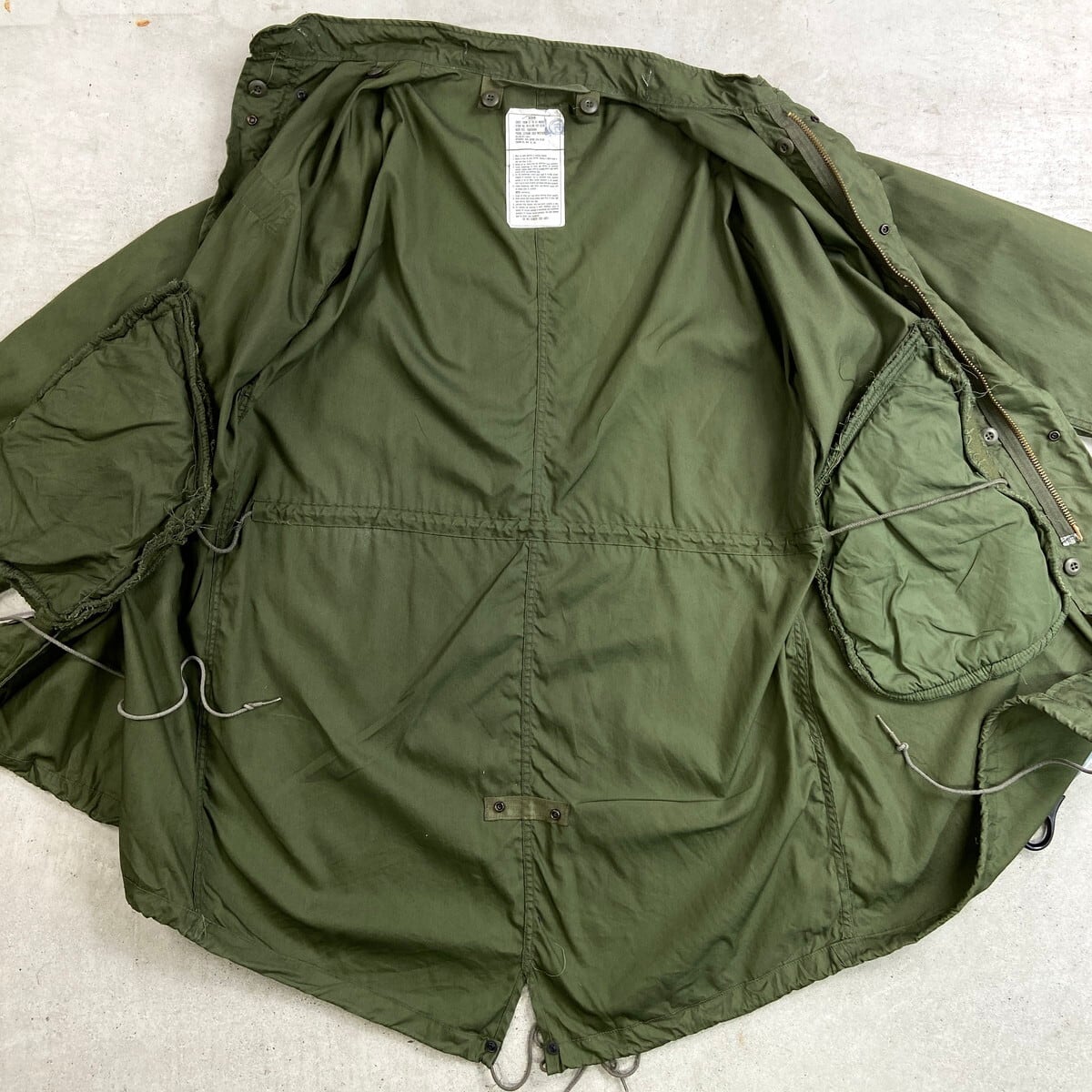 ■83年納品 U.S.ARMY 米軍実品 M-65 フィールドパーカー フィッシュテール モッズコート メンズXL相当 古着 80s ヴィンテージ VINTAGE SCOVILLジッパー ドローコード付き オリーブグリーン【ミリタリージャケット】/カーキグリーン