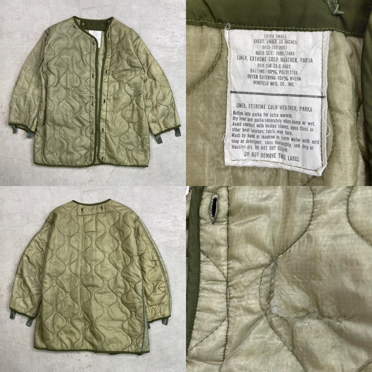 ■74年納品 U.S.ARMY 米軍実品 M-65 フィールドパーカー フィッシュテール モッズコート X-SMALL-REGULAR XS メンズL相当 古着 70s ヴィンテージ VINTAGE キルティングライナー付き ドローコード付き オリーブグリーン【ミリタリージャケット】/カーキグリーン