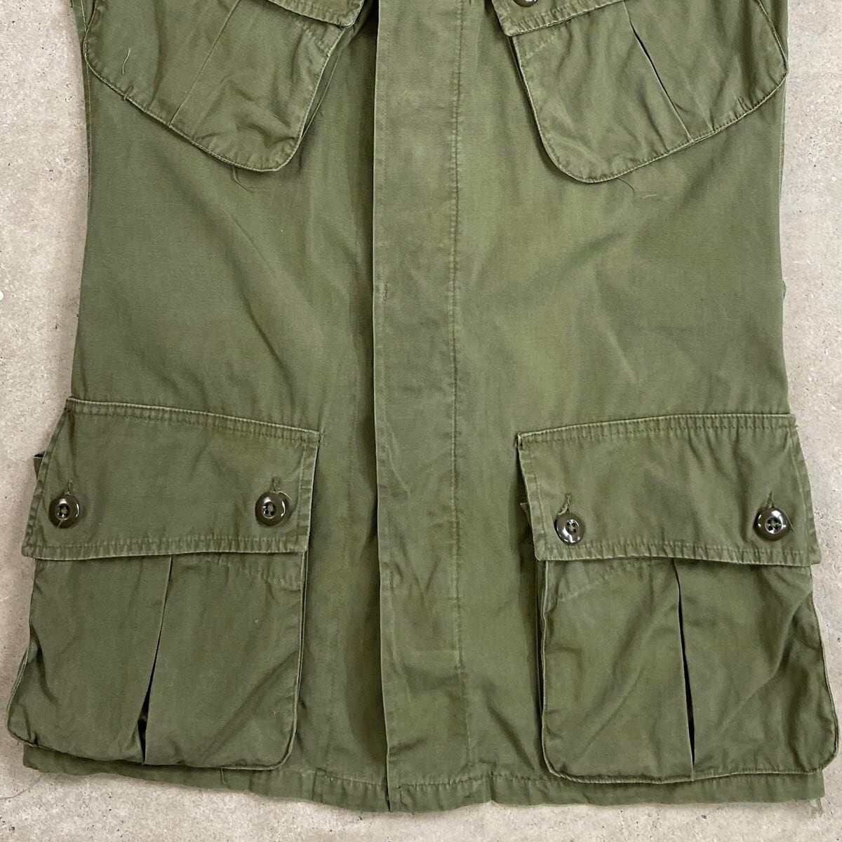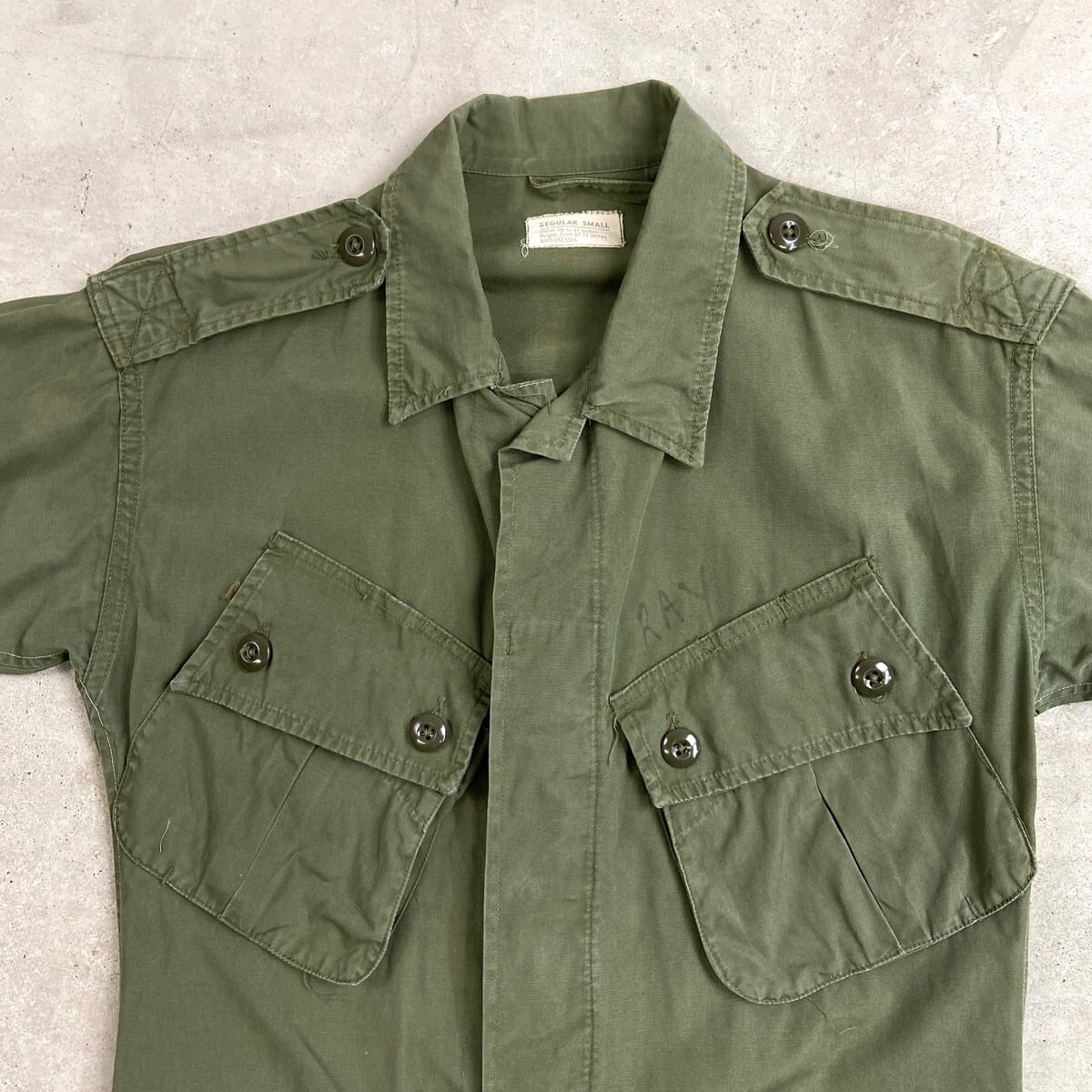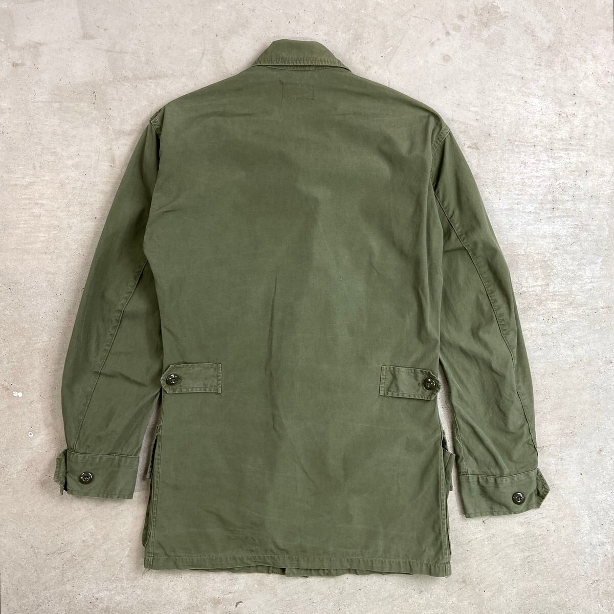 ■63年納品 米軍実品 U.S.ARMY 1st ジャングルファティーグ ミリタリージャケット メンズS相当 古着 60s ヴィンテージ VINTAGE エポレット付き4ポケット オリーブグリーン【ミリタリージャケット】/カーキグリーン