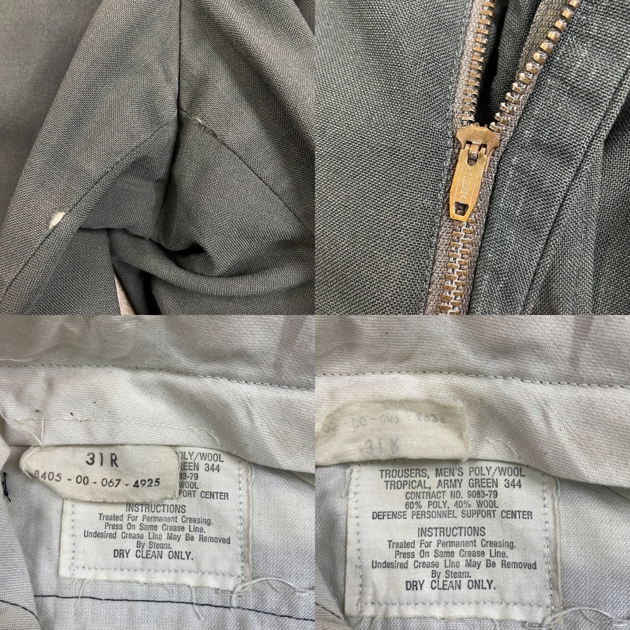 ■70年代 U.S.ARMY 米軍実品 オフィサーパンツ ウールスラックスパンツ メンズW30相当 古着 70s ヴィンテージ VINTAGE サイドライン トラウザーズ ドレスパンツ GENERALジッパー アーミーグリーン【ミリタリーパンツ】/カーキグリーン