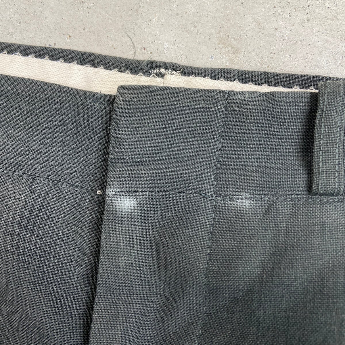 股付近に貫通はしていませんが、表面生地にダメージがあります。