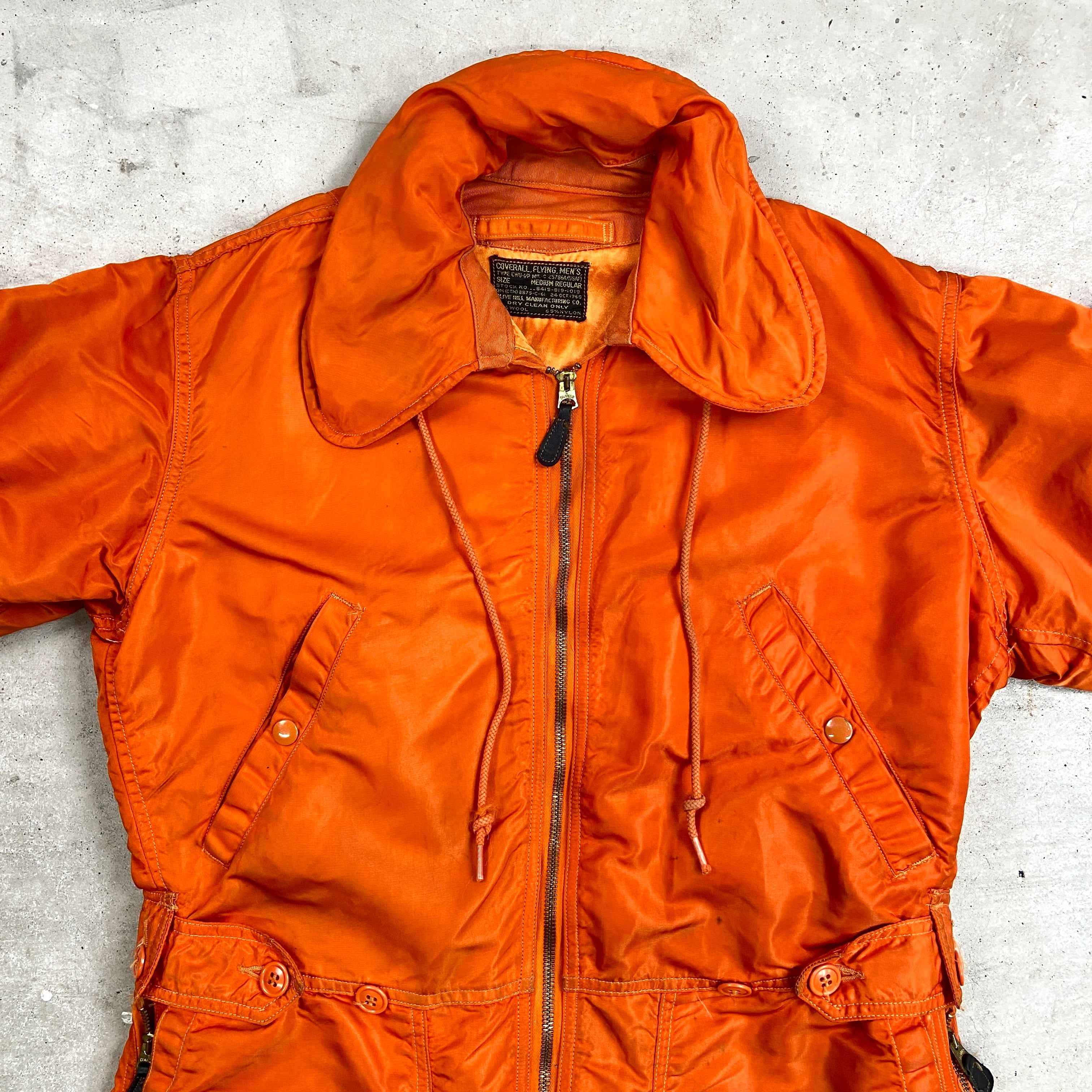 60年代 U.S.AIRFORCE CWU‐1/P フライトスーツ メンズL-XL相当 古着 60s VINTAGE ヴィンテージ パイロットスーツ フード収納型 CONMARジッパー オールインワン ミリタリー つなぎ インディアンオレンジ【オーバーオール】/オレンジ