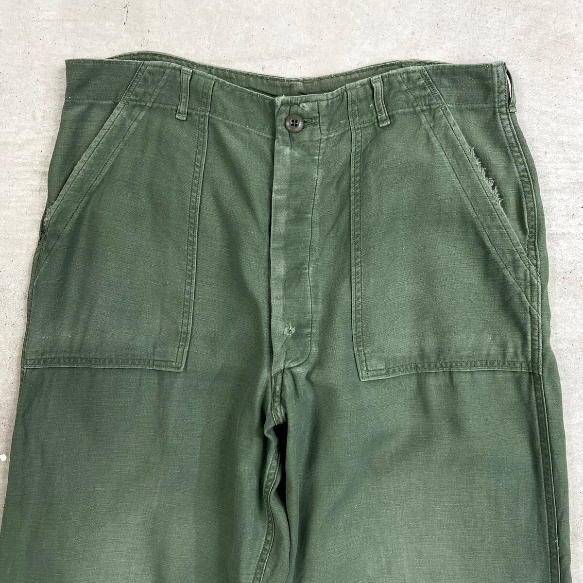 70年代 U.S.ARMY 米軍実品 ベイカーパンツ メンズW35相当 古着 70s ヴィンテージ VINTAGE OG-107 ボタンフライ UFOボタン オリーブグリーン【ミリタリーパンツ】/カーキグリーン