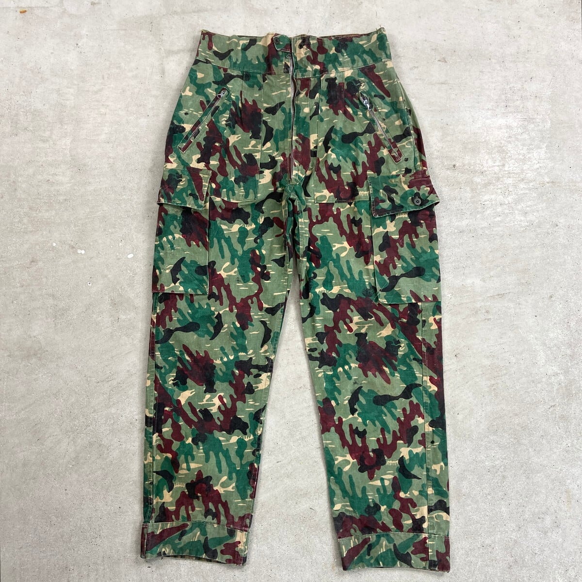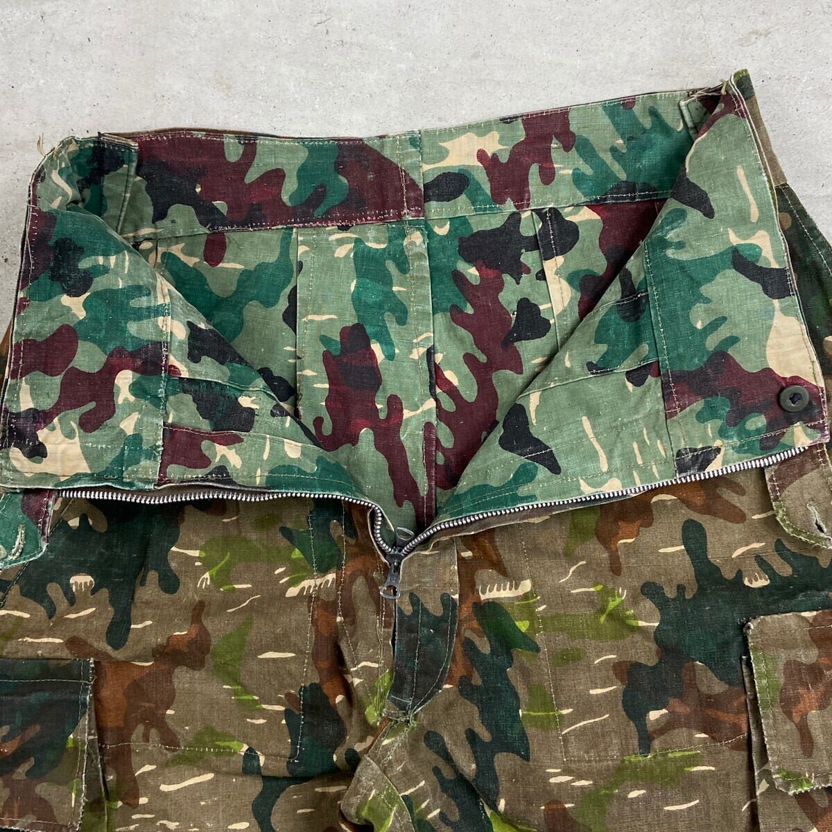 50~60年代 スペイン軍 アメーバカモ リバーシブル フィールドパンツ メンズW31相当 古着 50s 60s VINTAGE ヴィンテージ ユーロミリタリー パラトルーパーパンツ カーゴパンツ 迷彩柄 総柄 カモフラ グリーン カーキグリーン ブラウン 緑 茶色【ミリタリーパンツ】/マルチカラー