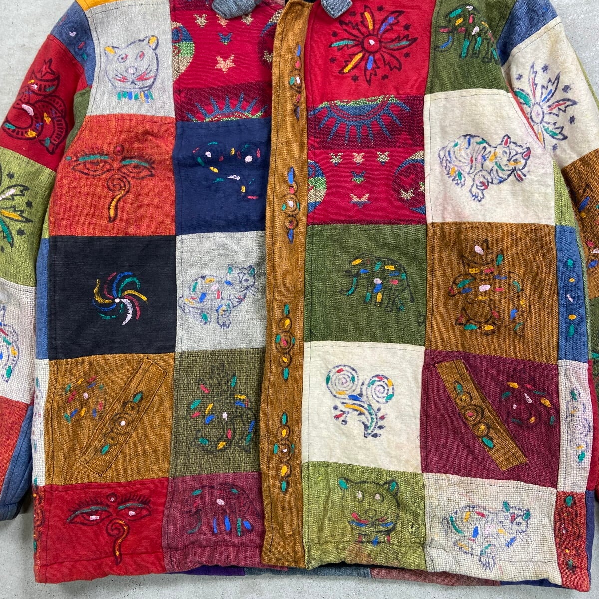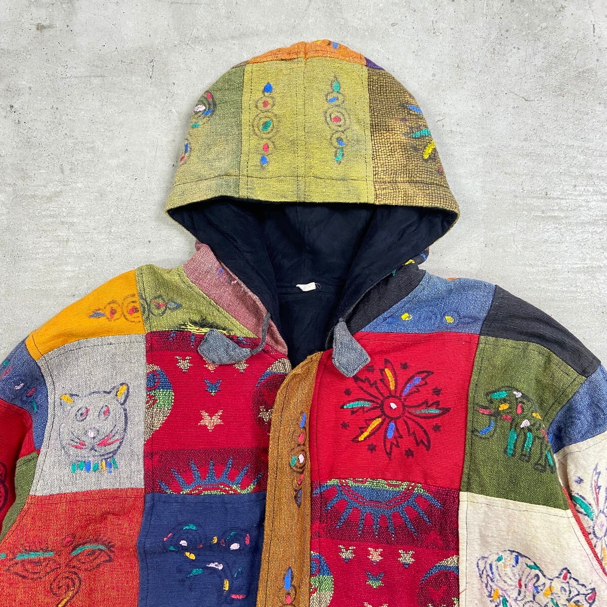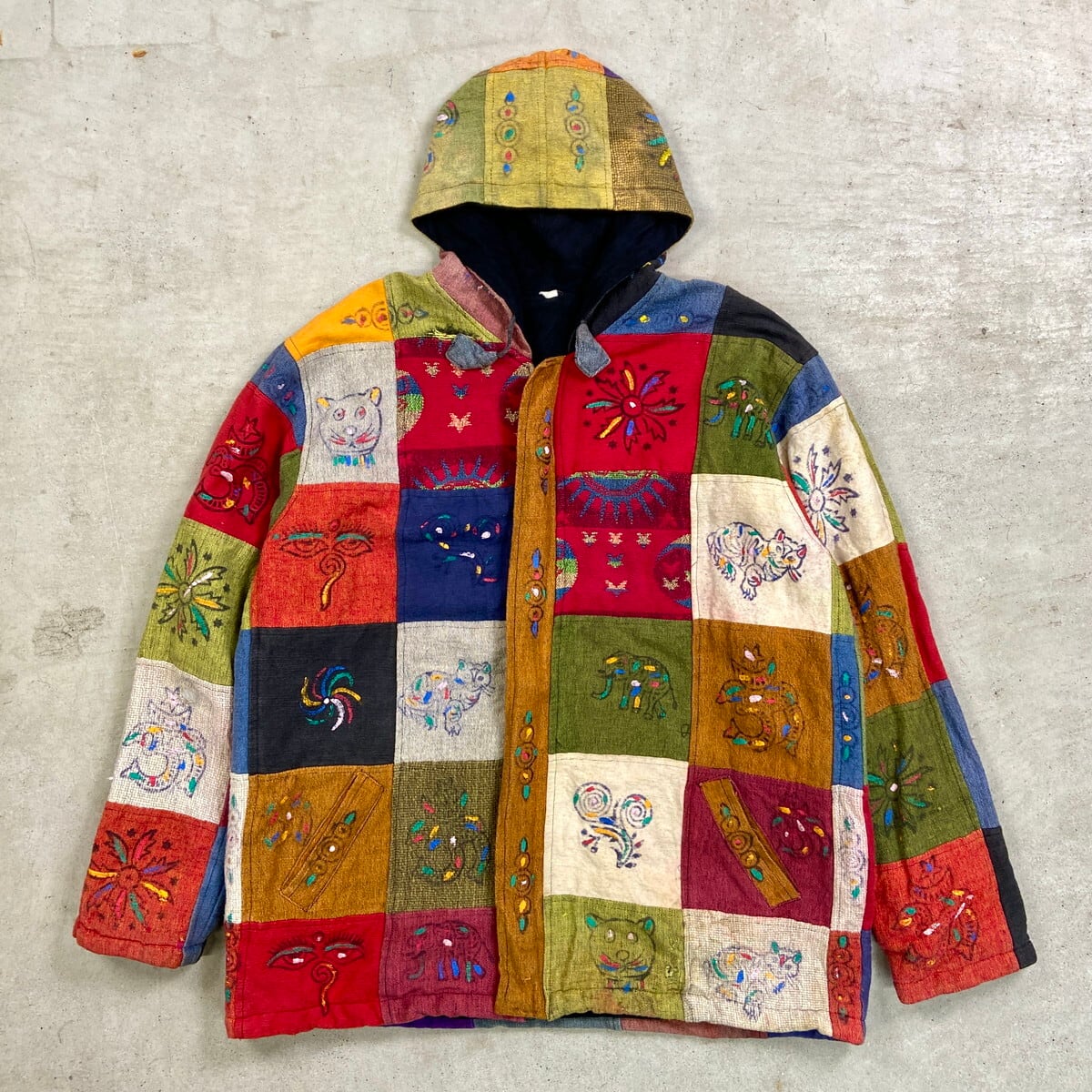 ■総柄 ネパール パッチワーク フルジップパーカー メンズL~XL相当 古着 ヴィンテージ VINTAGE エスニック 裏地フリース 【パーカー】/マルチカラー