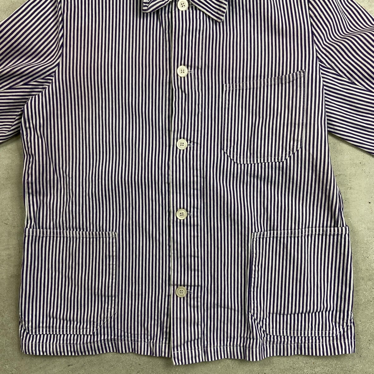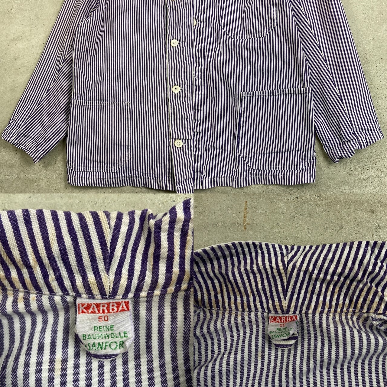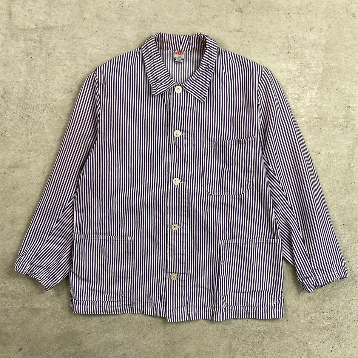 ■70年代 ドイツ製 ヒッコリーストライプ ジャーマンワークジャケット カバーオール メンズM相当 古着 70s VINTAGE ヴィンテージ ユーロミリタリー ユーロワーク パープル ホワイト【ワークジャケット】/マルチカラー