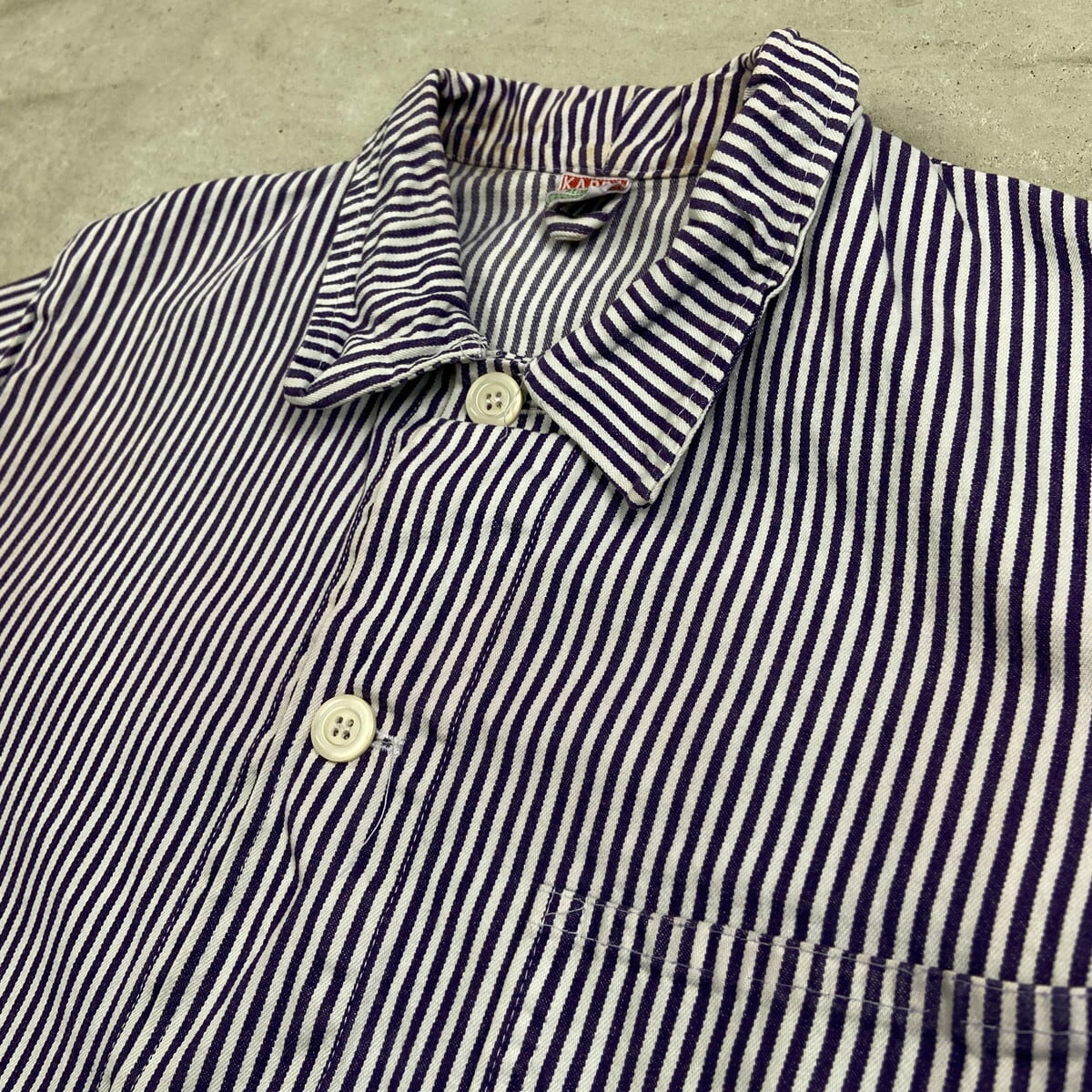 70年代 ドイツ製 ヒッコリーストライプ ジャーマンワークジャケット カバーオール メンズM相当 古着 70s VINTAGE ヴィンテージ ユーロミリタリー ユーロワーク パープル ホワイト【ワークジャケット】/マルチカラー