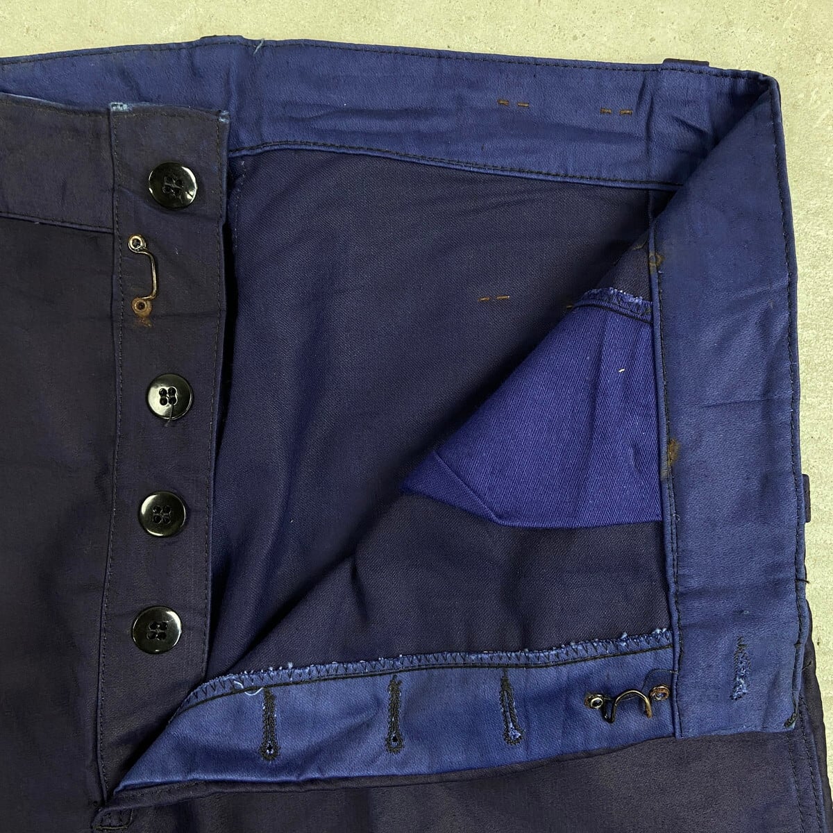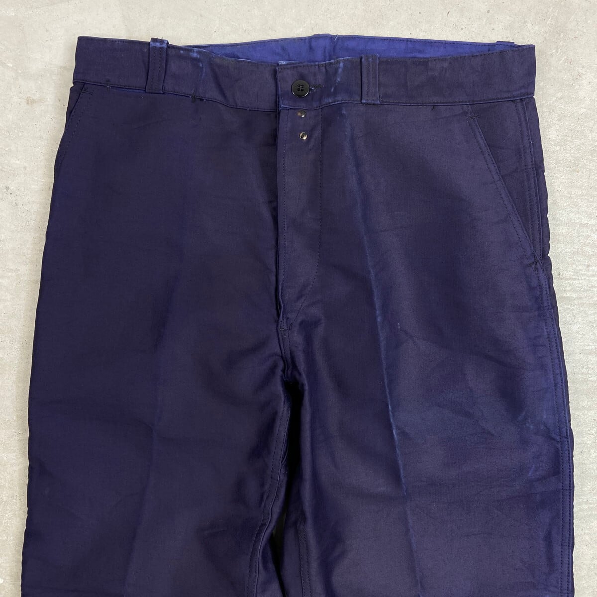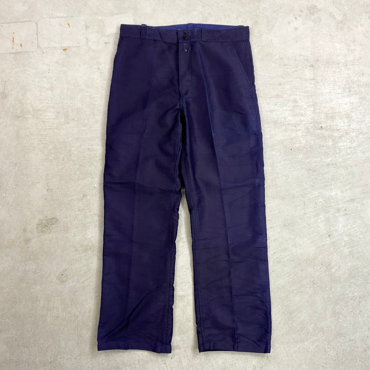 ■DEAD STOCK NOS 50年代 Dubure & Deverchère ブルーモールスキン フレンチワークパンツ メンズW35相当 古着 50s VINTAGE ヴィンテージ デッドストック フラッシャー付き ユーロワーク インクブルー 紺色【ワークパンツ】/ネイビー