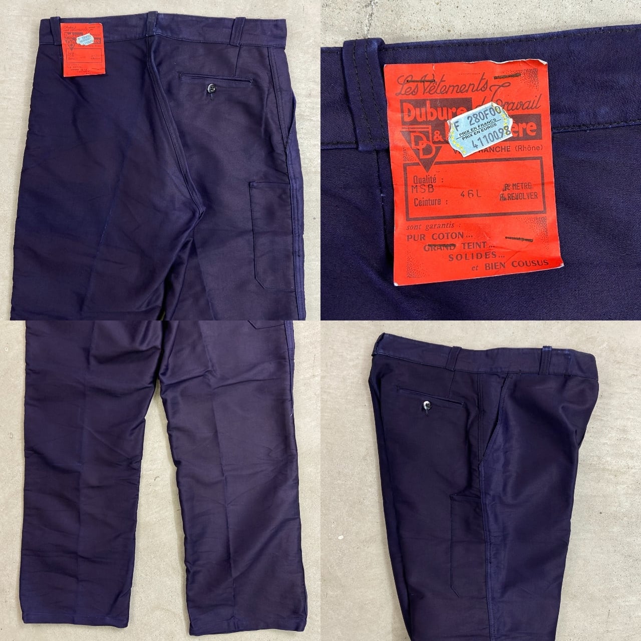 DEAD STOCK NOS 50年代 Dubure & Deverchère ブルーモールスキン フレンチワークパンツ メンズW35相当 古着 50s VINTAGE ヴィンテージ デッドストック フラッシャー付き ユーロワーク インクブルー 紺色【ワークパンツ】/ネイビー