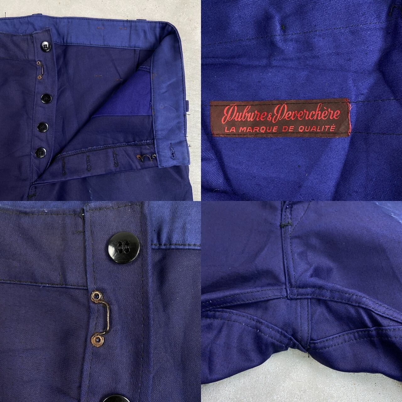 ■DEAD STOCK NOS 50年代 Dubure & Deverchère ブルーモールスキン フレンチワークパンツ メンズW35相当 古着 50s VINTAGE ヴィンテージ デッドストック フラッシャー付き ユーロワーク インクブルー 紺色【ワークパンツ】/ネイビー