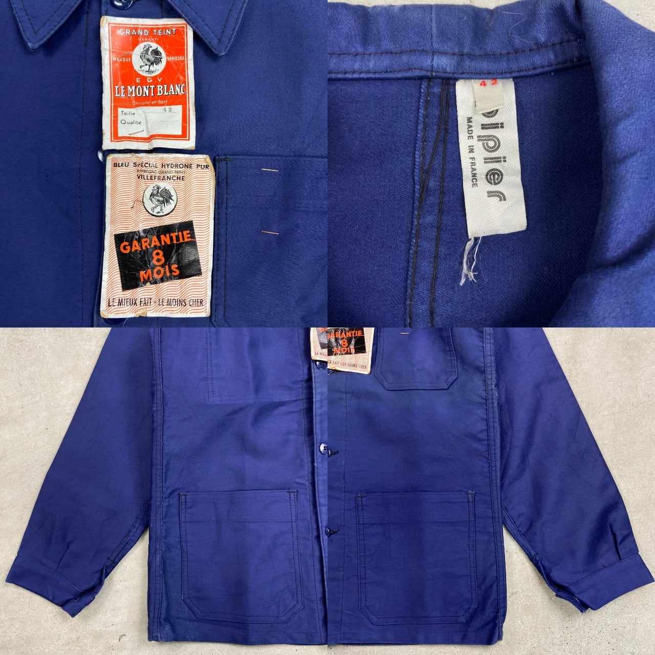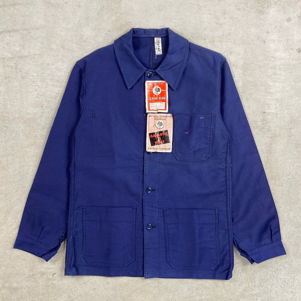 DEAD STOCK NOS 60年代 フランス製 Pipier GRAND TEINT ブルーモールスキン フレンチワークジャケット メンズS相当 古着 60s VINTAGE ヴィンテージ デッドストック フラッシャー付き ユーロワーク 【ユーロワークジャケット】/ネイビー