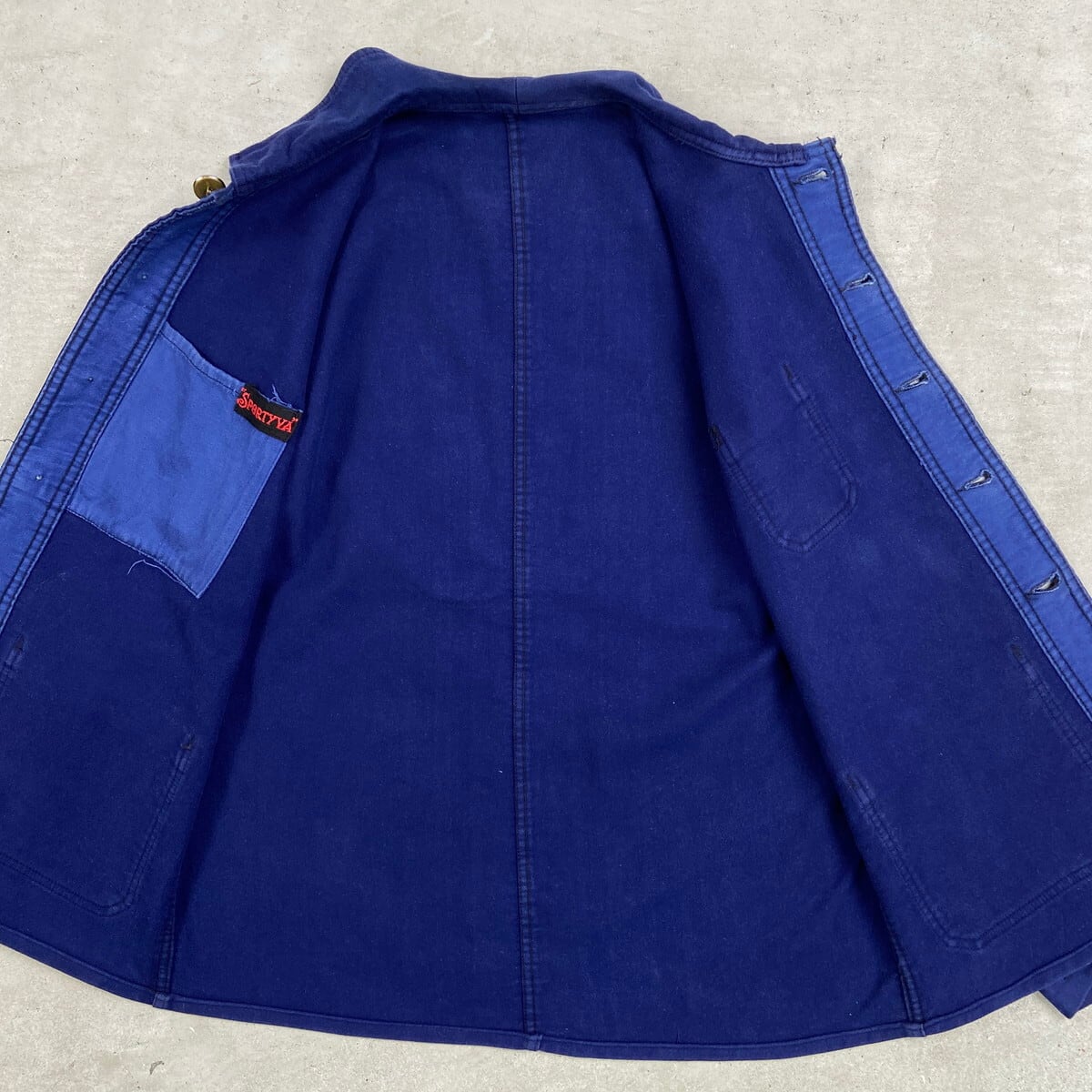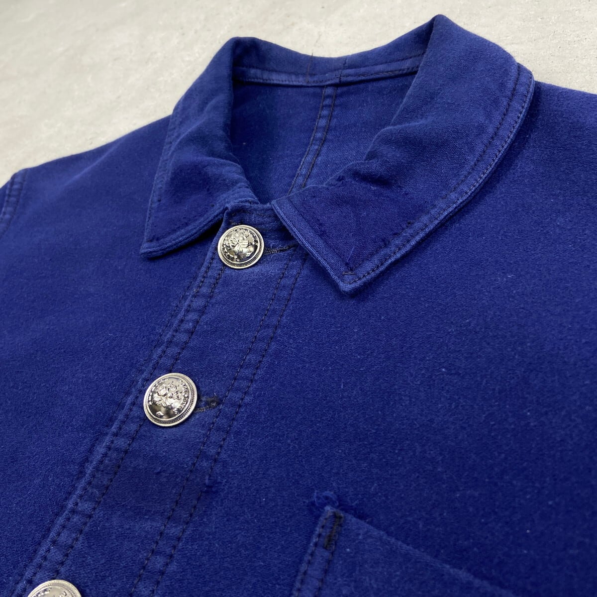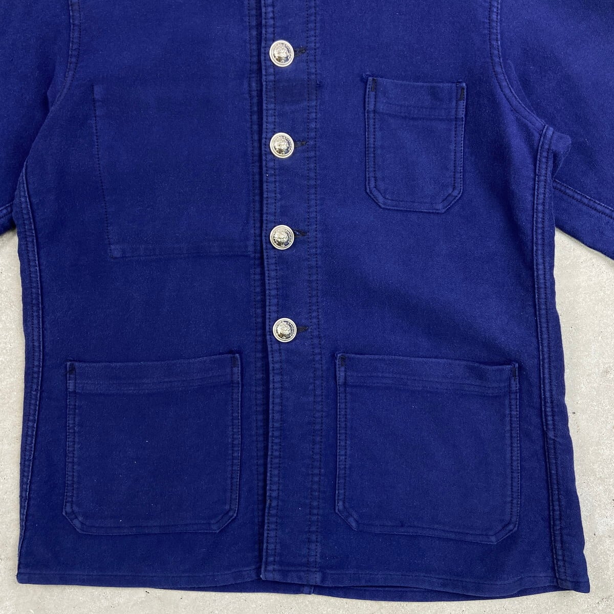 ■50年代 ブルーモールスキン ファイヤーマンジャケット フレンチワークジャケット メンズS相当 古着 50s VINTAGE ヴィンテージ ユーロワーク 紺色【ユーロワークジャケット】/ネイビー