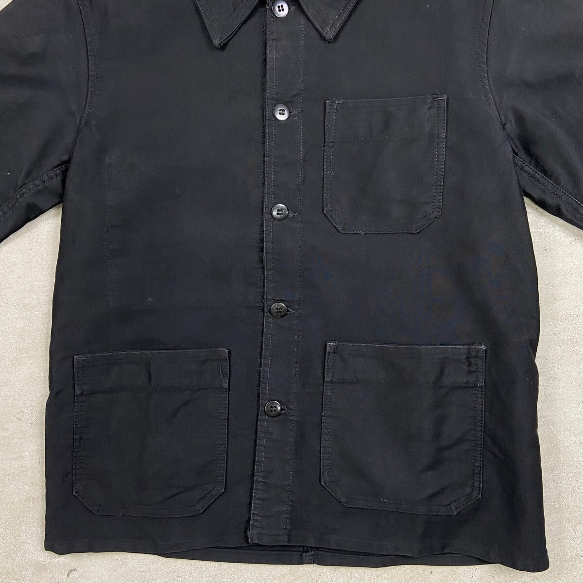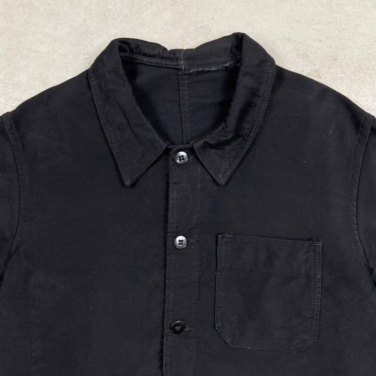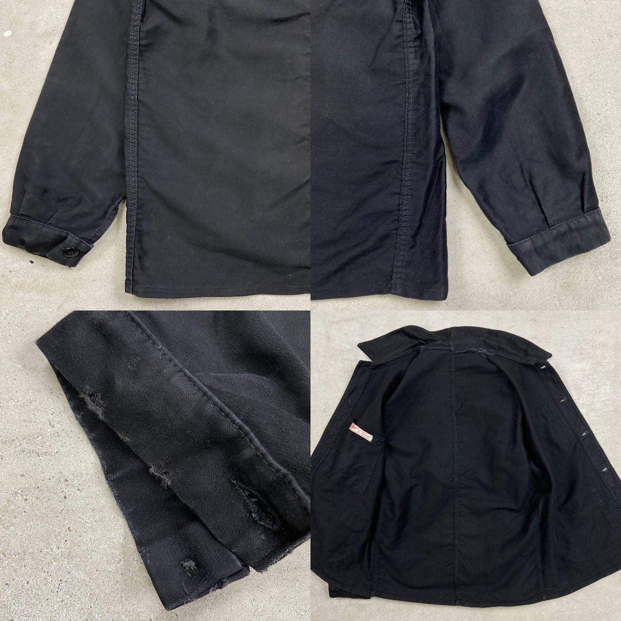 ■50年代~ L’Ideal ブラックモールスキン フレンチワークジャケット メンズM相当 古着 50s VINTAGE ヴィンテージ ユーロワーク 黒色【ワークジャケット】/ブラック