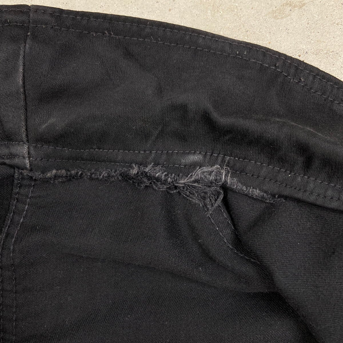 袖口に若干のダメージ、襟裏に糸のほつれにより