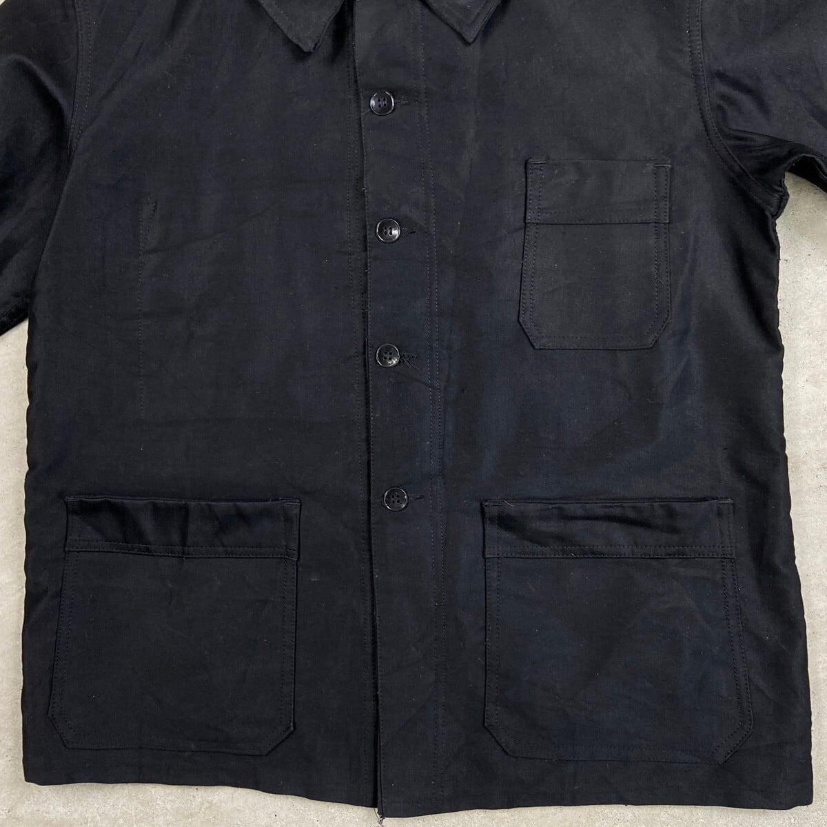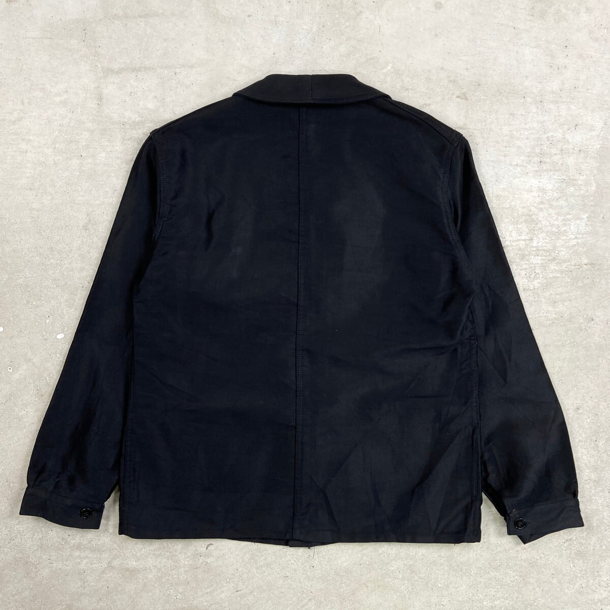 50年代 LE VETEMENT DE FORCE ブラックモールスキン フレンチワークジャケット メンズM相当 古着 50s VINTAGE ヴィンテージ ユーロワーク 黒色【ワークジャケット】/ブラック