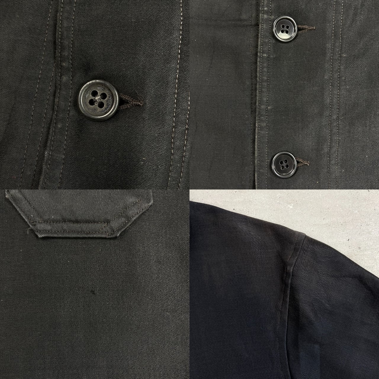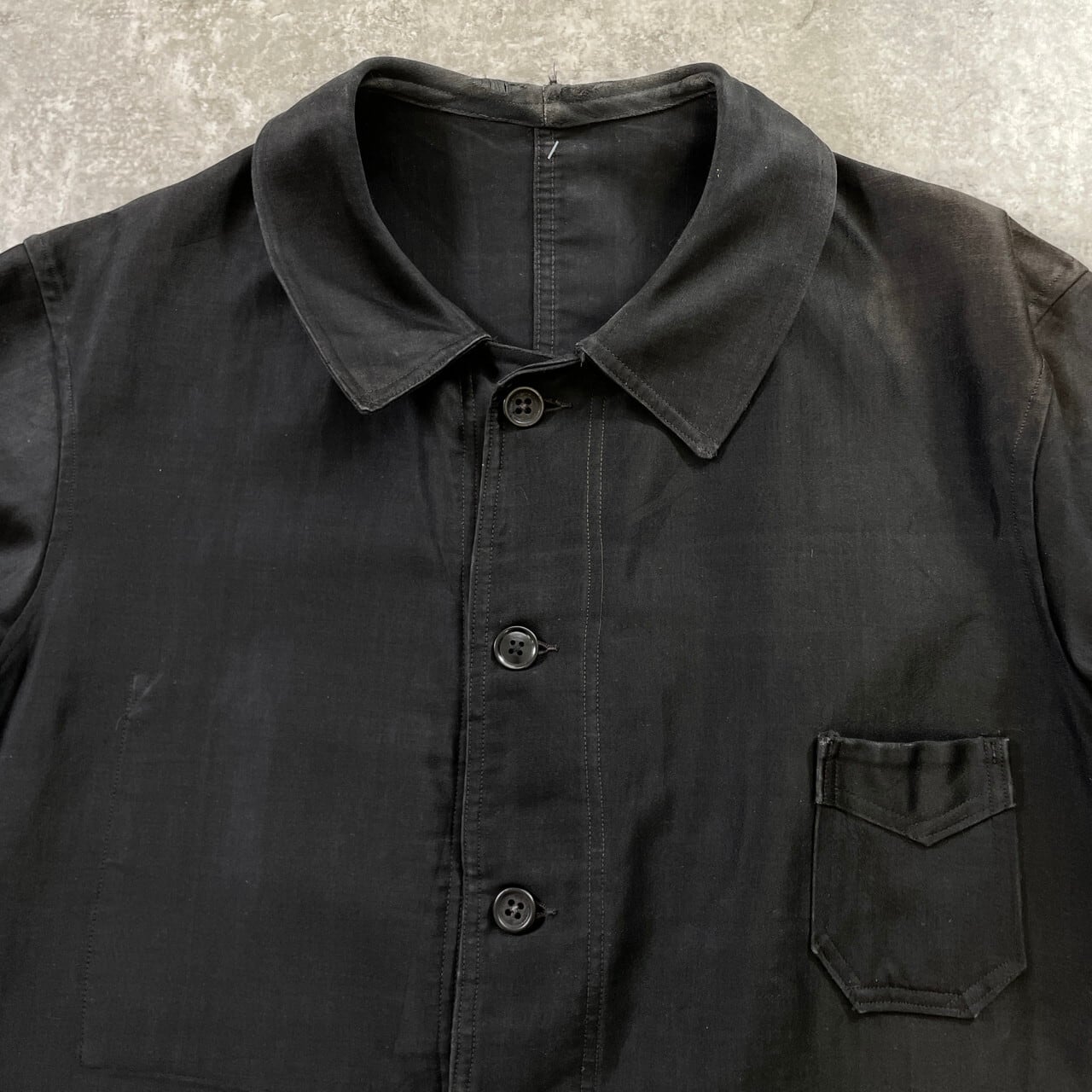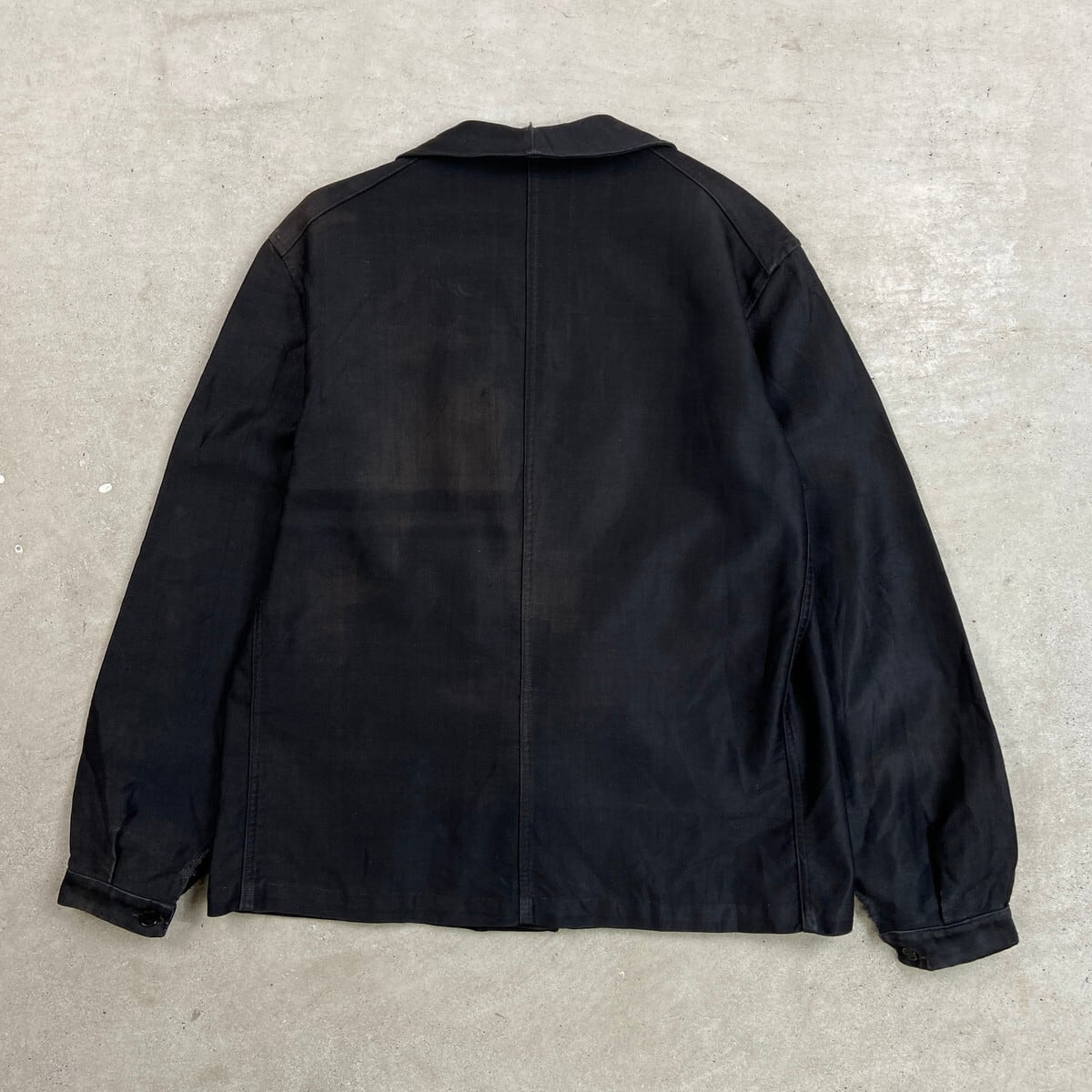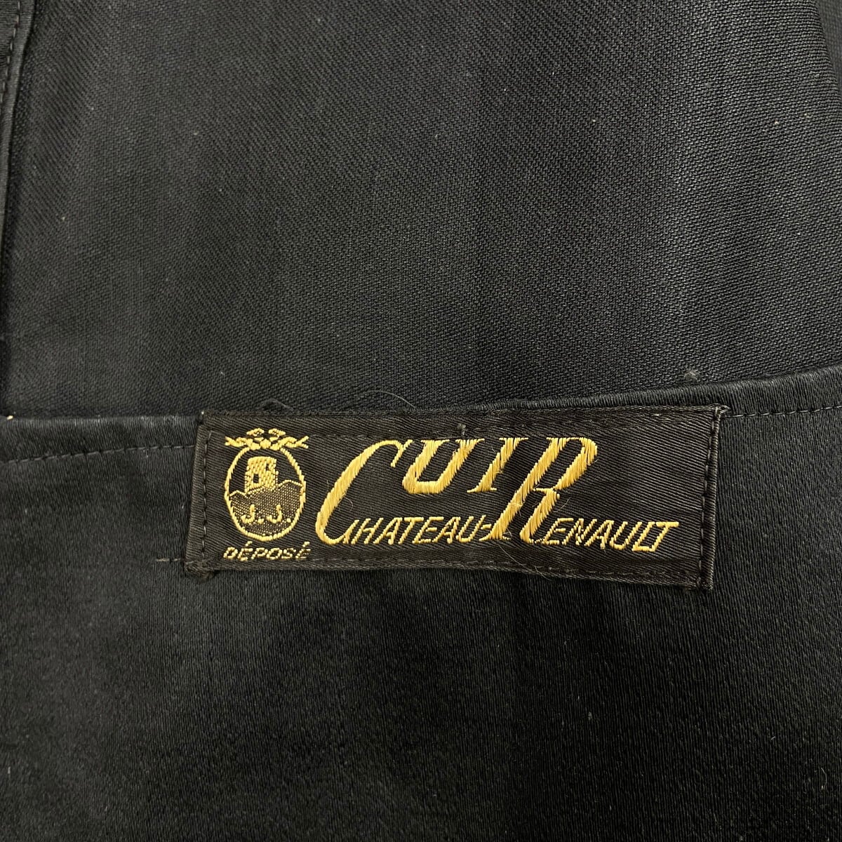 40年代 CHATEAU-RENAULT ブラックモールスキン フレンチワークジャケット V字ポケット メンズL相当 古着 40s VINTAGE ヴィンテージ 刺繍タグ ユーロワーク 黒色【ワークジャケット】/ブラック