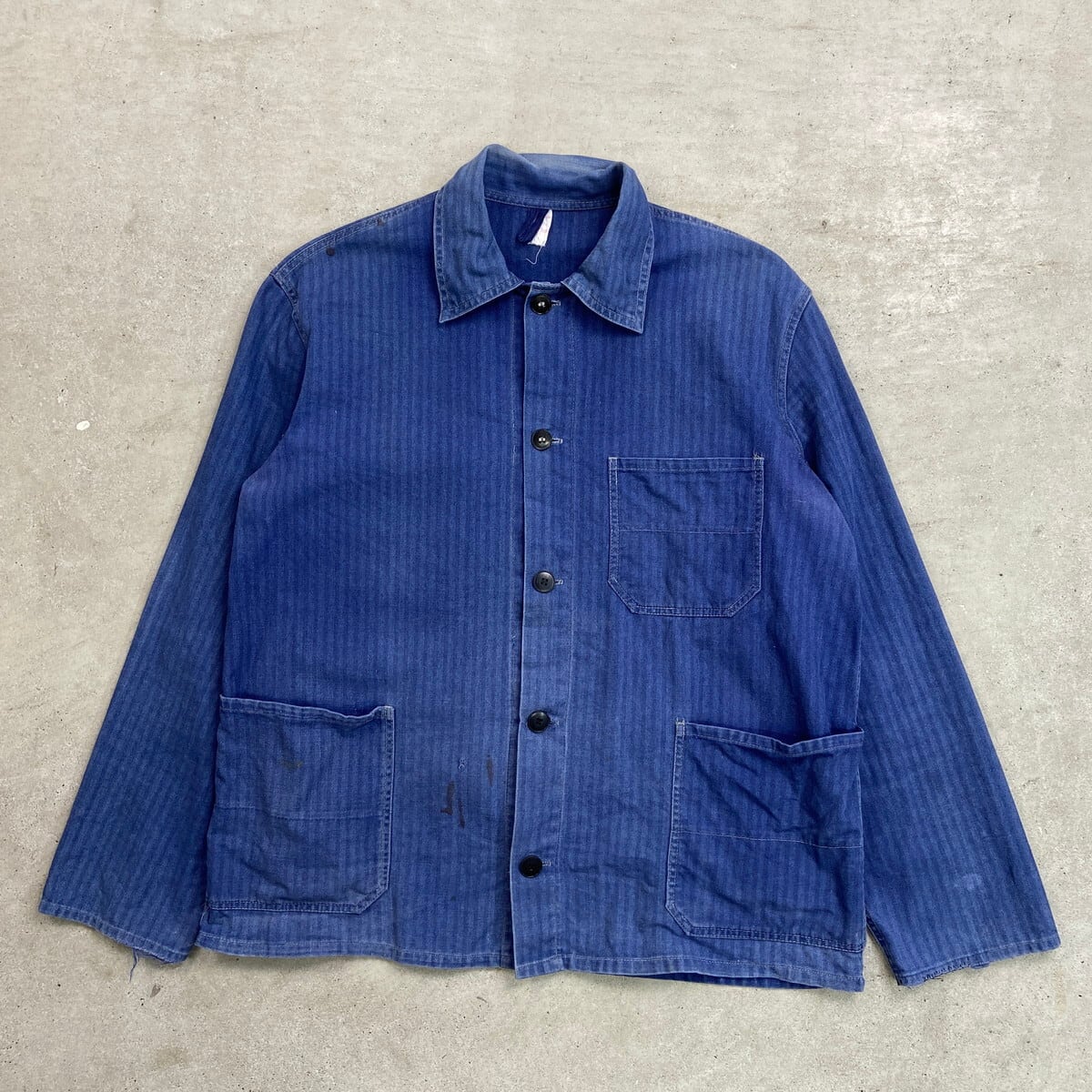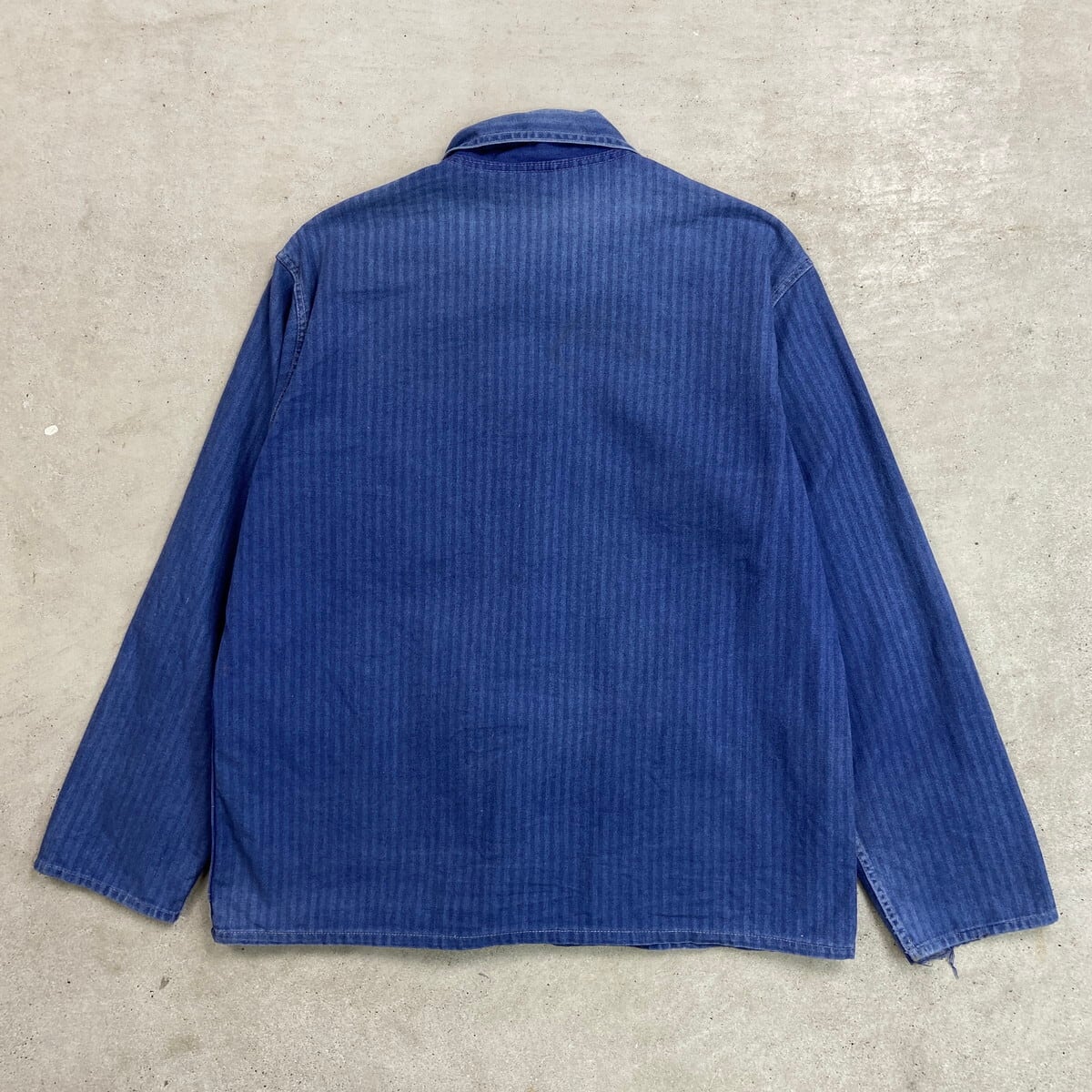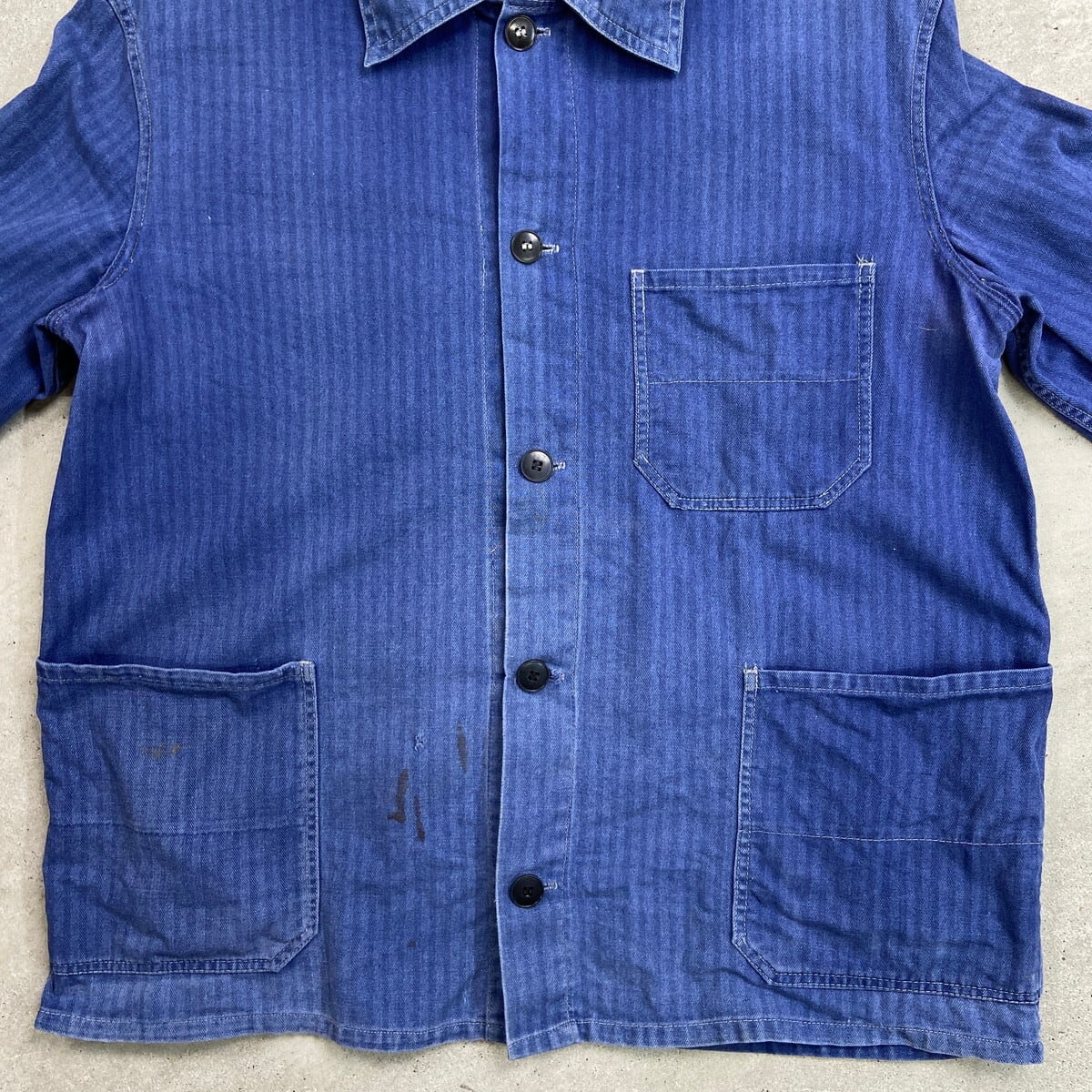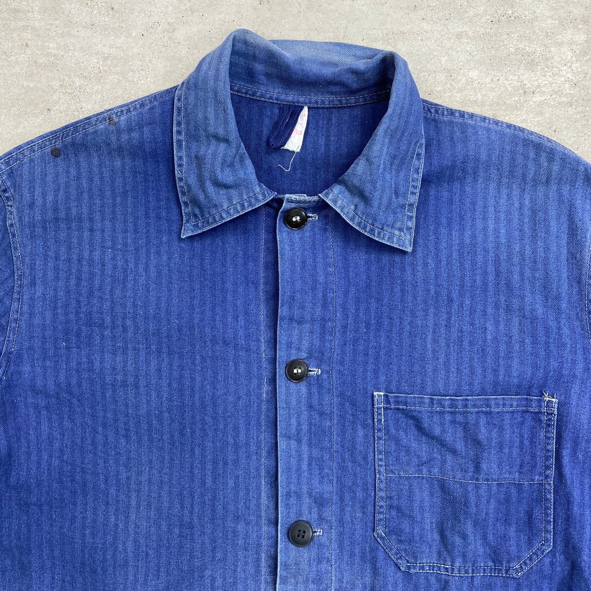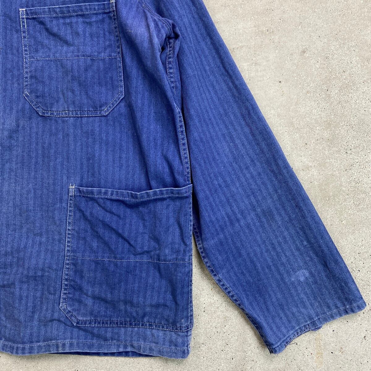 60年代~ ドイツ製 HBT ヘリンボーンツイル ジャーマンワークジャケット メンズL相当 古着 60s VINTAGE ヴィンテージ カバーオール ユーロミリタリー ユーロワーク インクブルー 紺色【ワークジャケット】/ネイビー