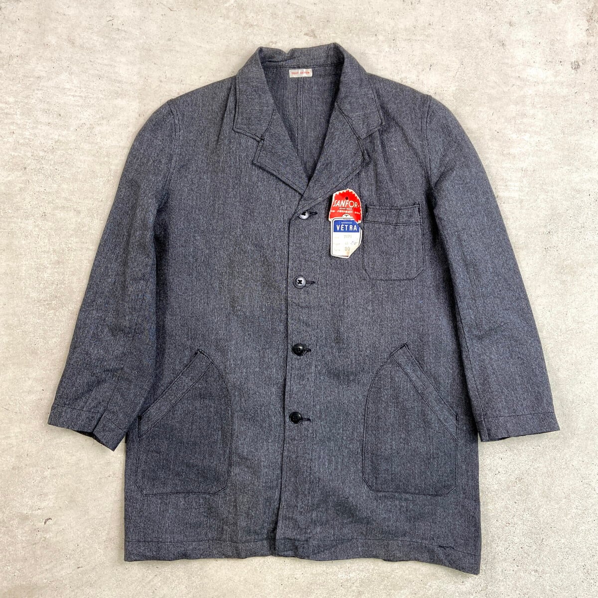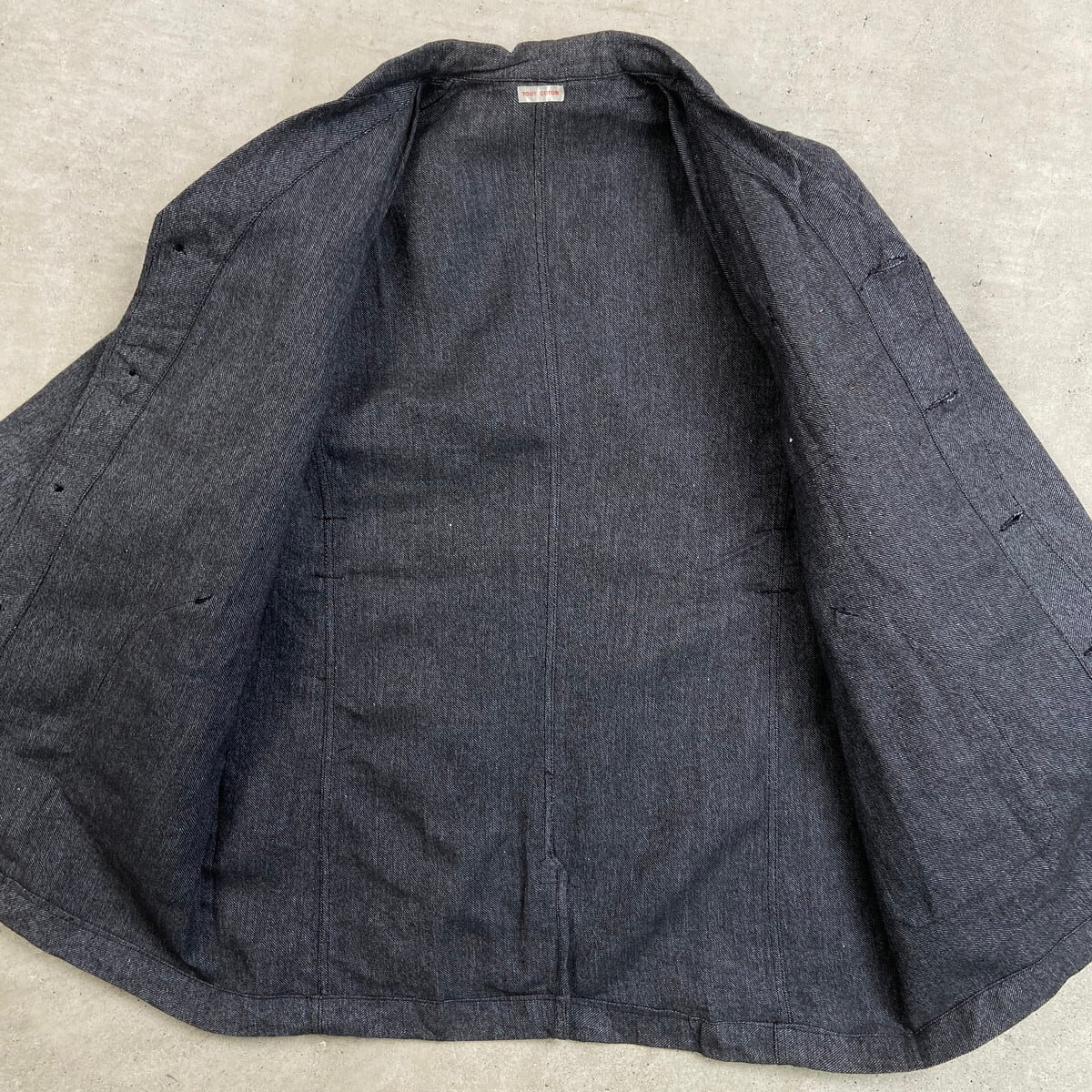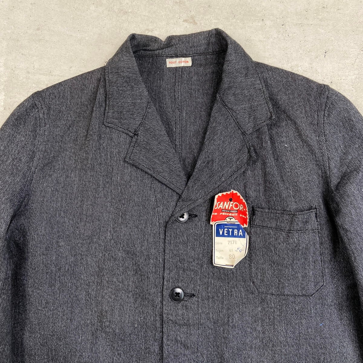 DEAD STOCK NOS 50年代 VĒTRA ブラックシャンブレー 黒シャン フレンチワークジャケット フラッシャー付き メンズXS相当 レディースS相当 古着 50s VINTAGE ヴィンテージ デッドストック シンチバック 黒色【ユーロワークジャケット】/ブラック